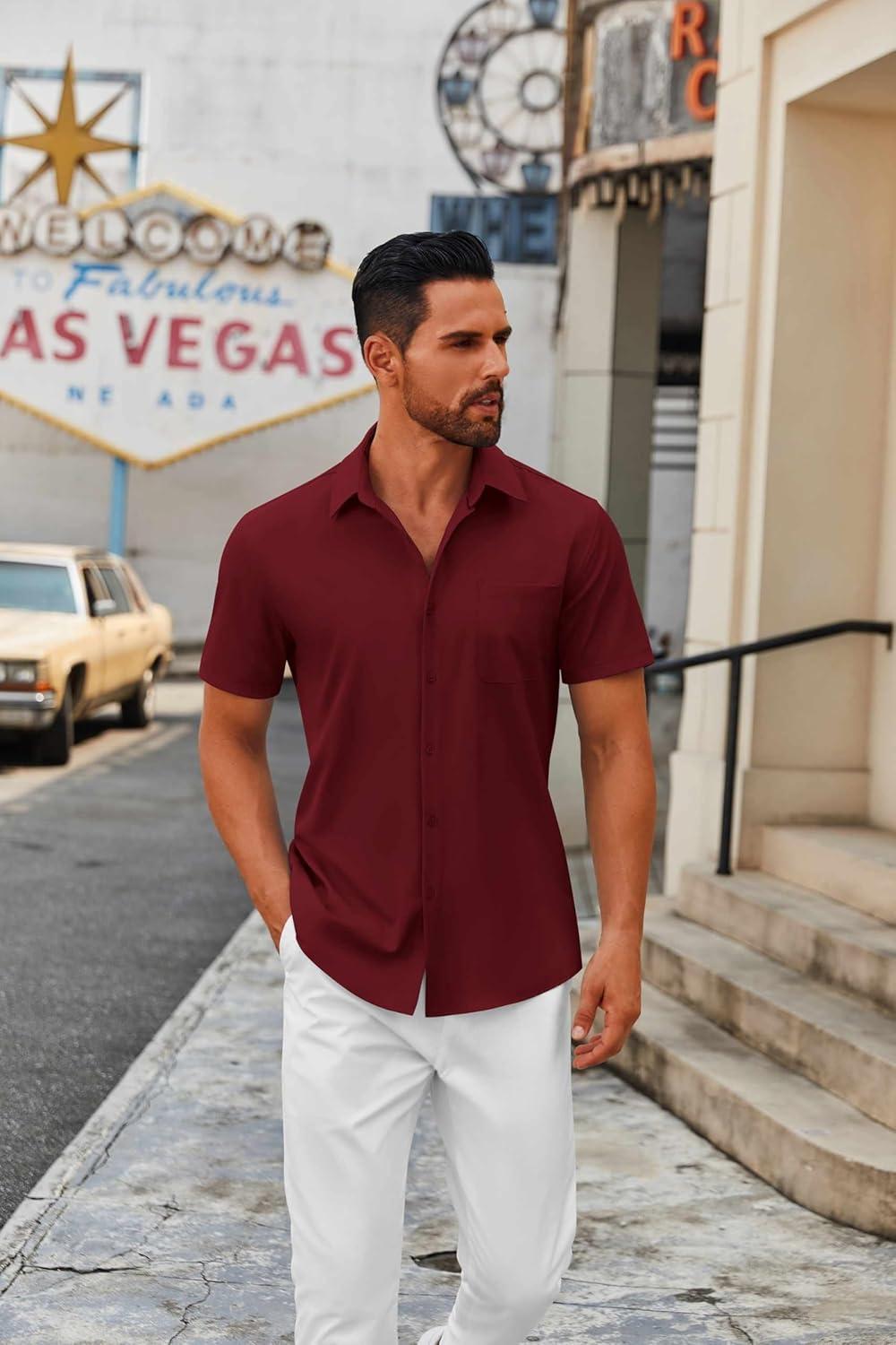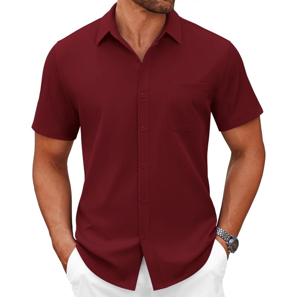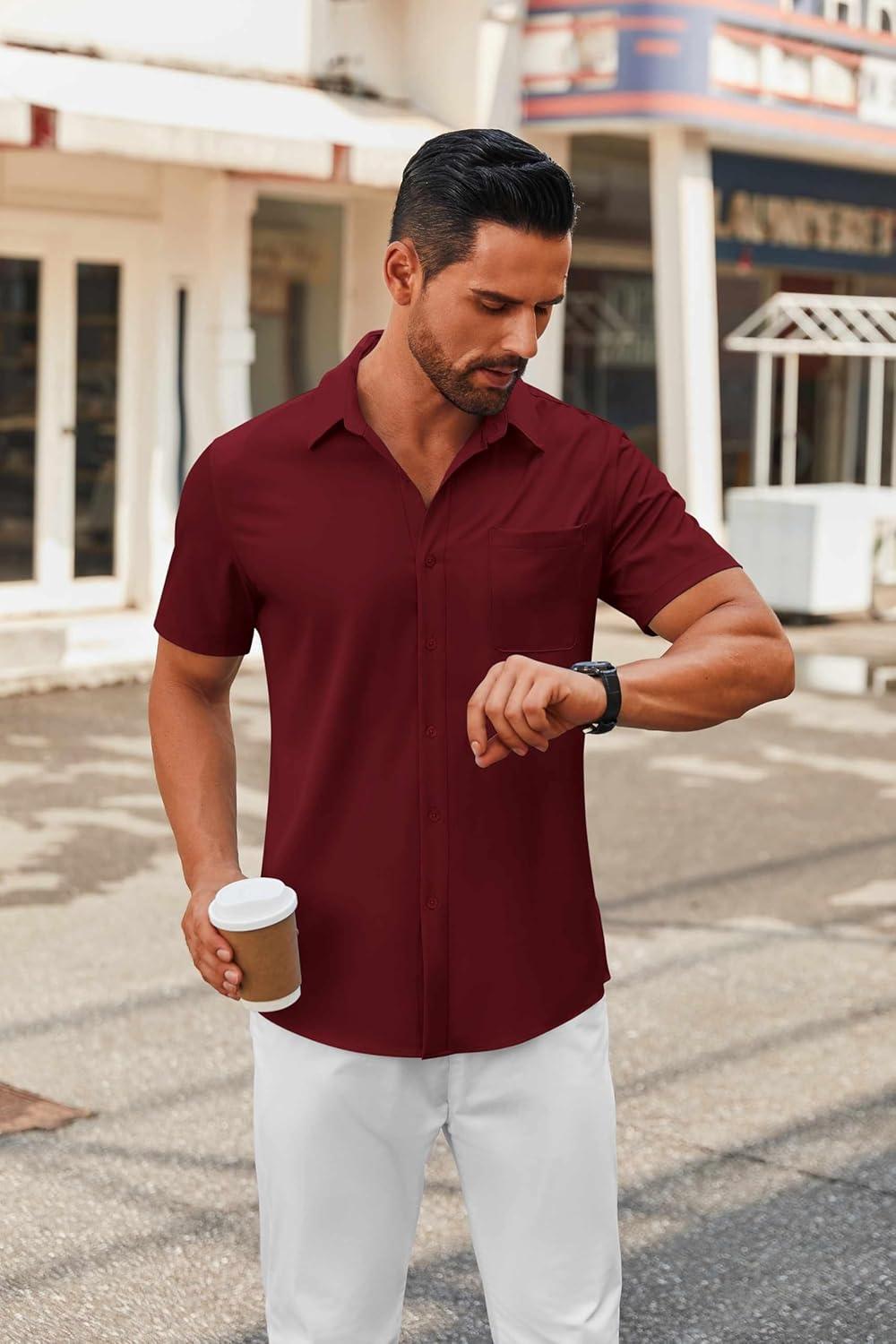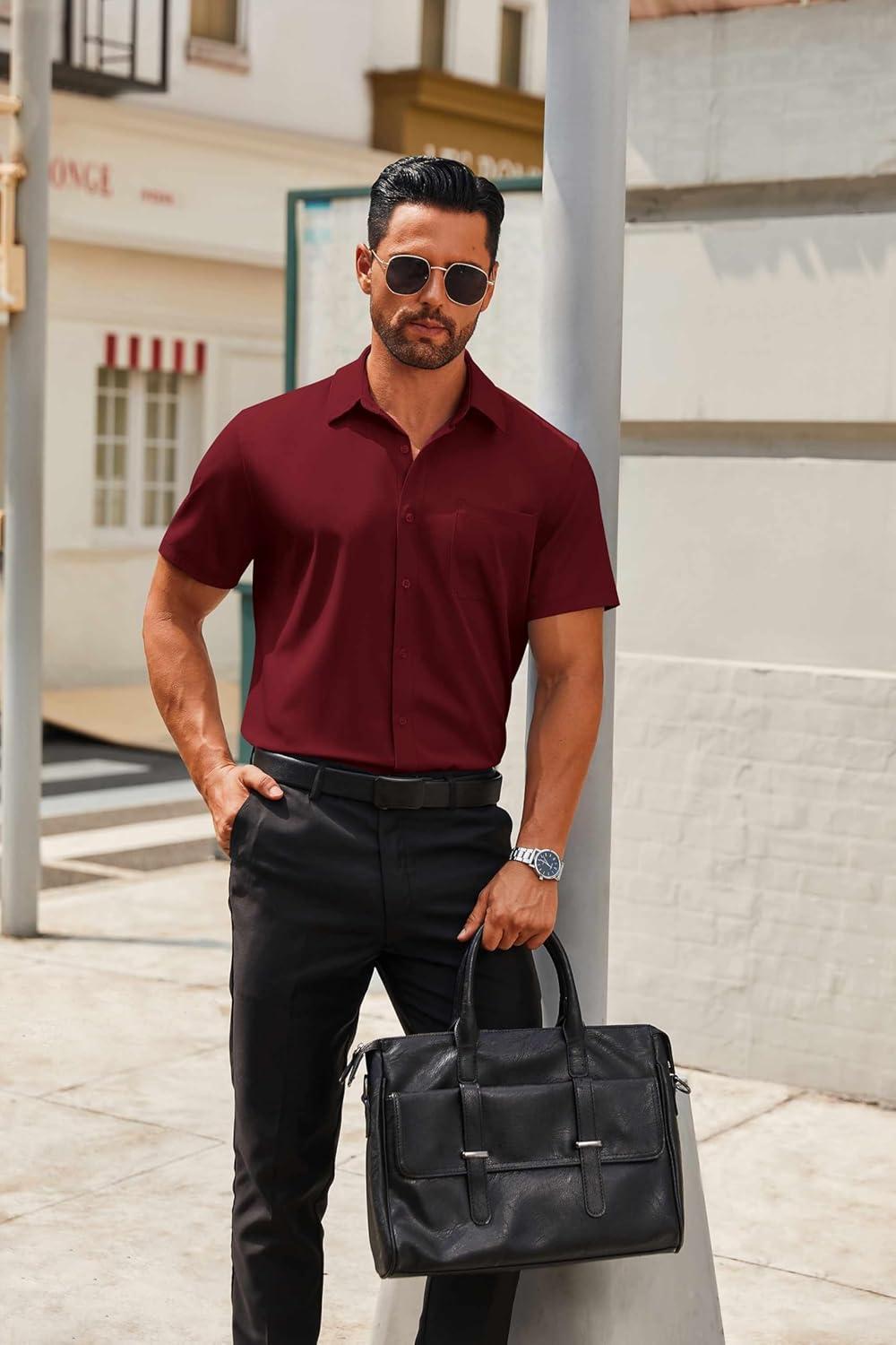 Get more for your money with our exclusive bundle deals on COOFANDY Mens Short Sleeve Button Down Shirts Casual Dress Shirts for Men Summer Untucked Shirts with Pocket(Wine Red) and accessories.