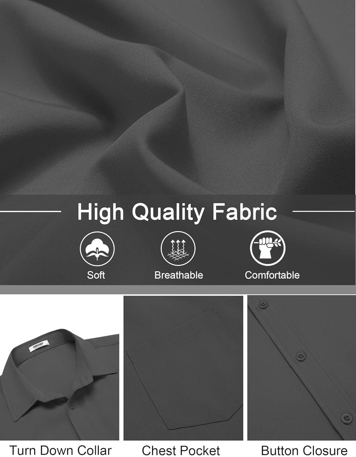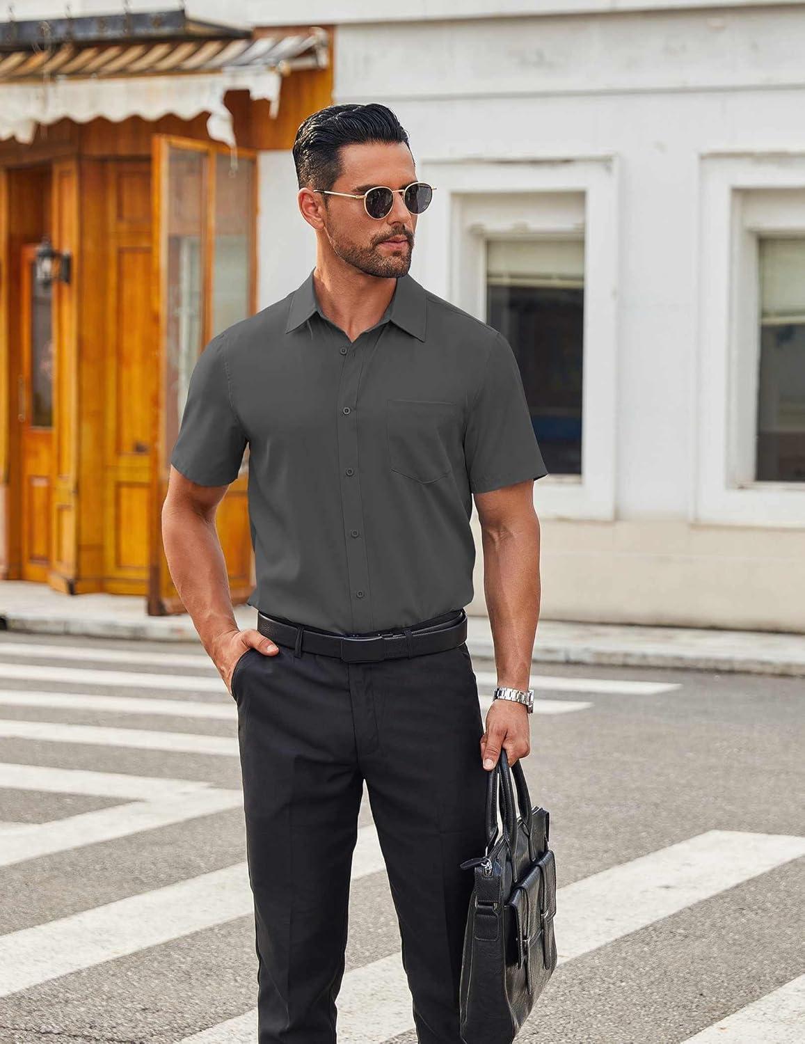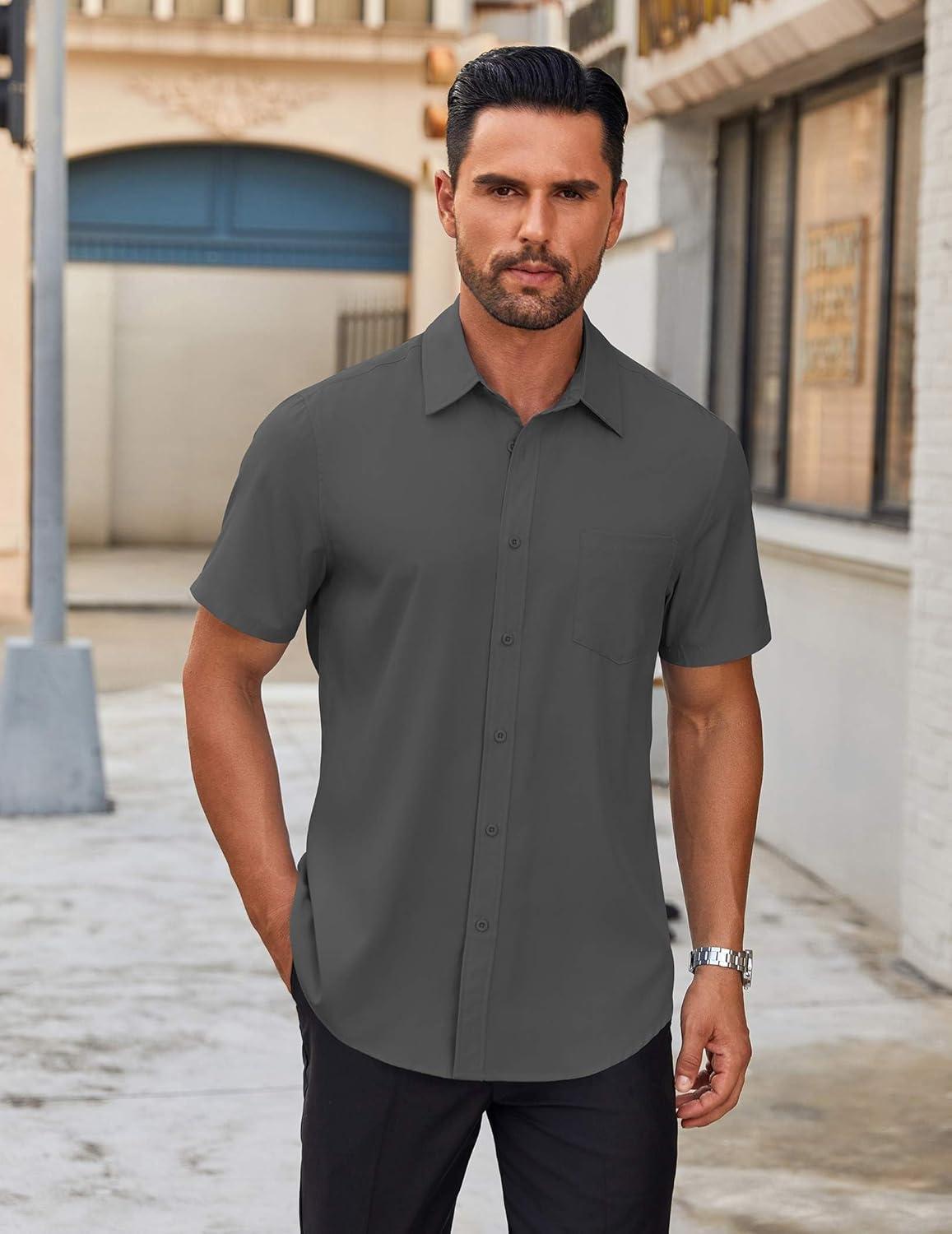 COOFANDY Men’s Short Sleeve Button Down Shirts Casual Dress Shirts for Men Untucked Shirt with Pocket(Dark Grey)