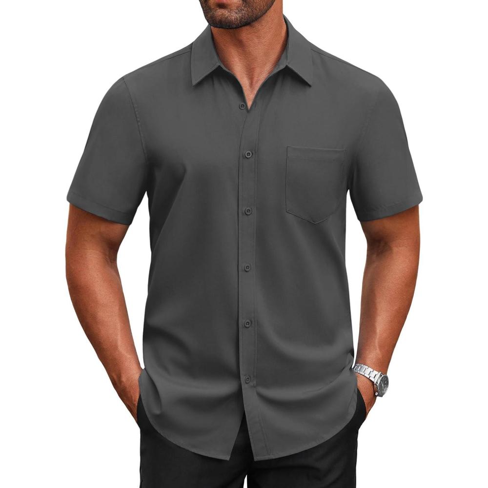 COOFANDY Men's Short Sleeve Button Down Shirts Casual Dress Shirts for Men Untucked Shirt with Pocket(Dark Grey)