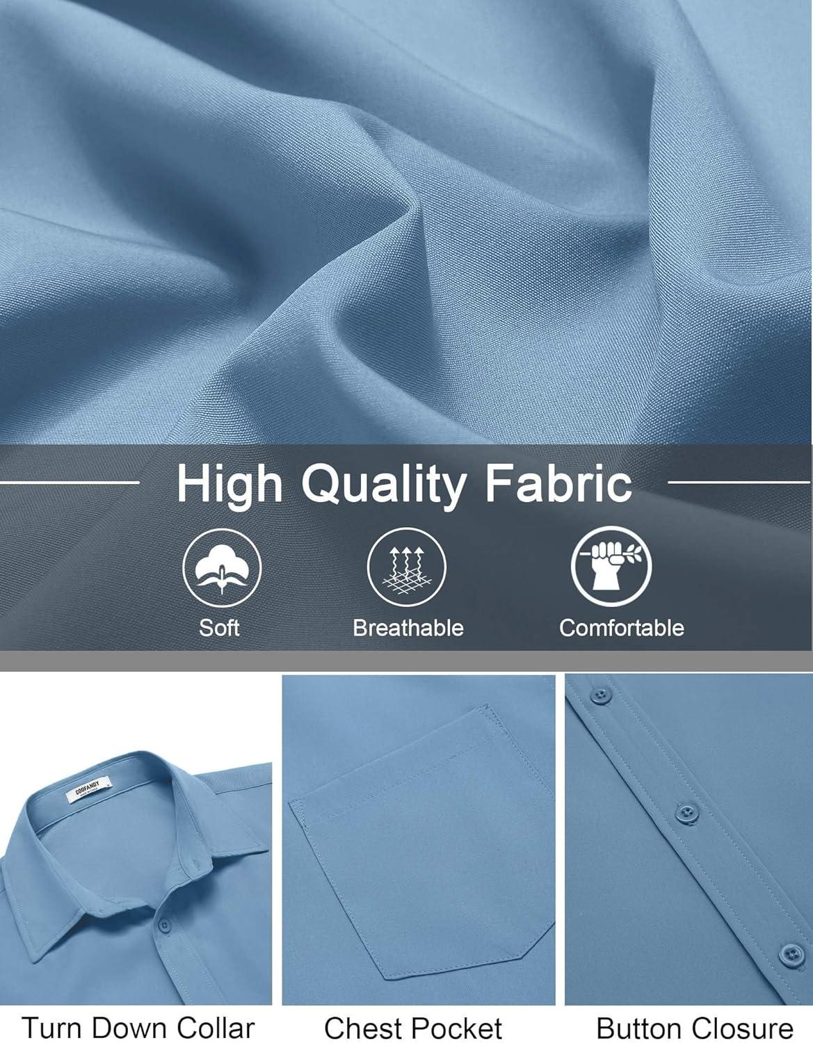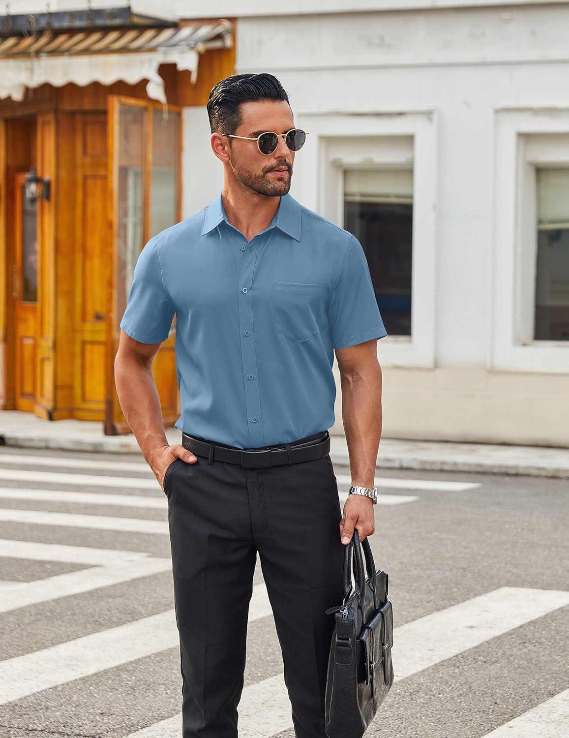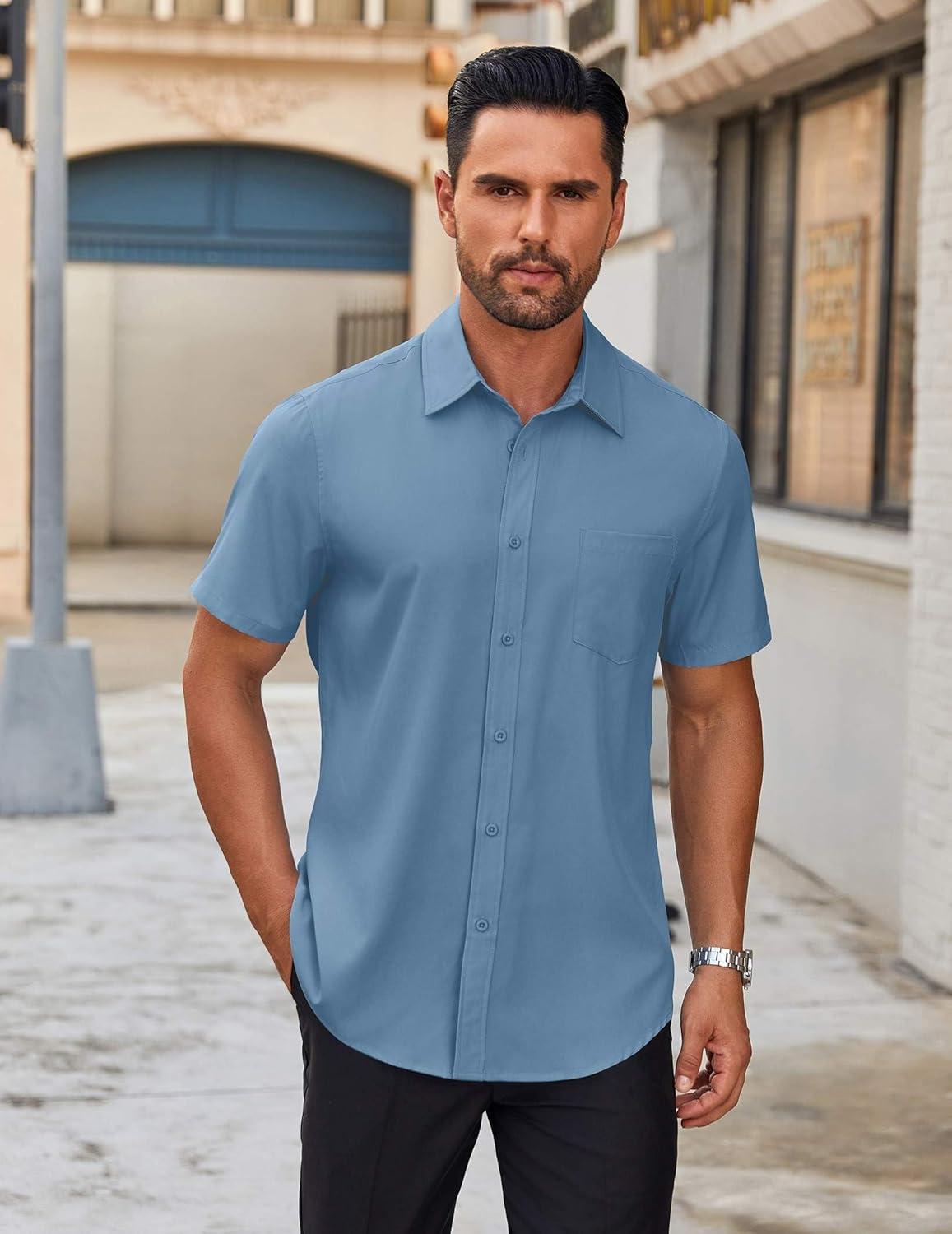 COOFANDY Men’s Short Sleeve Button Down Shirts Casual Dress Shirts for Men Untucked Shirt with Pocket(Grey Blue)