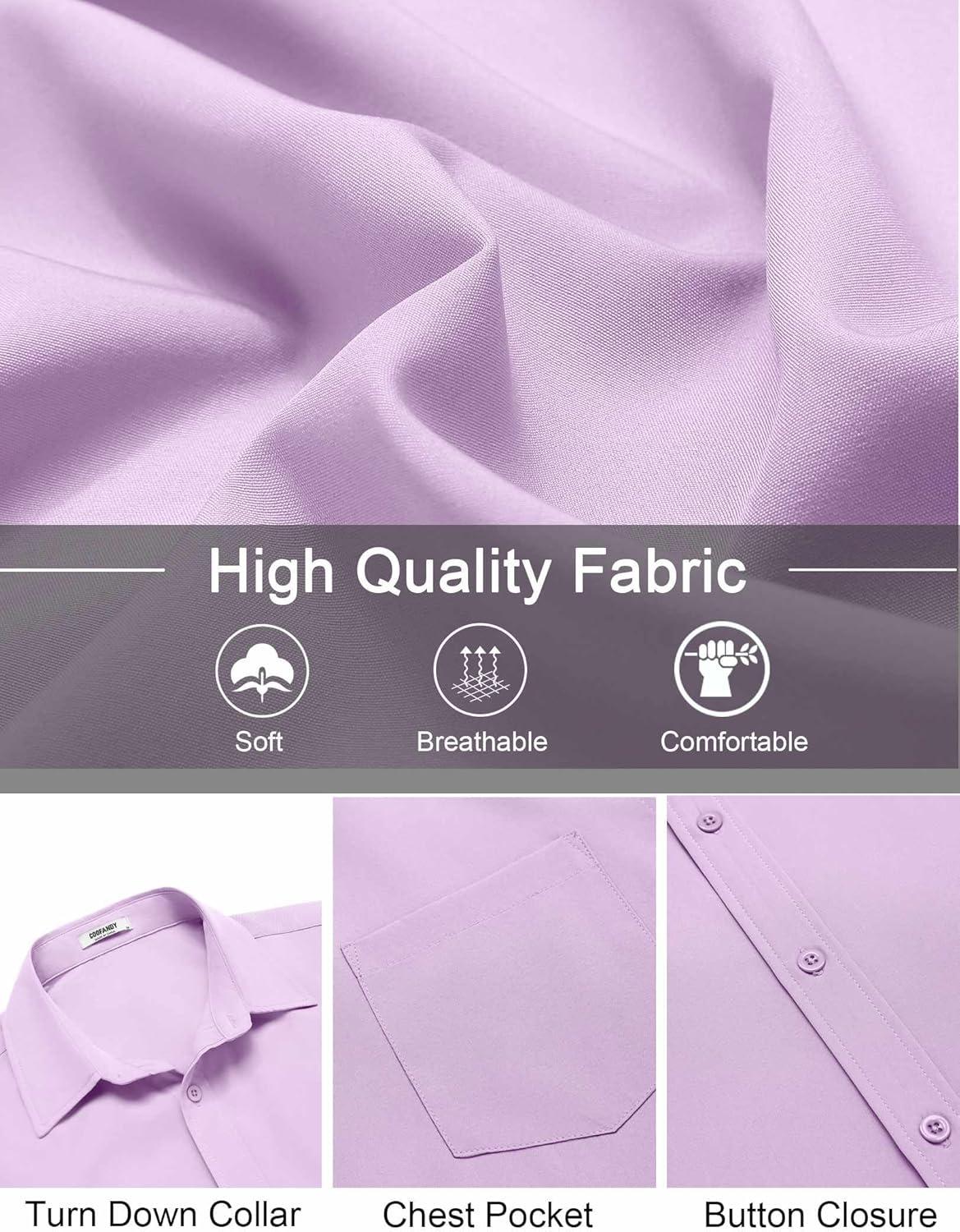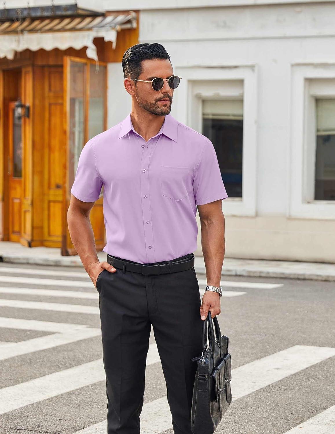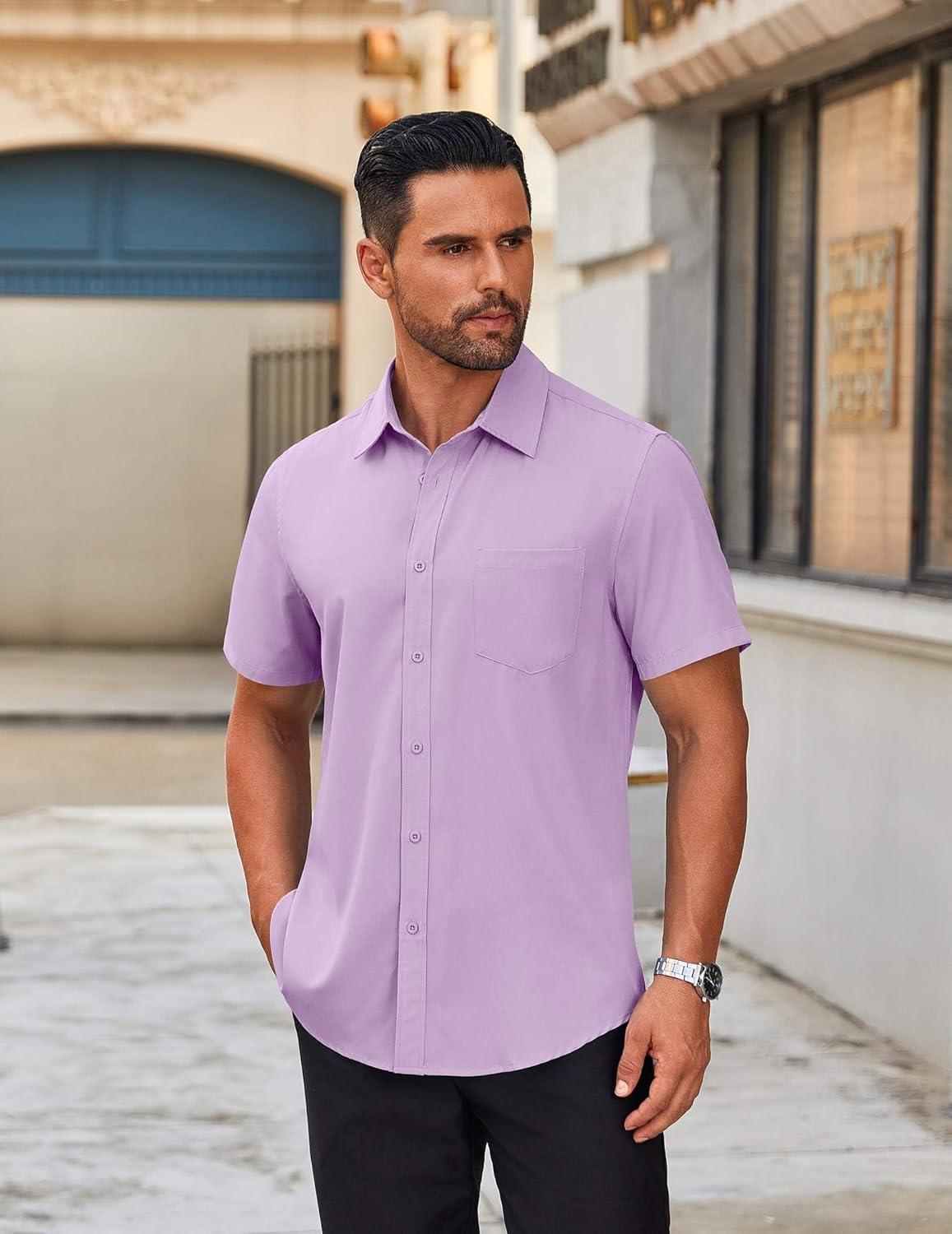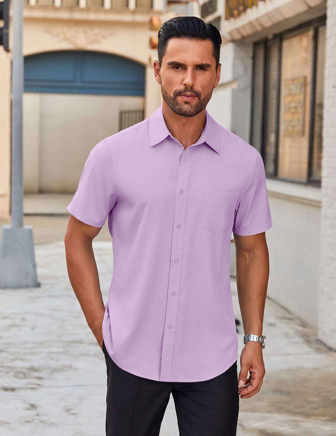 COOFANDY Men’s Short Sleeve Button Down Shirts Casual Dress Shirts for Men Untucked Shirt with Pocket(Lavender)