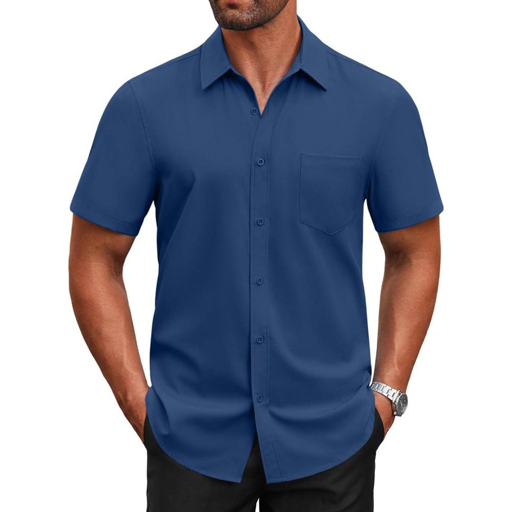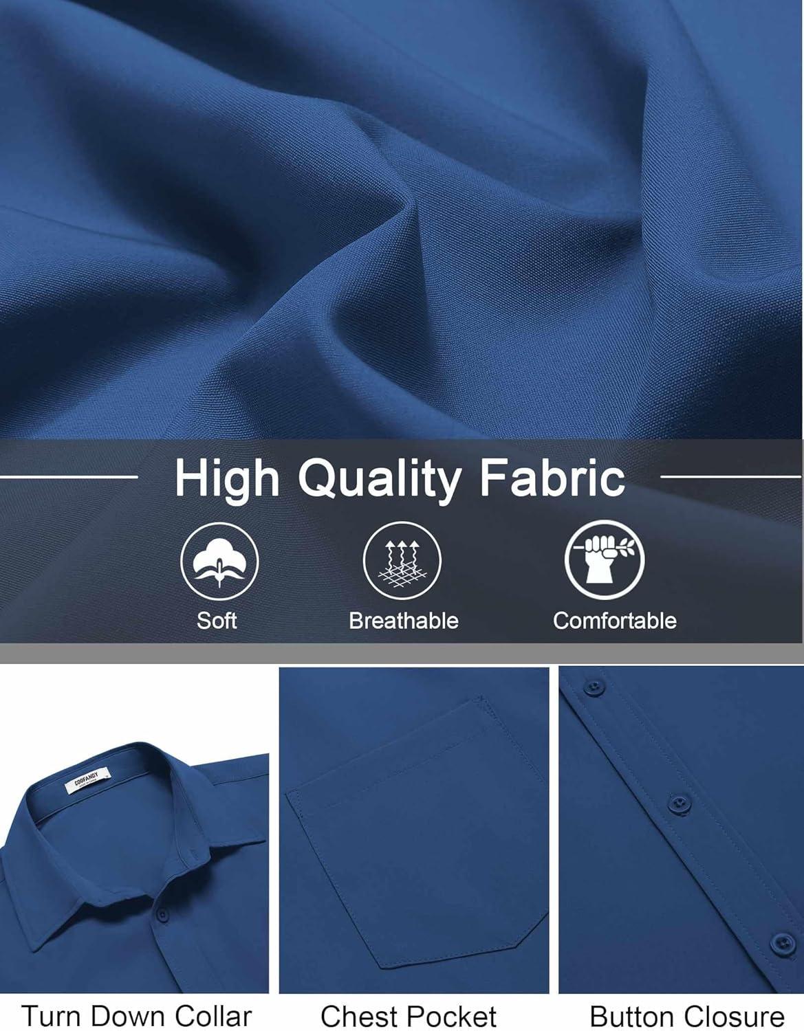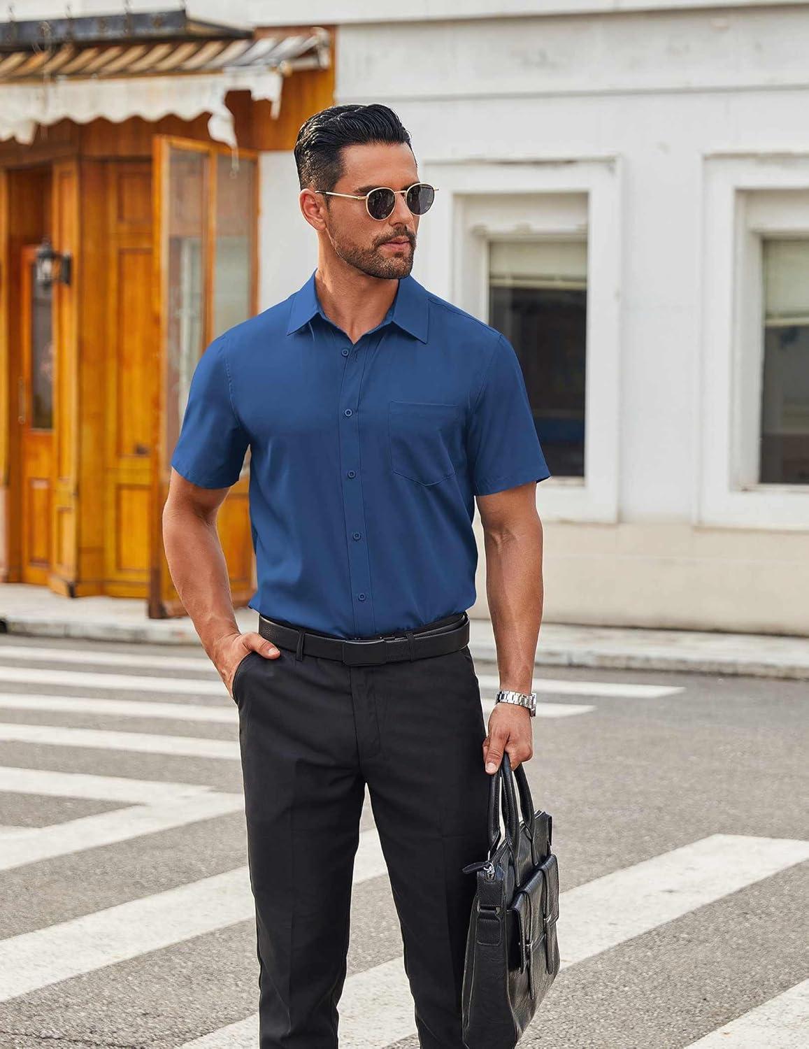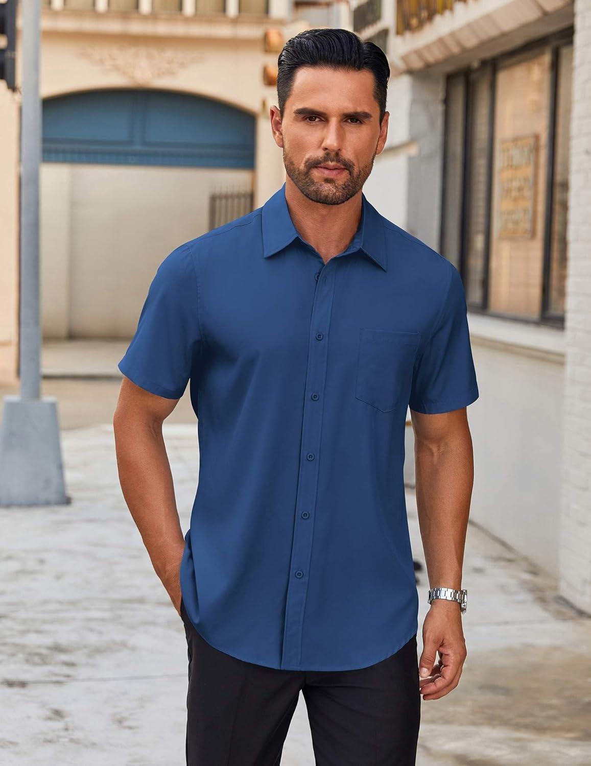 COOFANDY Men’s Short Sleeve Button Down Shirts Casual Dress Shirts for Men Untucked Shirt with Pocket(Navy)