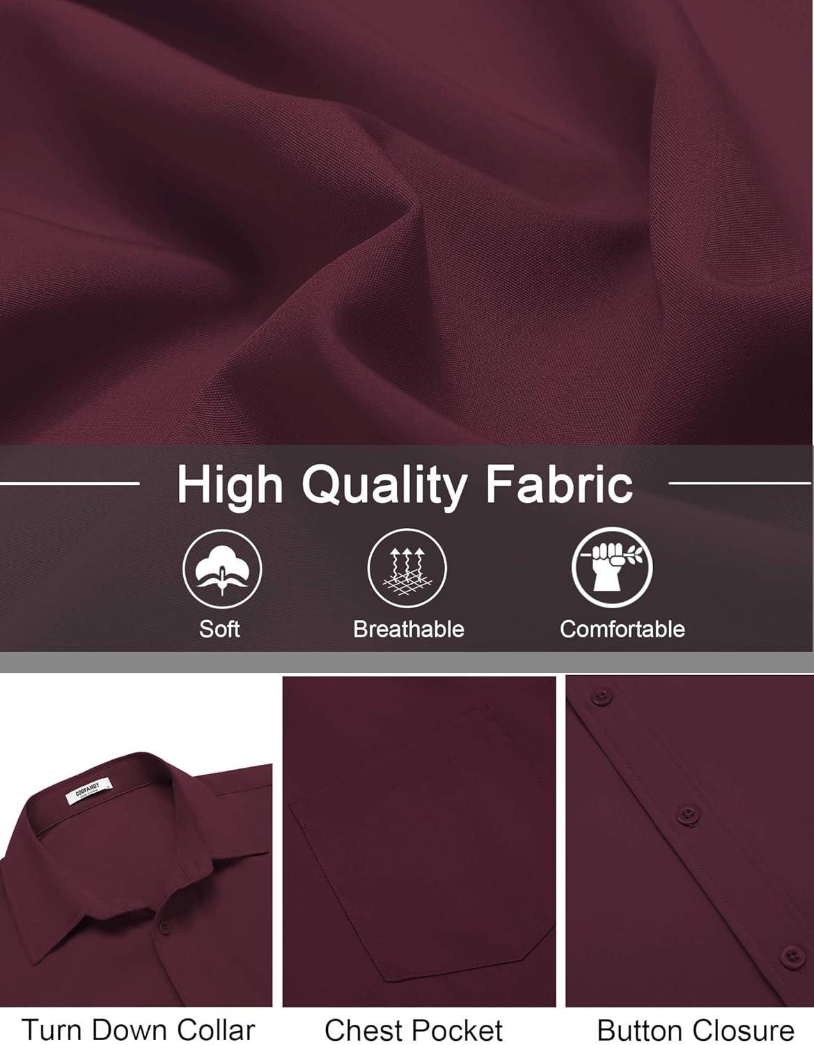 COOFANDY Men’s Short Sleeve Button Down Shirts Casual Dress Shirts for Men Untucked Shirt with Pocket(Wine Red)