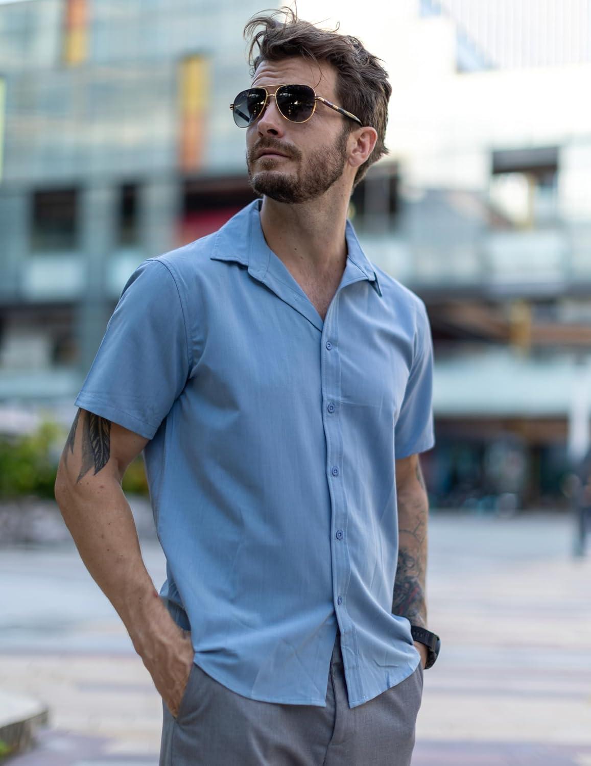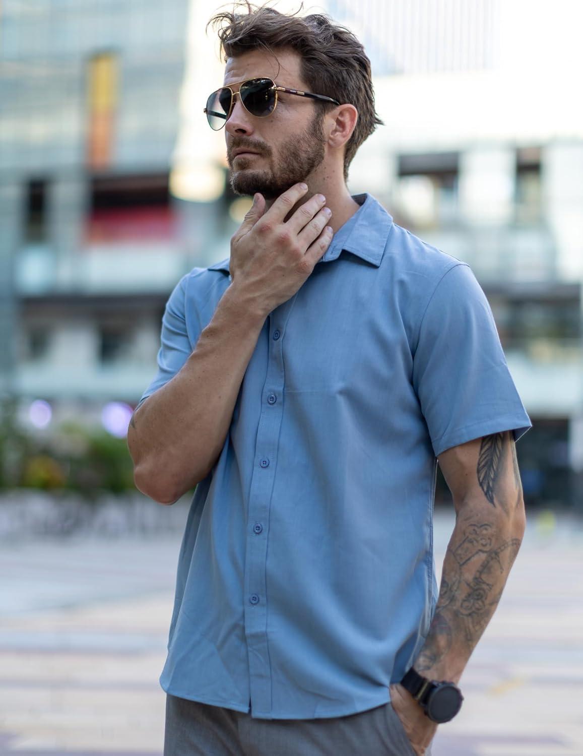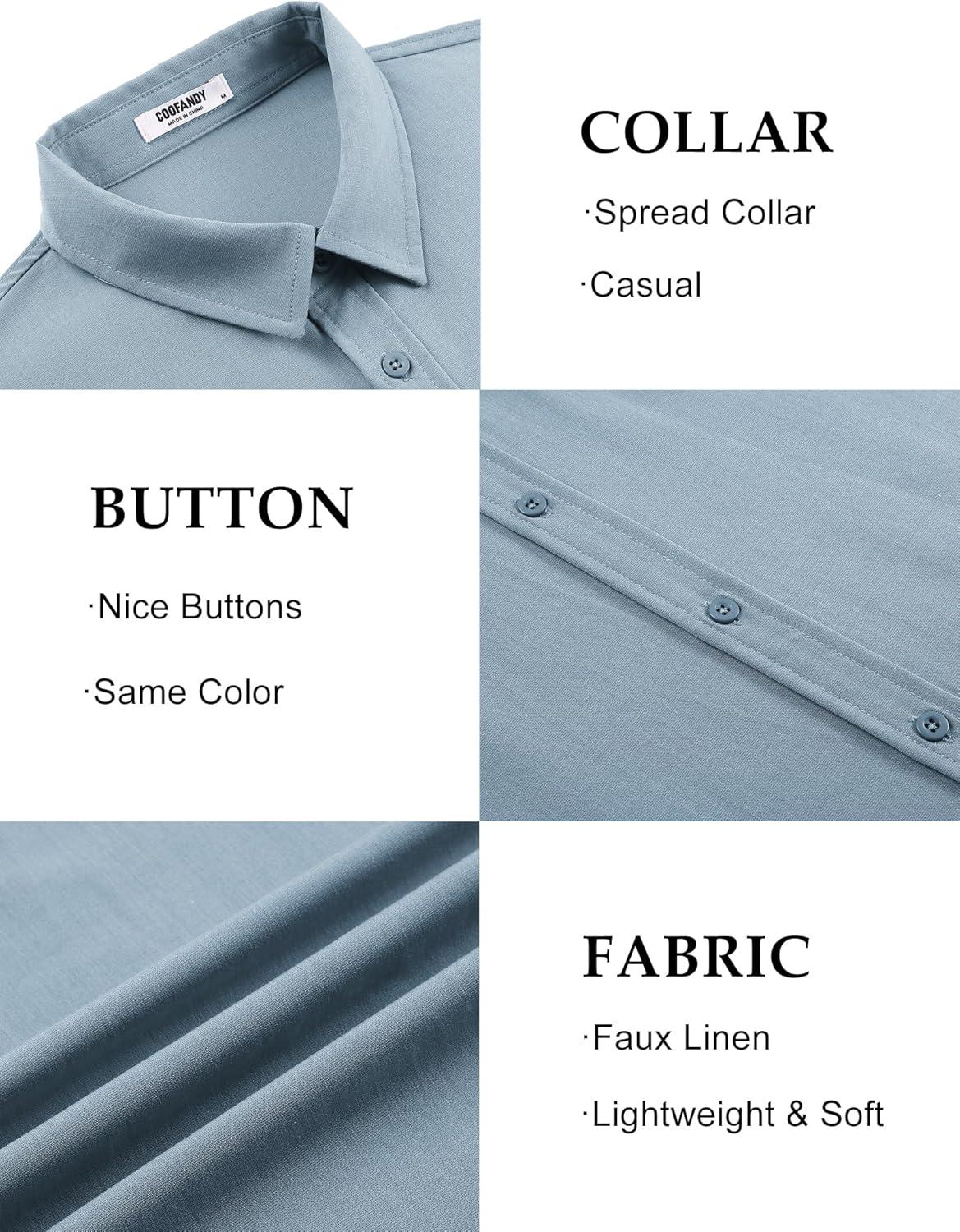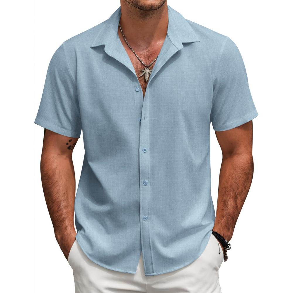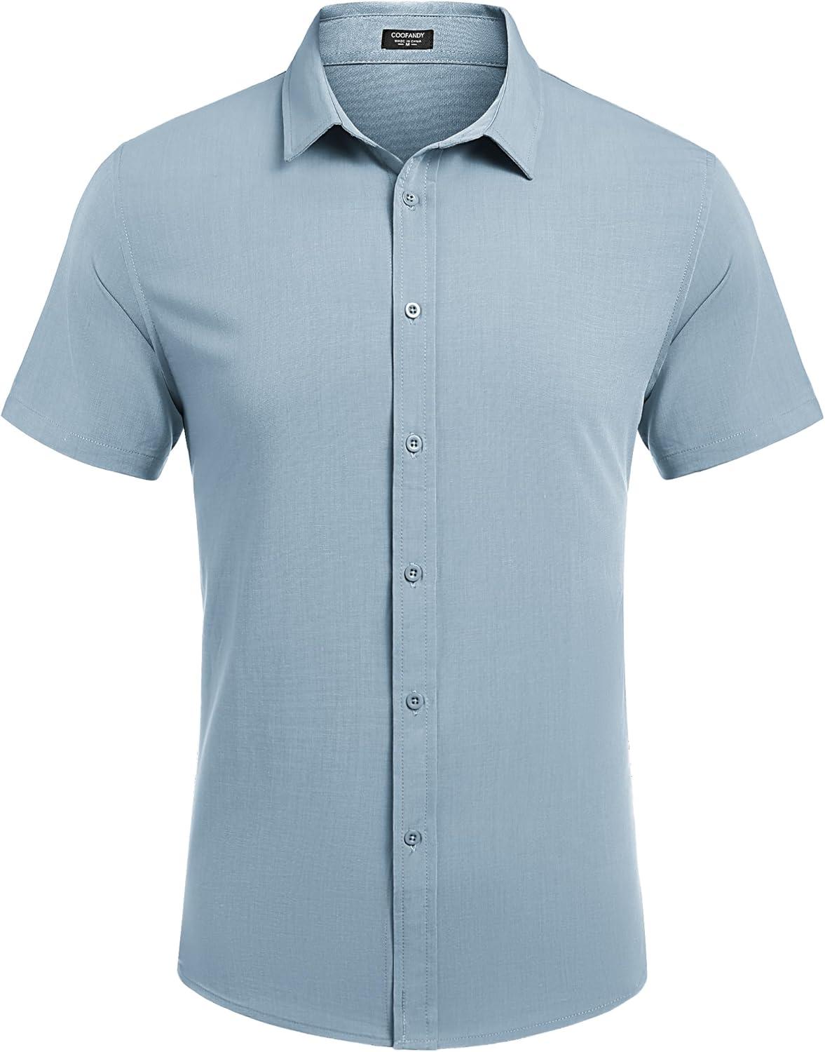COOFANDY Mens Short Sleeve Button Down Shirts Casual Linen Summer Beach Shirt Wrinkle Free(Blue)