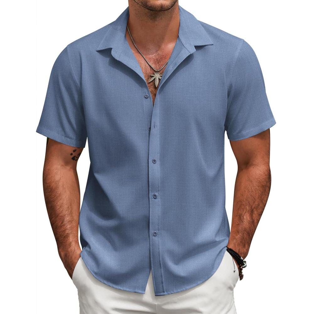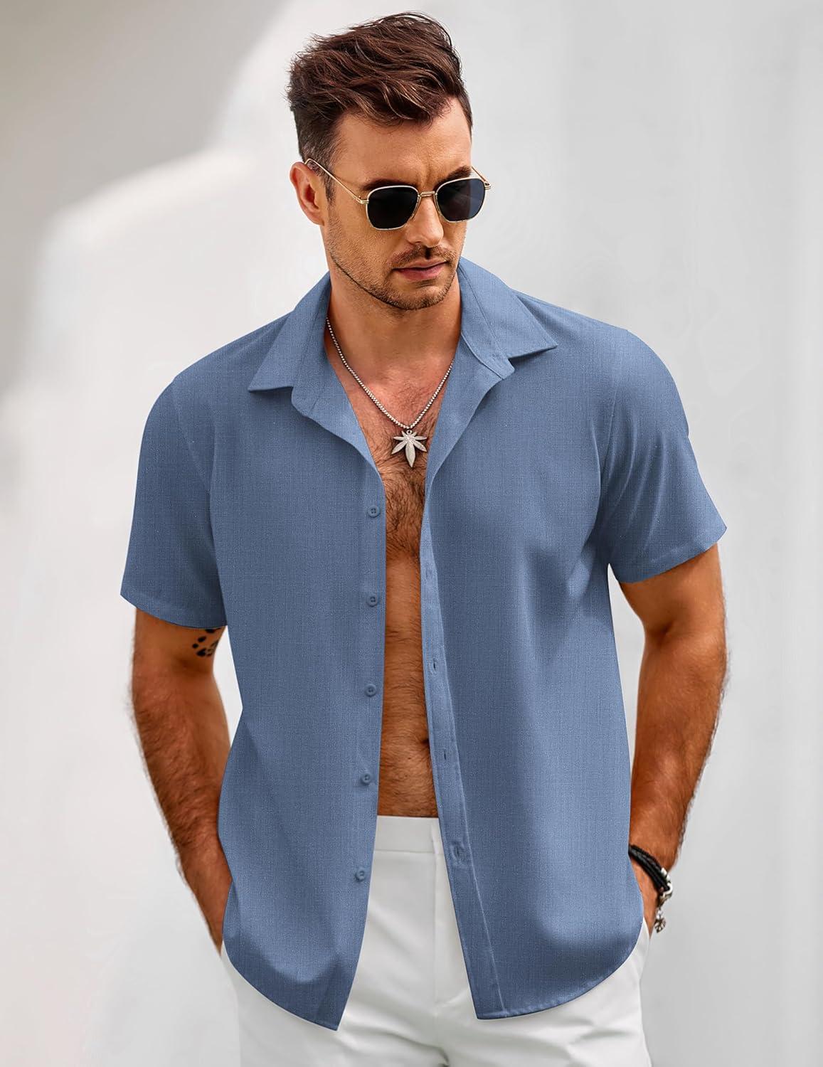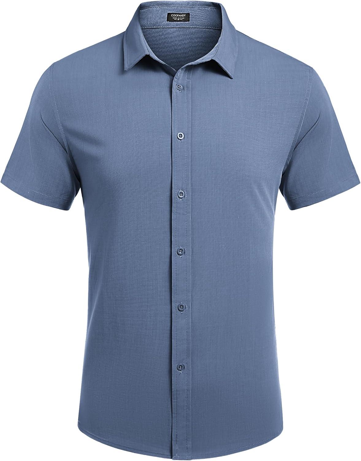 COOFANDY Mens Short Sleeve Button Down Shirts Casual Linen Summer Beach Shirt Wrinkle Free(Dark Blue)