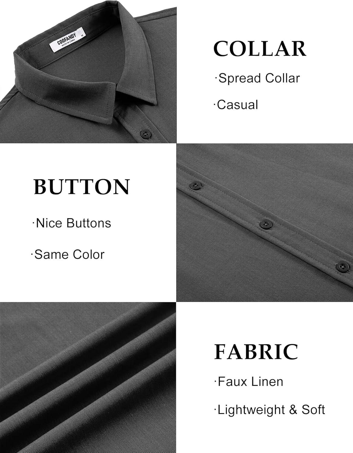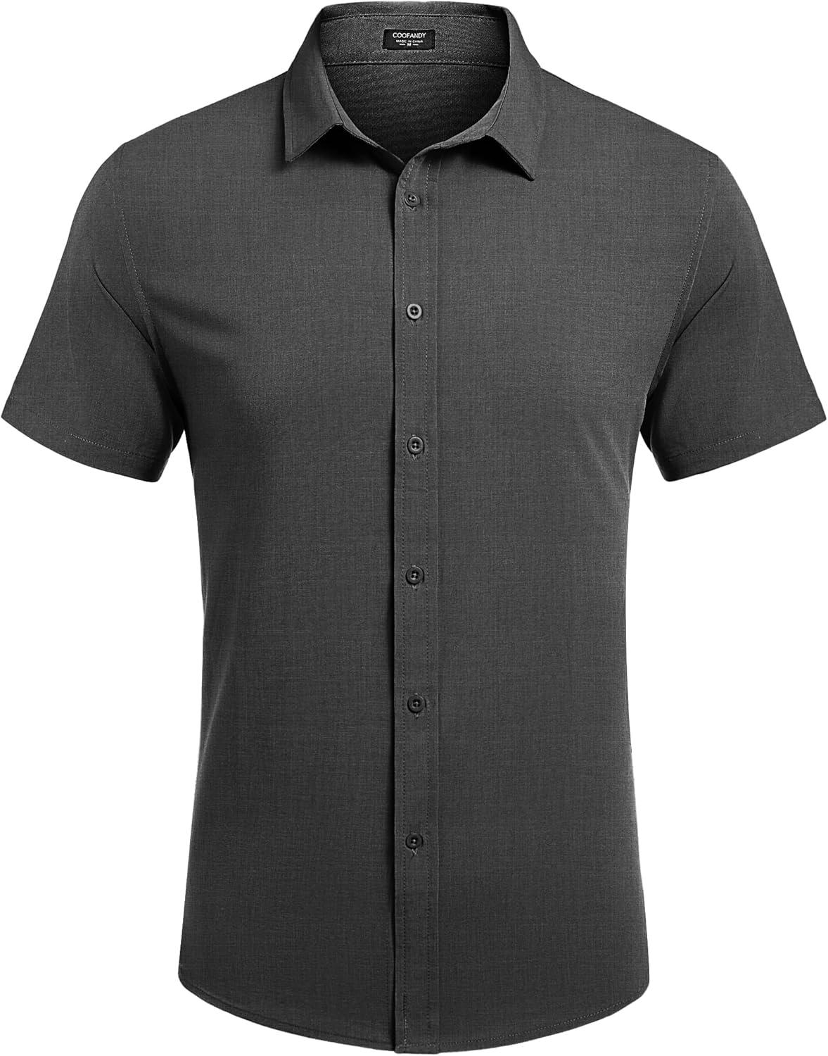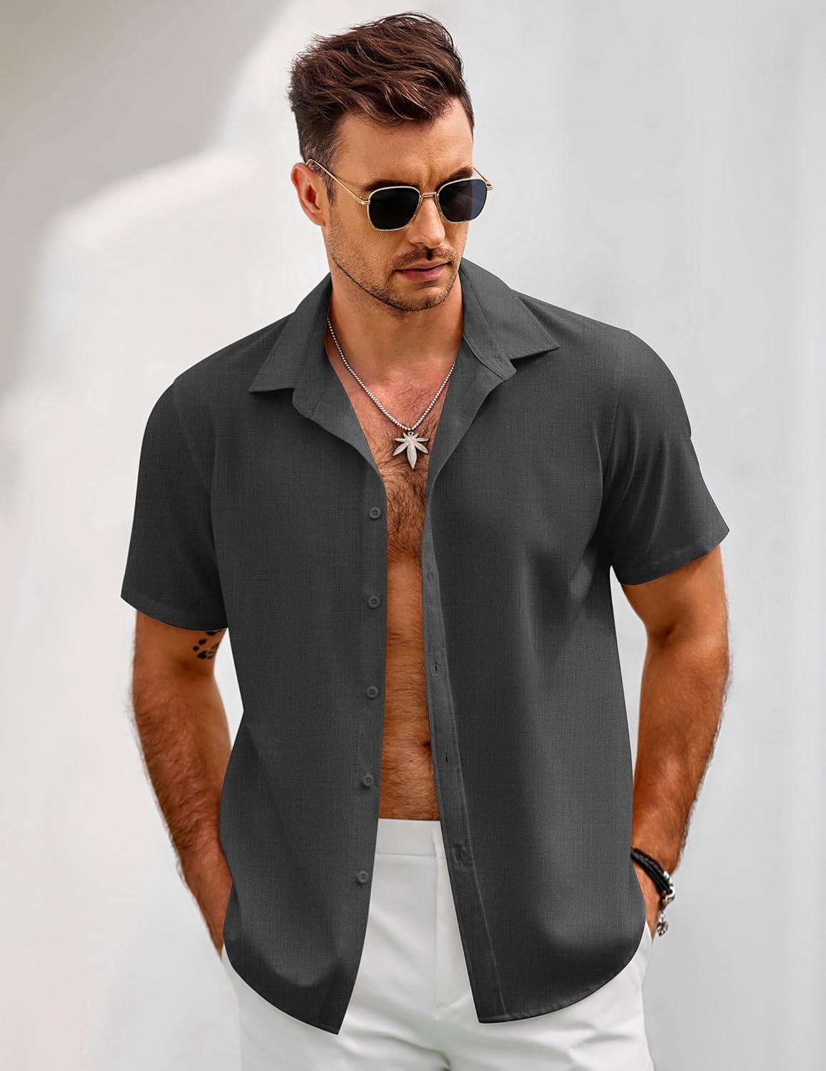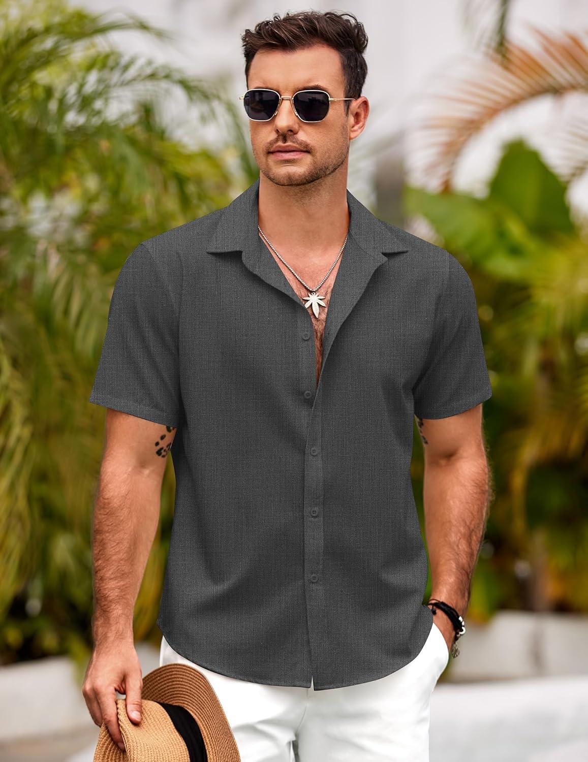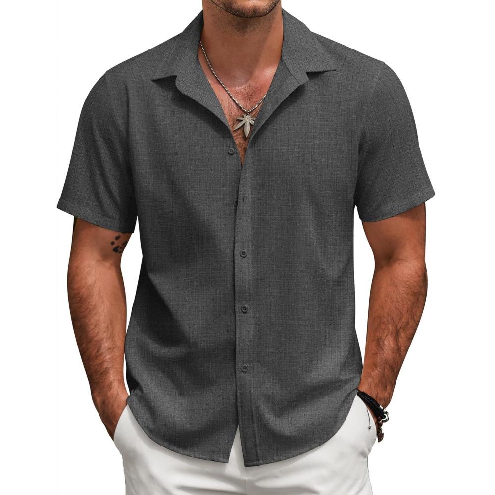 COOFANDY Mens Short Sleeve Button Down Shirts Casual Linen Summer Beach Shirt Wrinkle Free(Dark Gray)