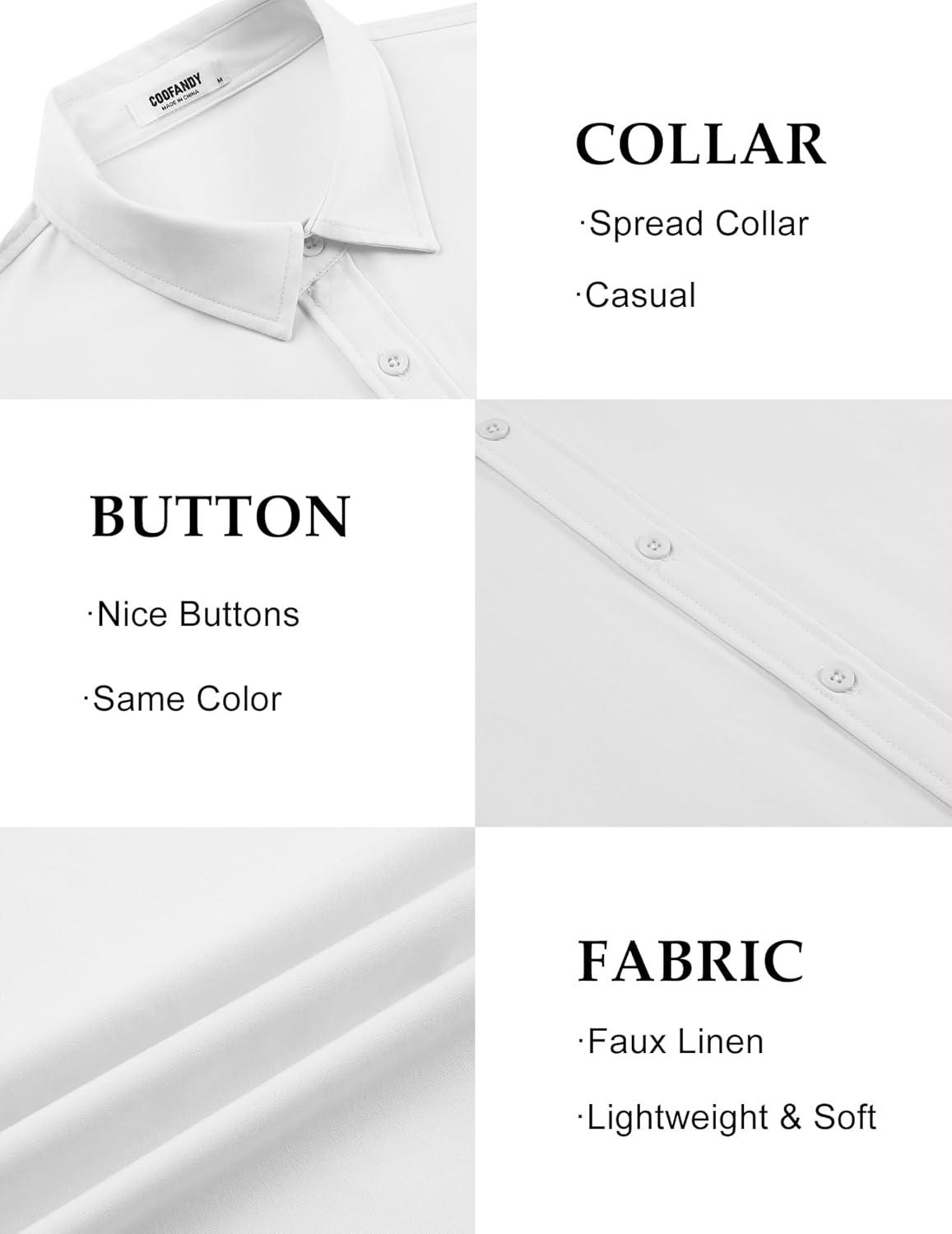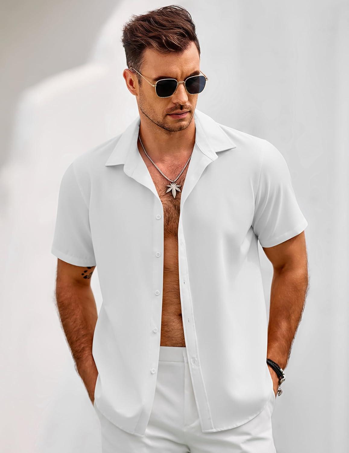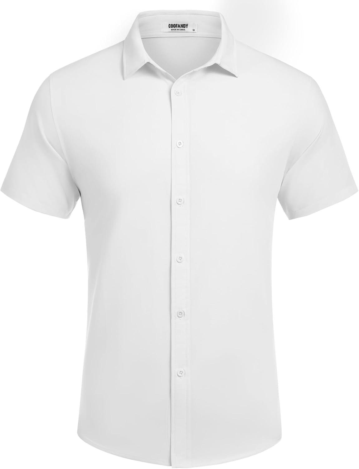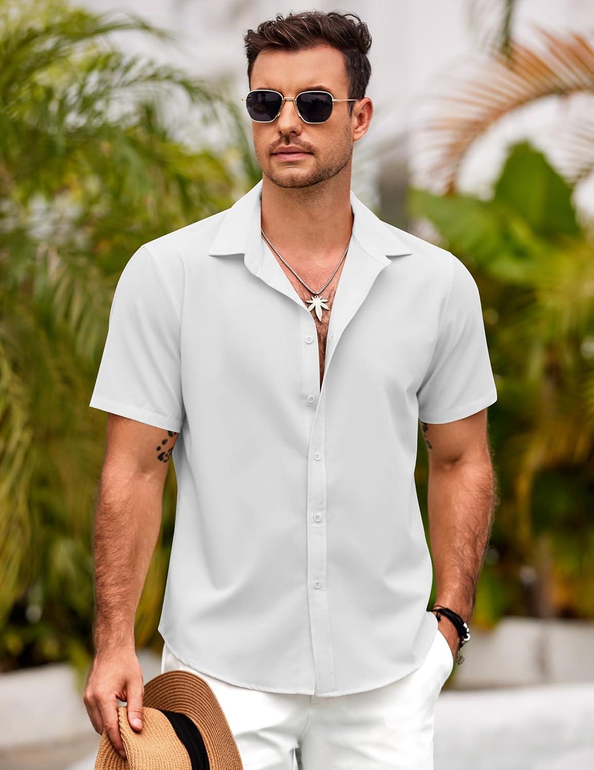 COOFANDY Mens Short Sleeve Button Down Shirts Casual Linen Summer Beach Shirt Wrinkle Free(White)