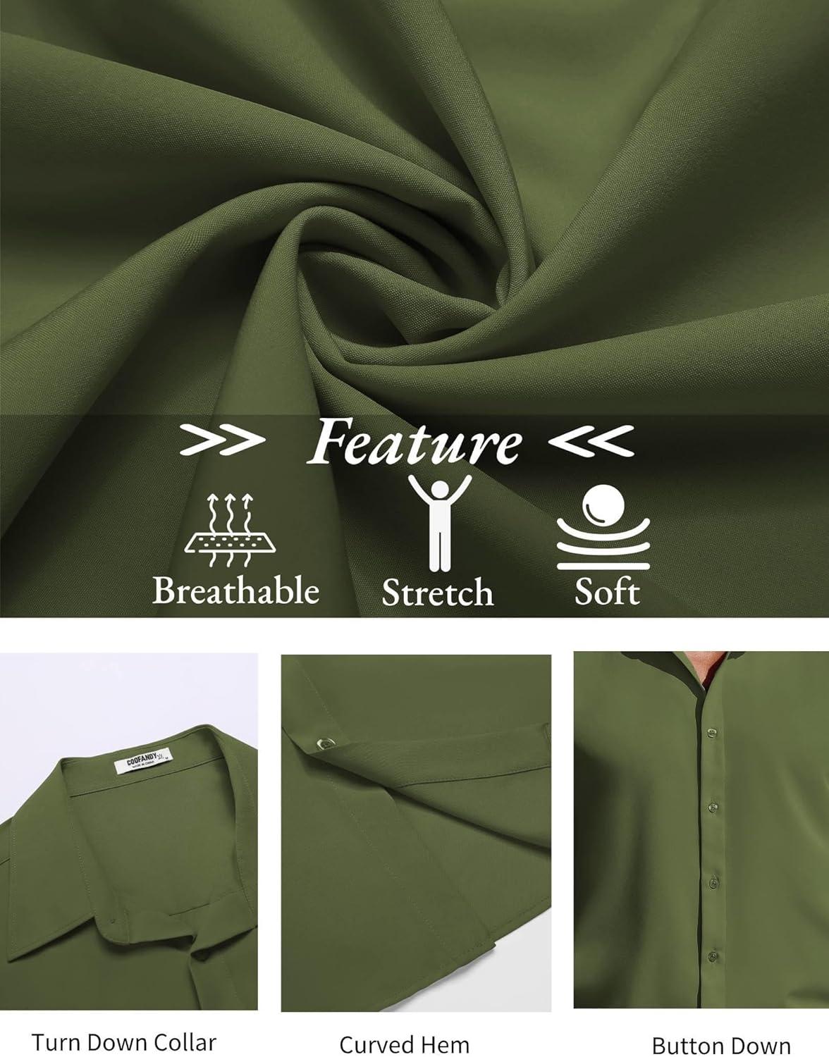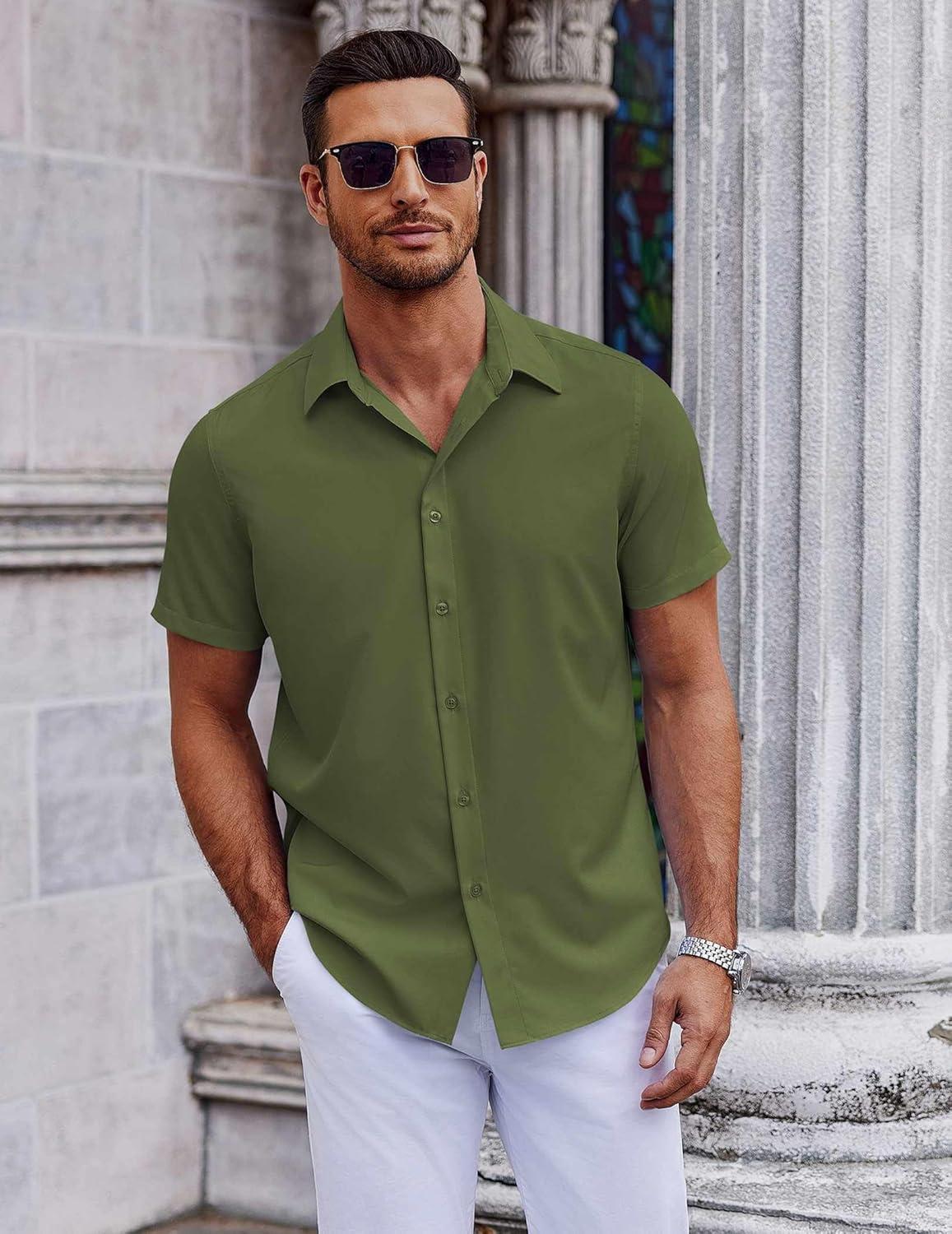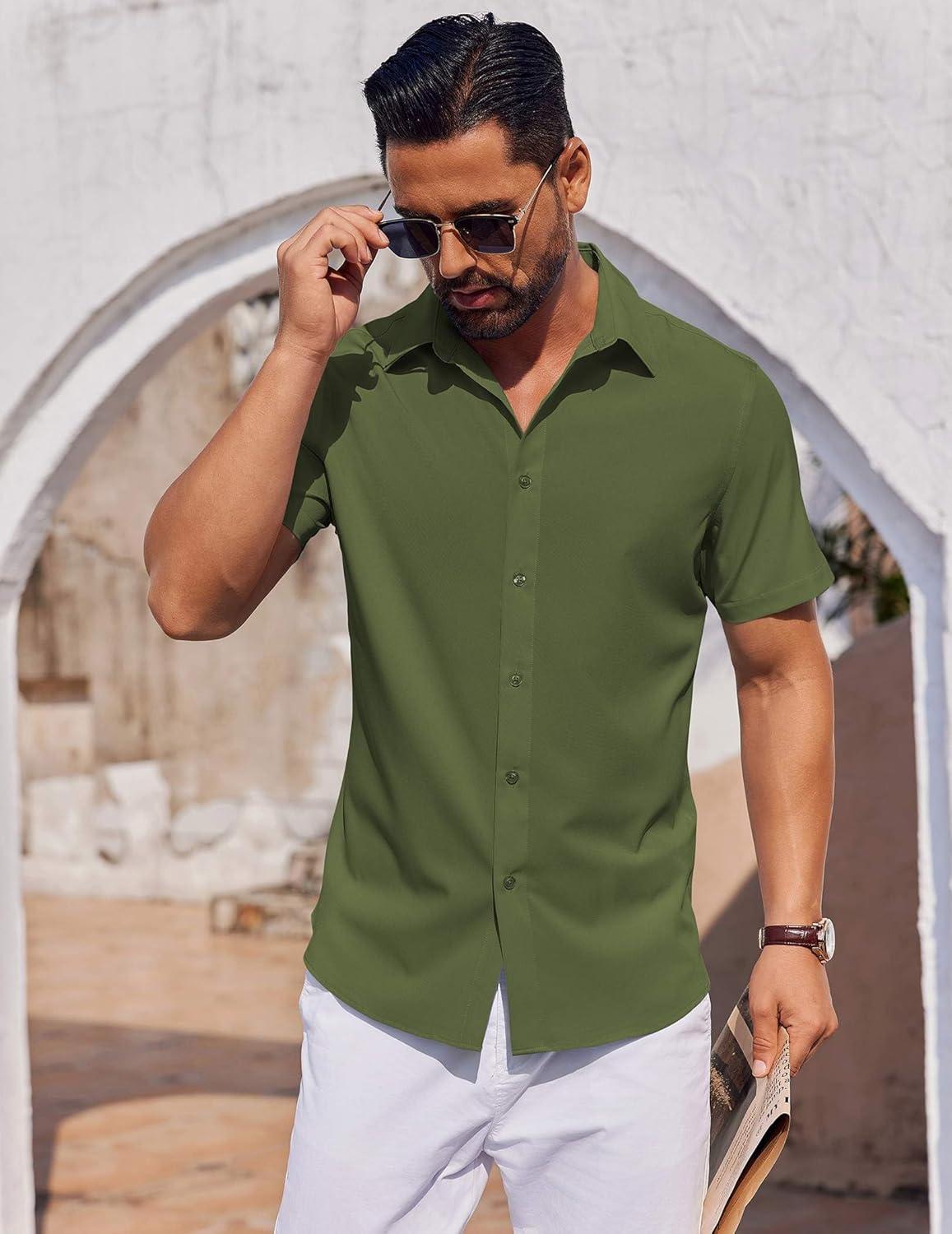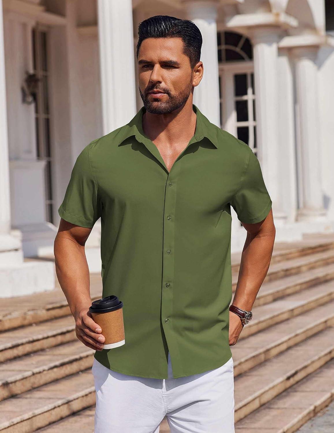 COOFANDY Mens Short Sleeve Button Down Shirts Casual Summer Shirt Untucked Dress Shirts(Army Green)
