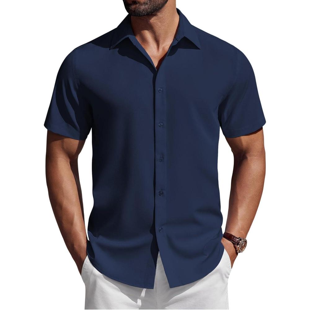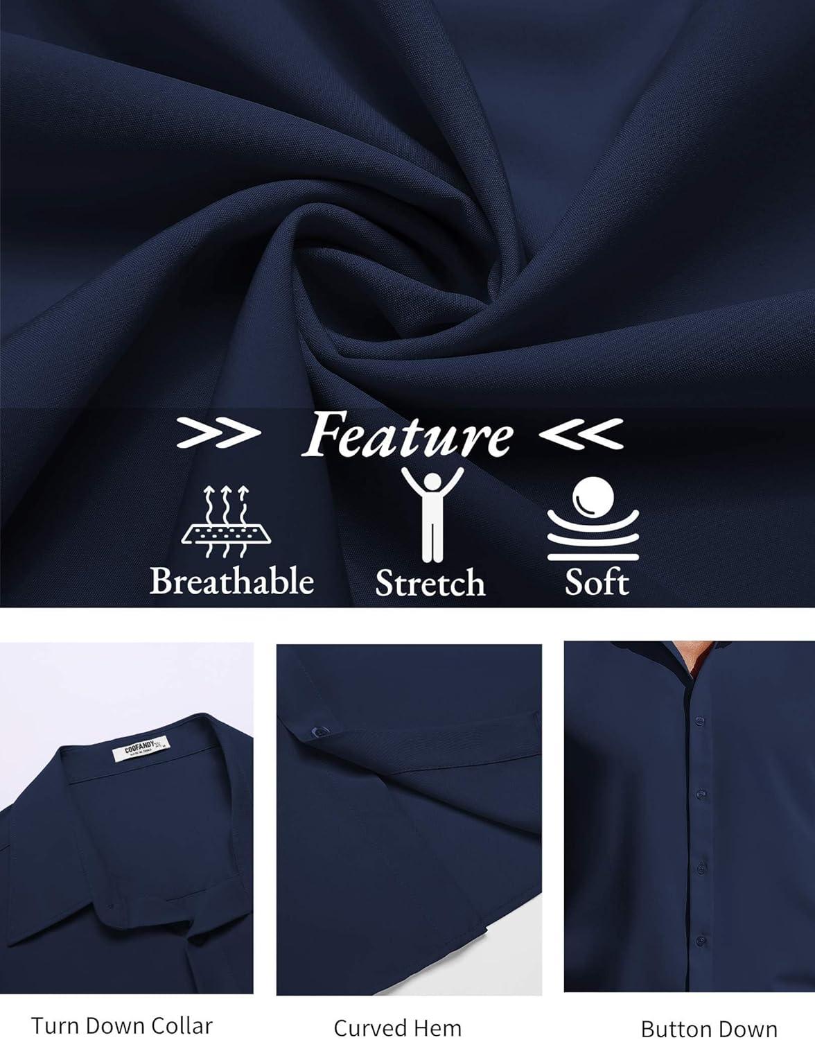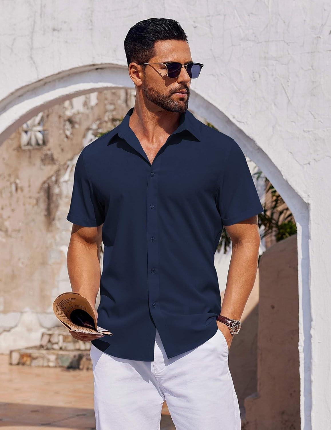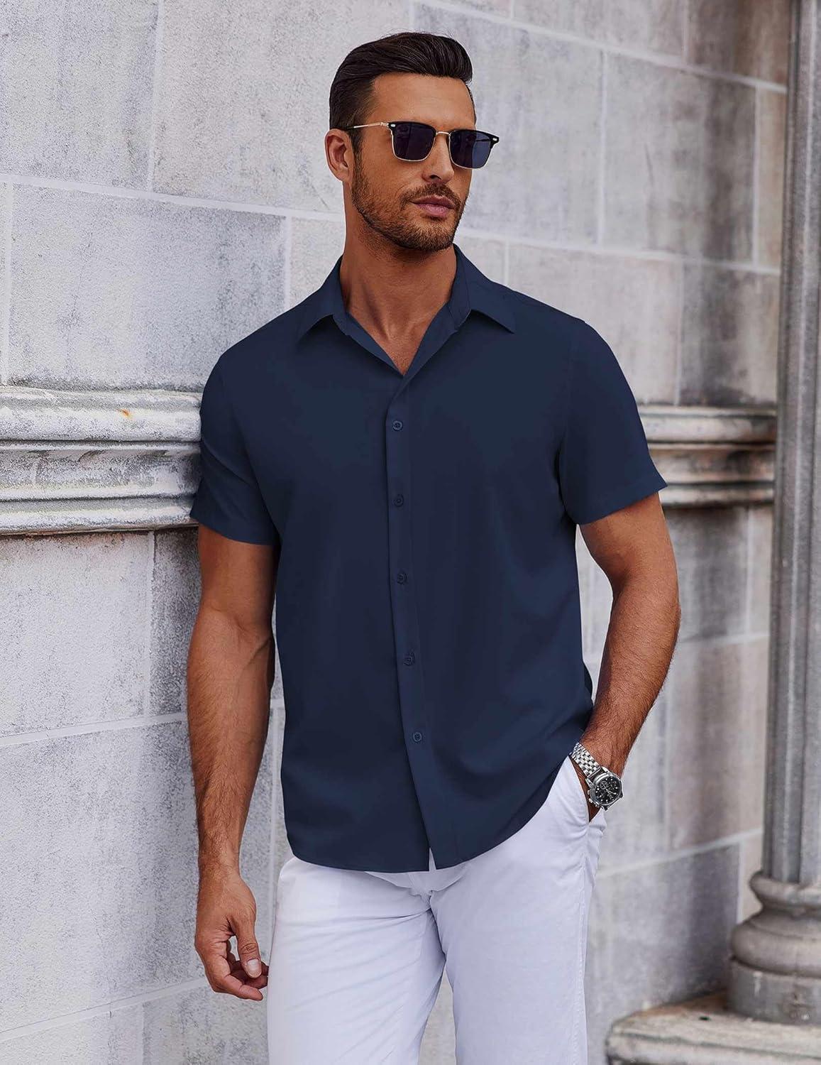 COOFANDY Mens Short Sleeve Button Down Shirts Casual Summer Shirt Untucked Dress Shirts(Navy Blue)