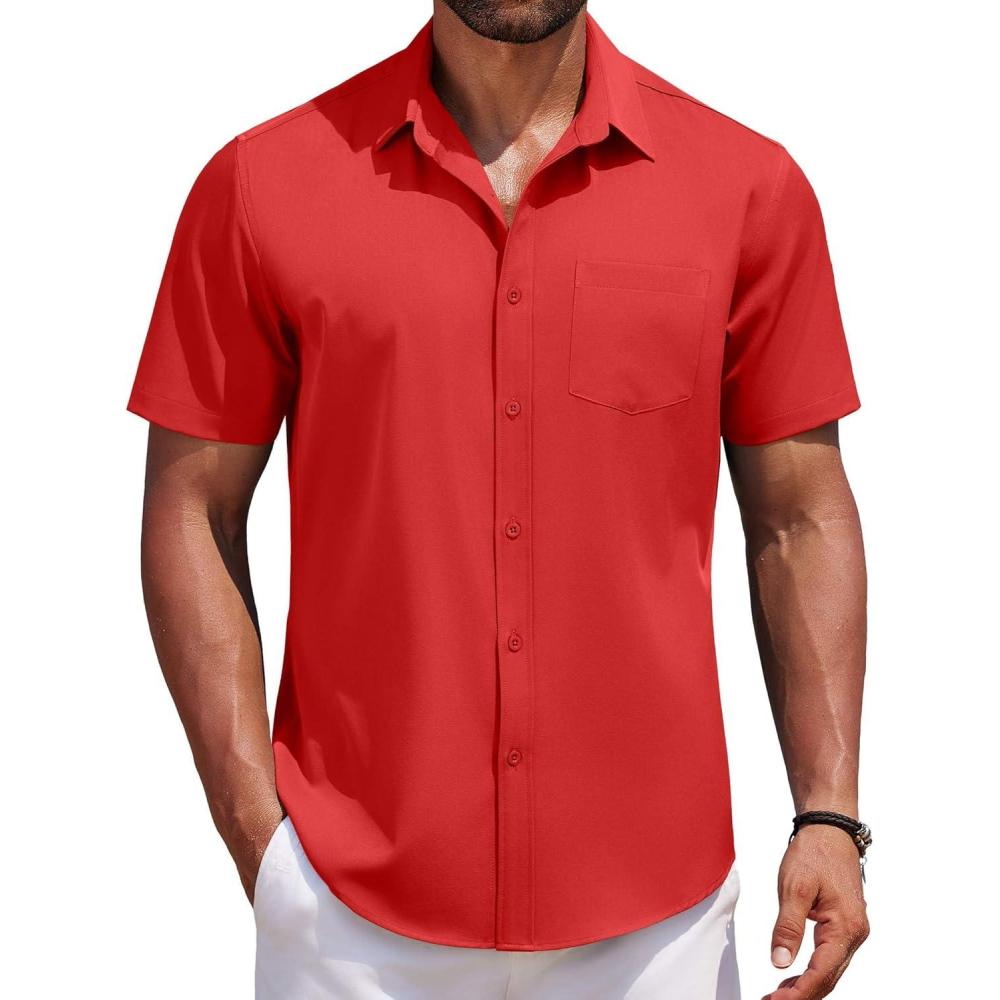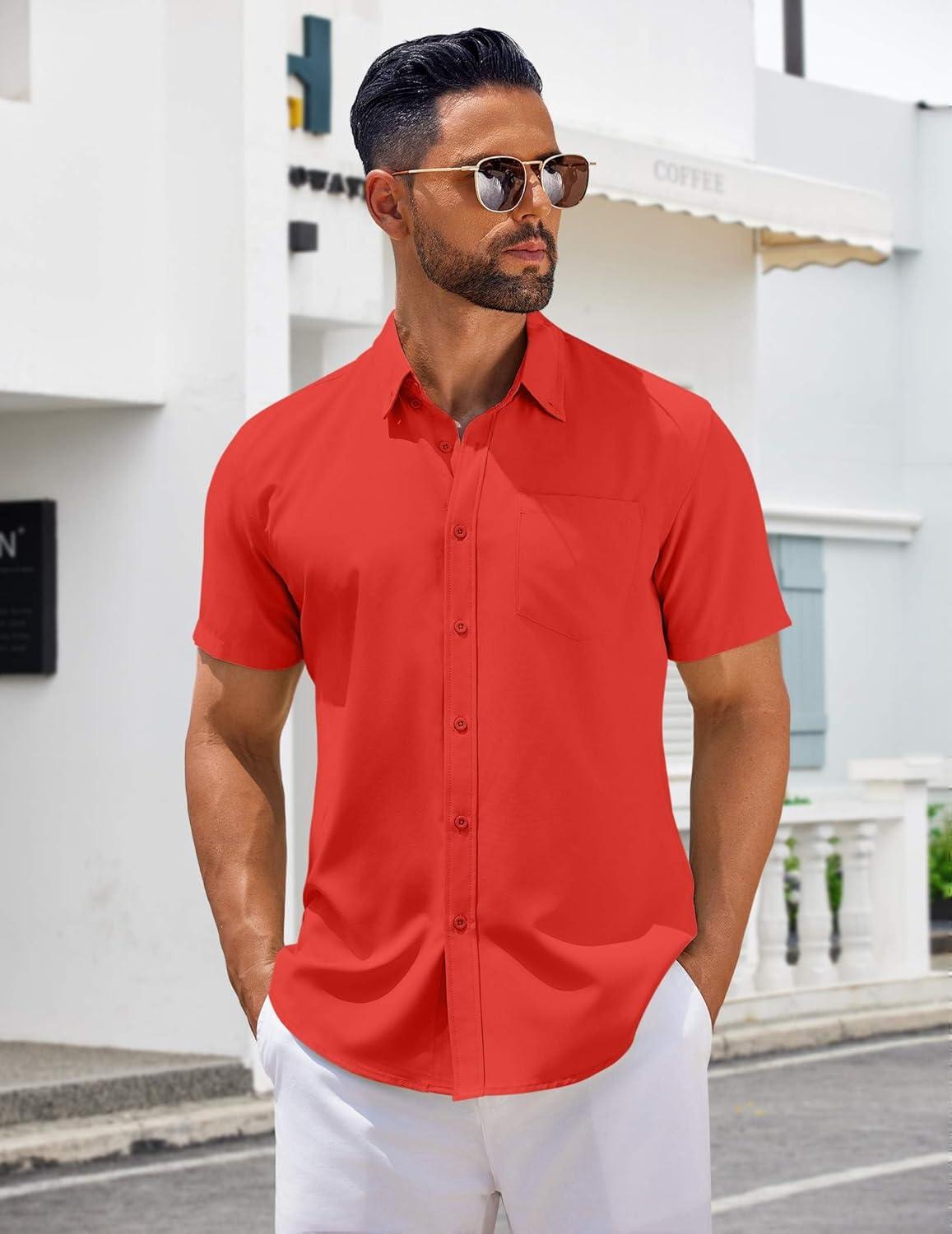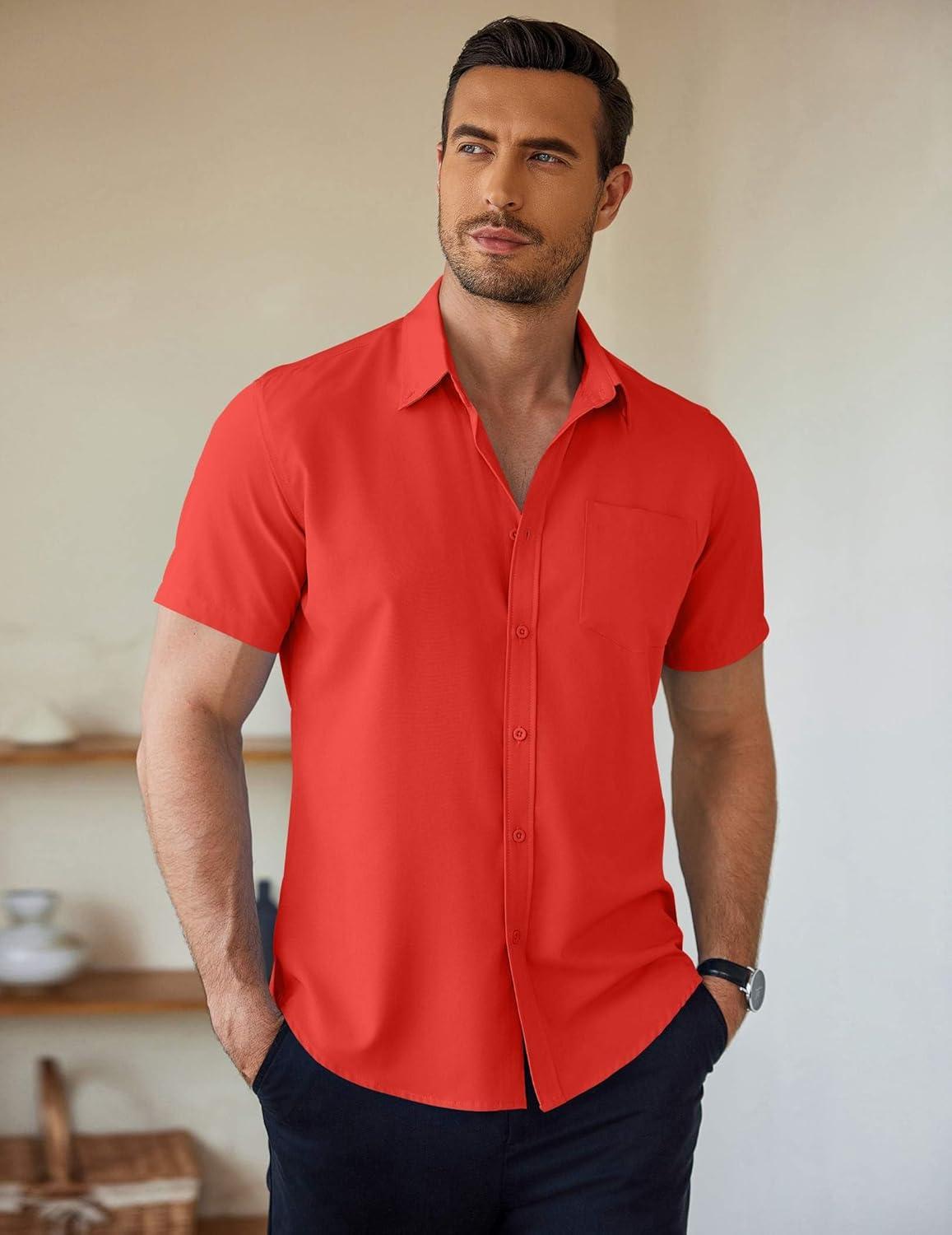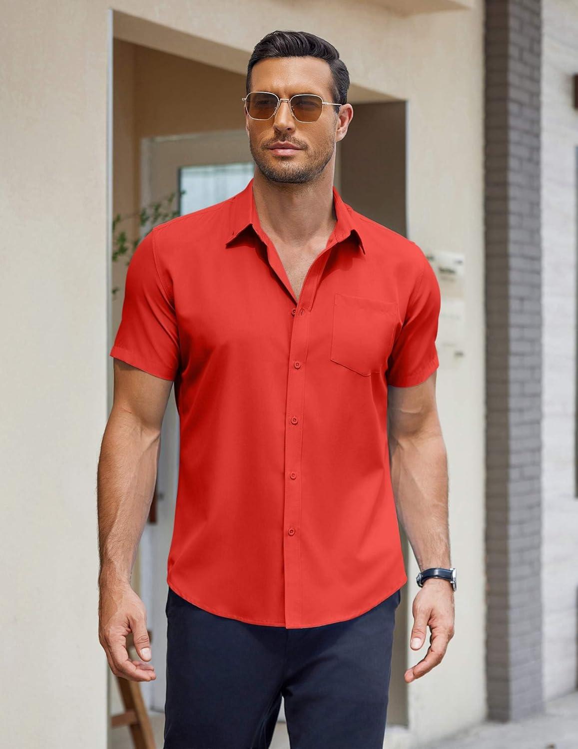 COOFANDY Men's Short Sleeve Button Down Shirts Casual Summer Untucked Wrinkle Free Dress Shirts with Pocket(Fiery Red)