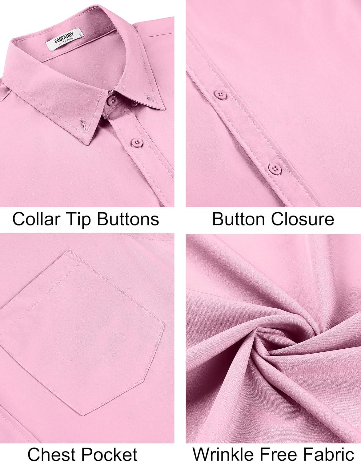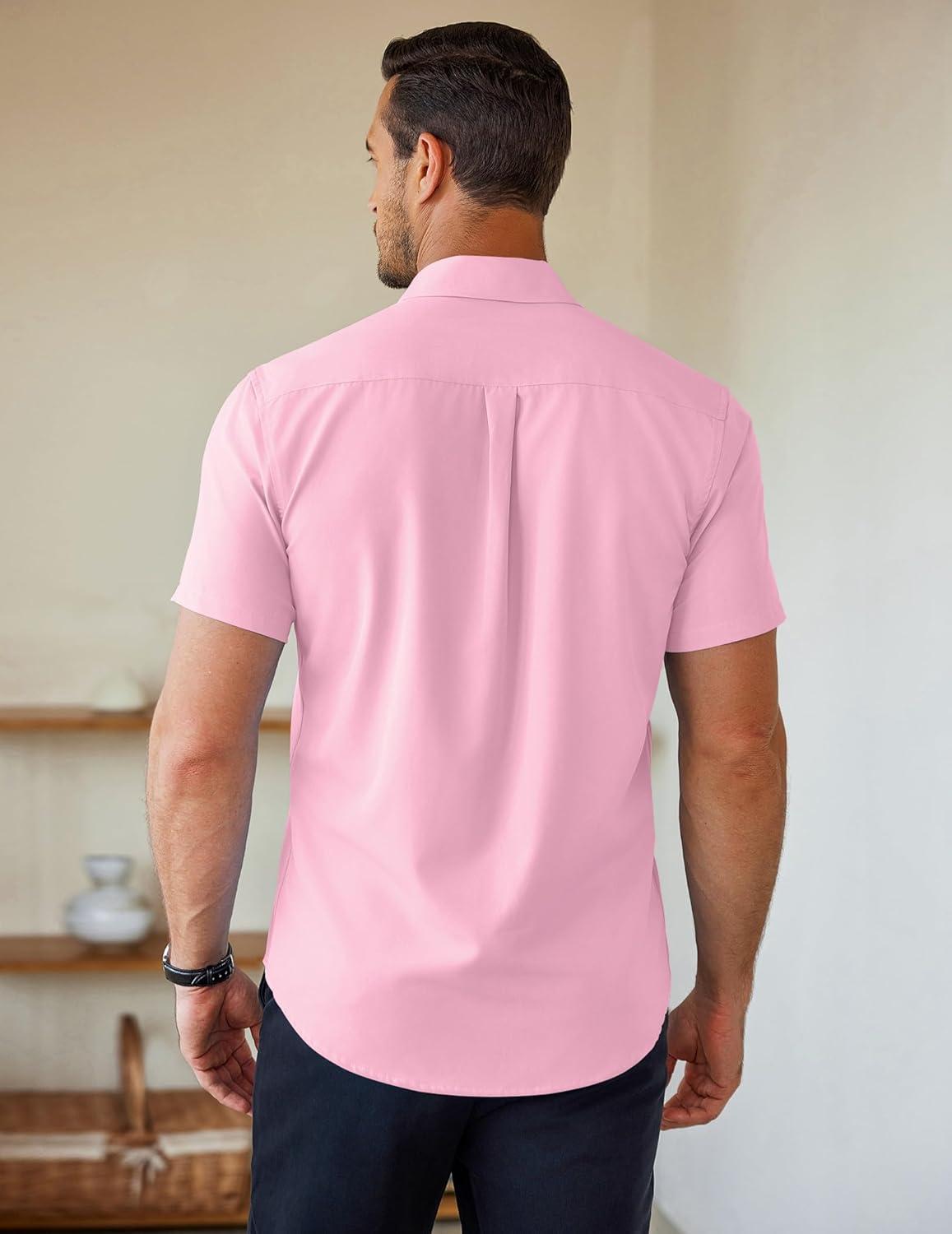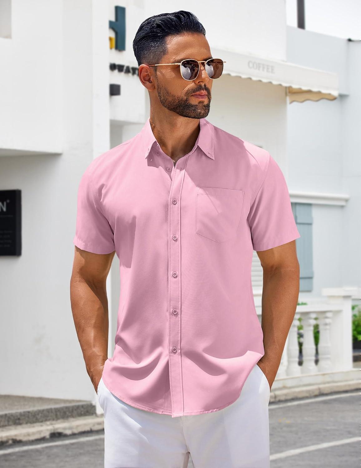 COOFANDY Men's Short Sleeve Button Down Shirts Casual Summer Untucked Wrinkle Free Dress Shirts with Pocket(Icy Pink)