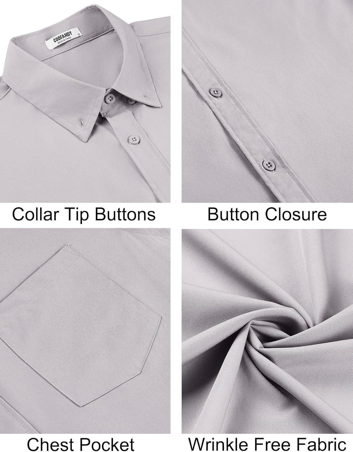 imageCOOFANDY Mens Short Sleeve Button Down Shirts Casual Summer Untucked Wrinkle Free Dress Shirts with PocketQuiet Gray