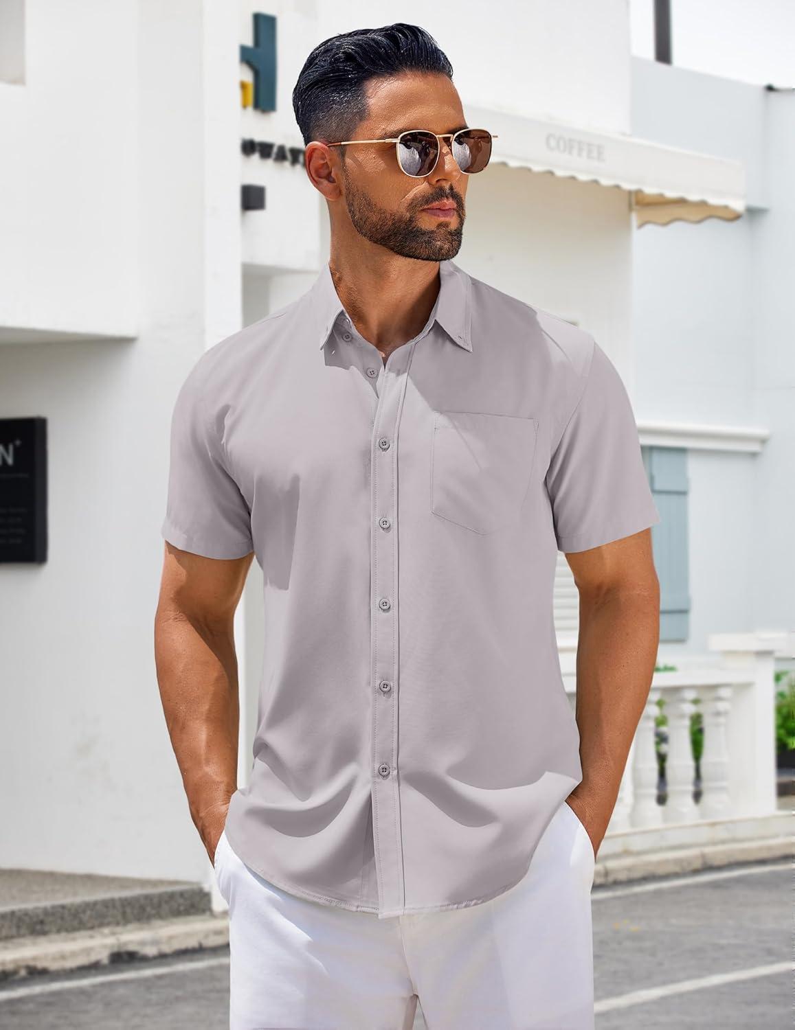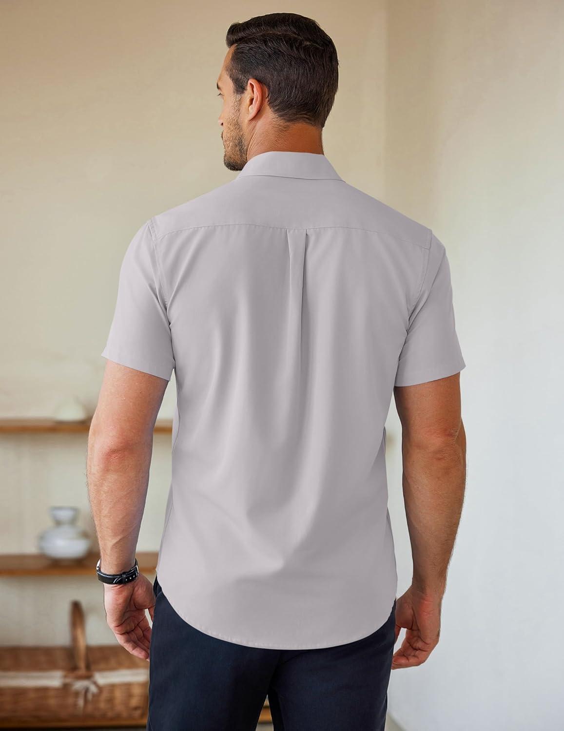 COOFANDY Men’s Short Sleeve Button Down Shirts Casual Summer Untucked Wrinkle Free Dress Shirts with Pocket(Quiet Gray)