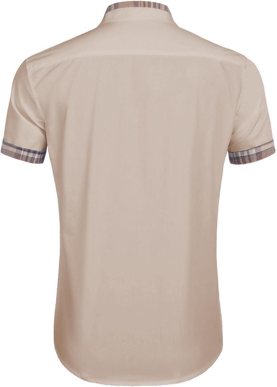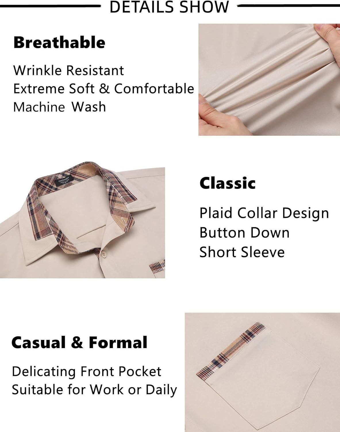 COOFANDY Mens Short Sleeve Button Down Shirts Casual Wrinkle Free Dress Shirt Plaid Collar Summer Shirts(Khaki)