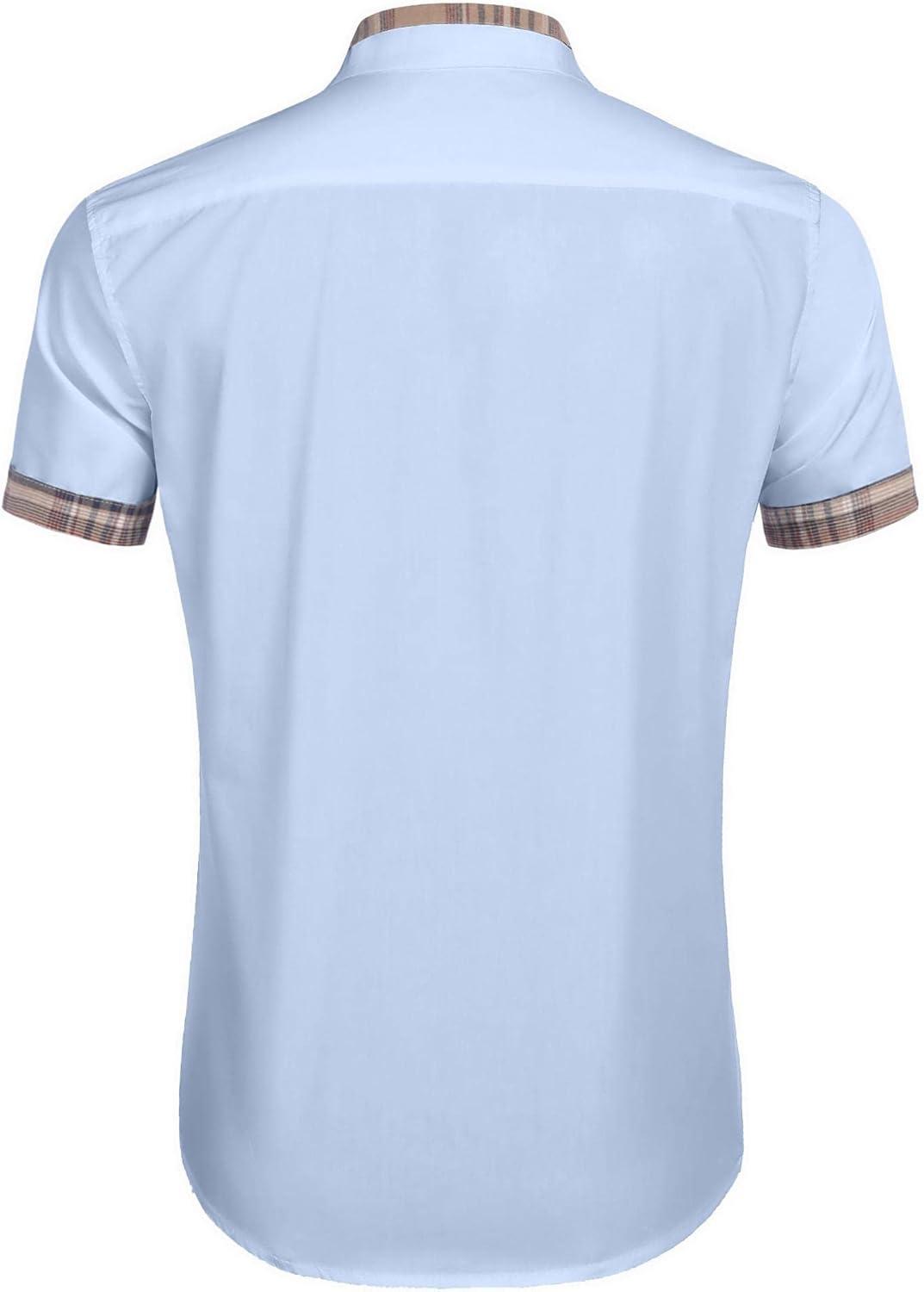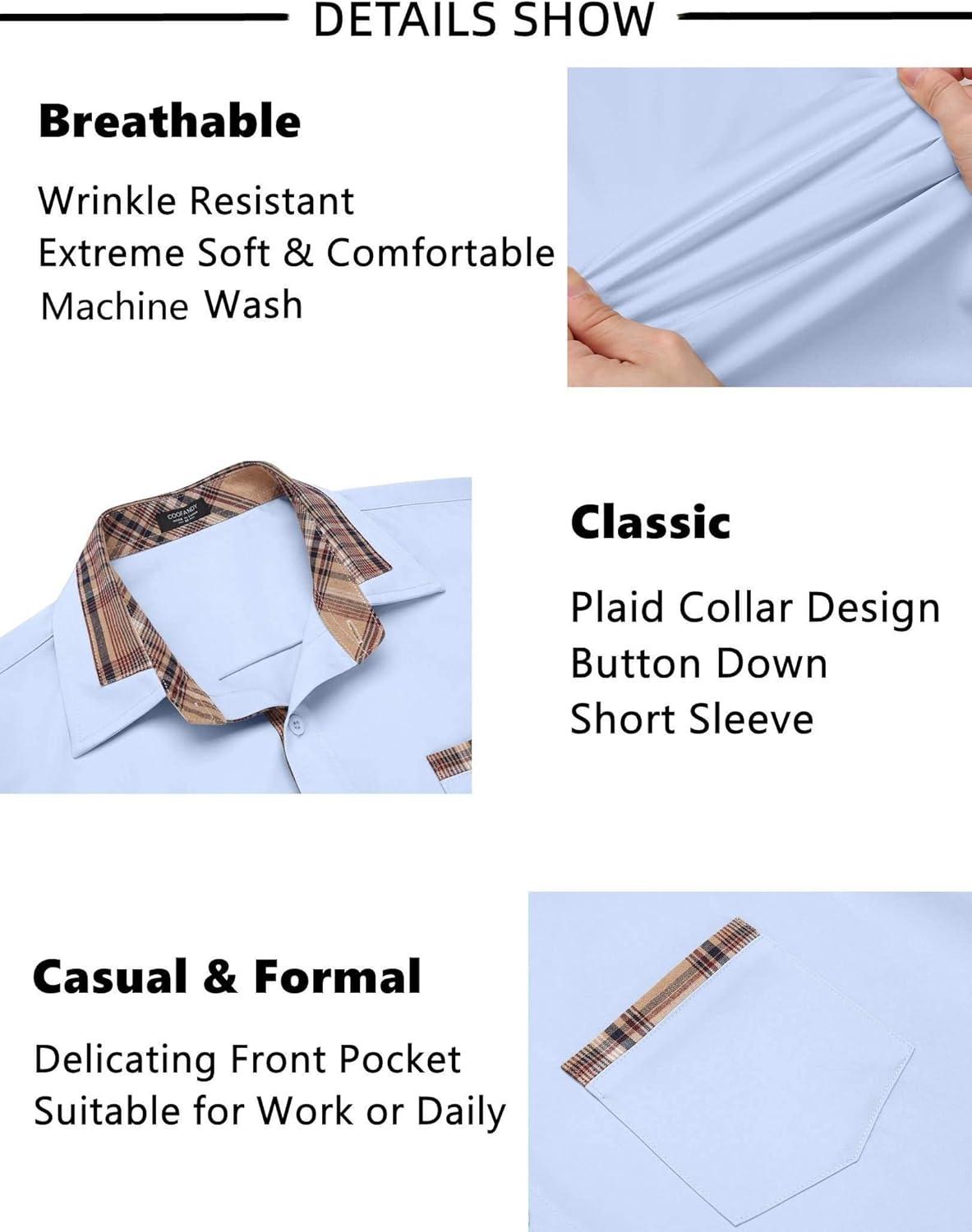 COOFANDY Mens Short Sleeve Button Down Shirts Casual Wrinkle Free Dress Shirt Plaid Collar Summer Shirts(Light Blue)