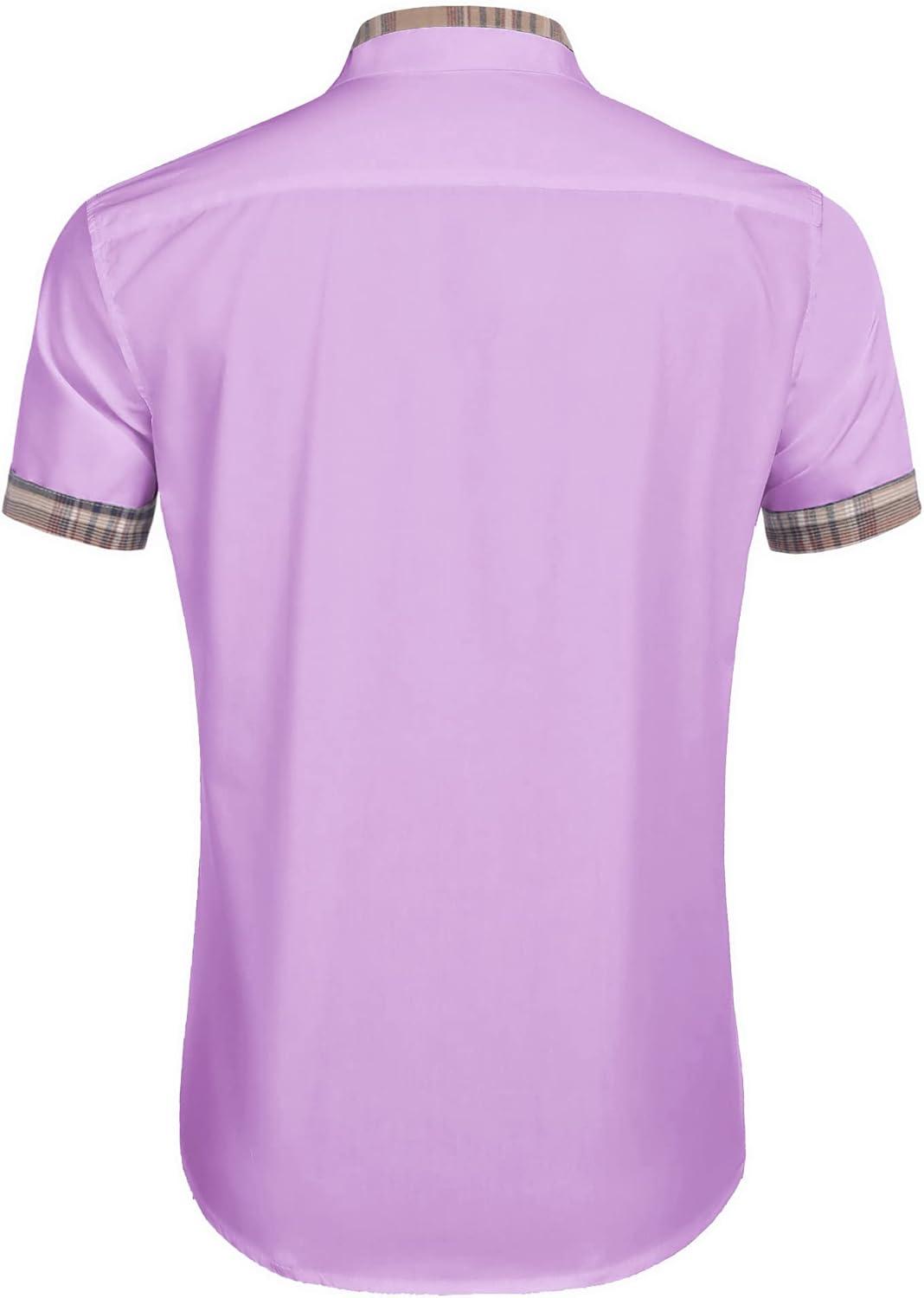 COOFANDY Mens Short Sleeve Button Down Shirts Casual Wrinkle Free Dress Shirt Plaid Collar Summer Shirts(Light Purple)