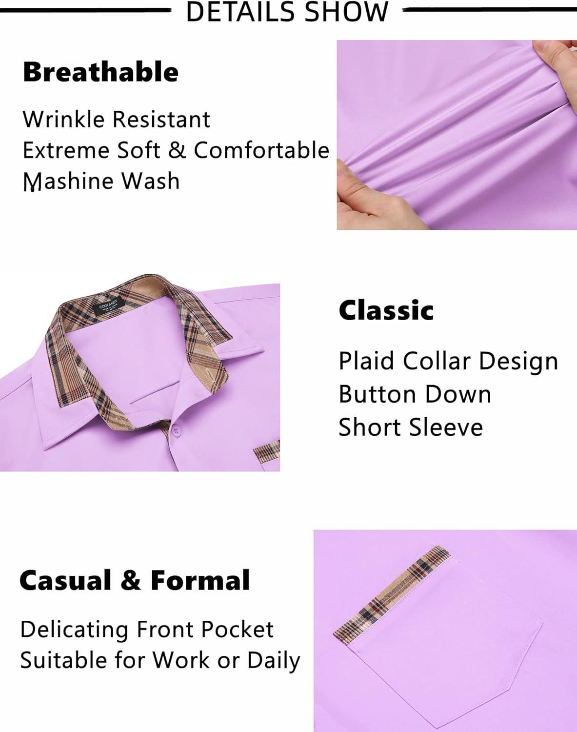 imageCOOFANDY Mens Short Sleeve Button Down Shirts Casual Wrinkle Free Dress Shirt Plaid Collar Summer ShirtsLight Purple