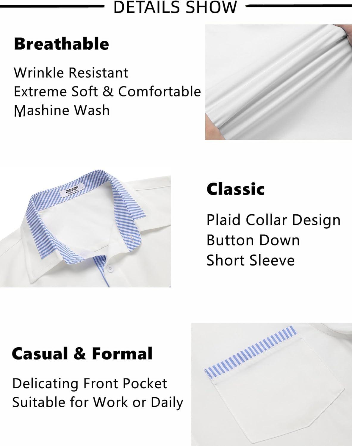 COOFANDY Mens Short Sleeve Button Down Shirts Casual Wrinkle Free Dress Shirt Plaid Collar Summer Shirts(White(blue Stripe))