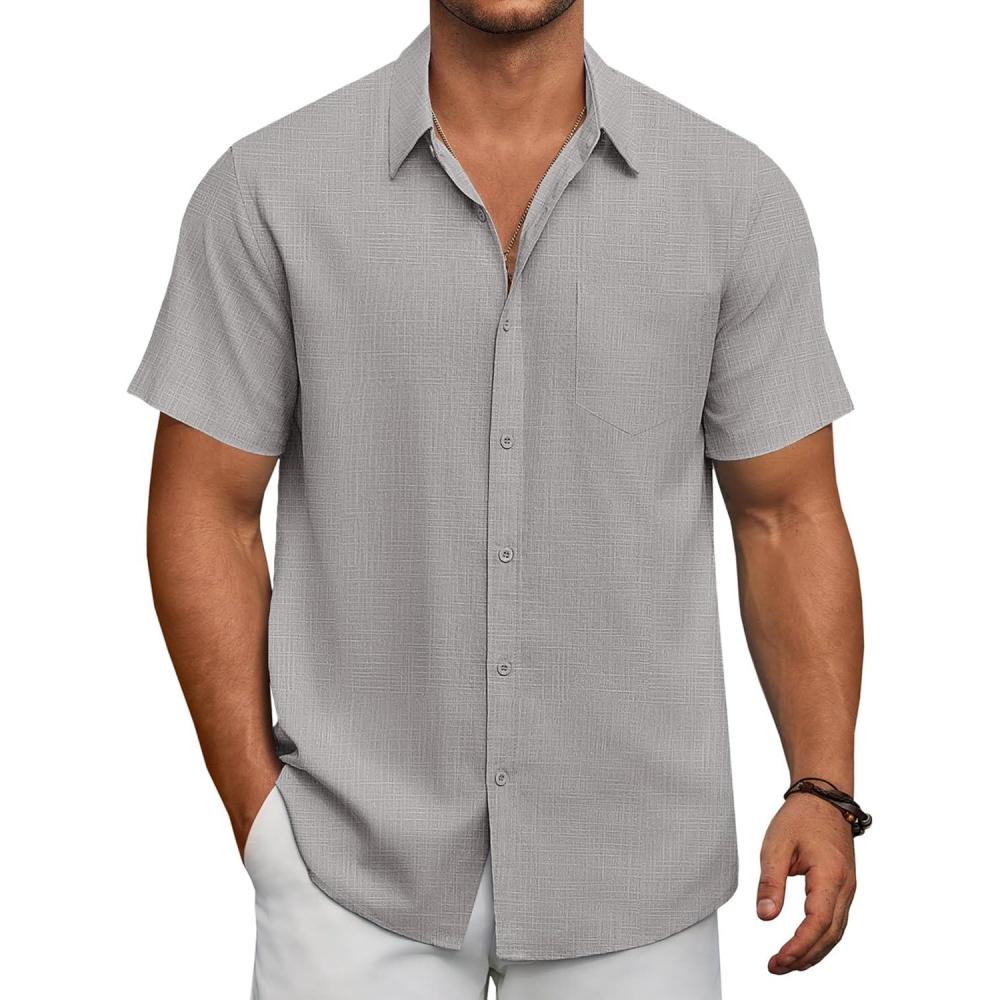 COOFANDY Men's Short Sleeve Button Down Shirts Summer Casual Textured Shirt Vacation Beach Wedding Shirts with Pocket(Gray)