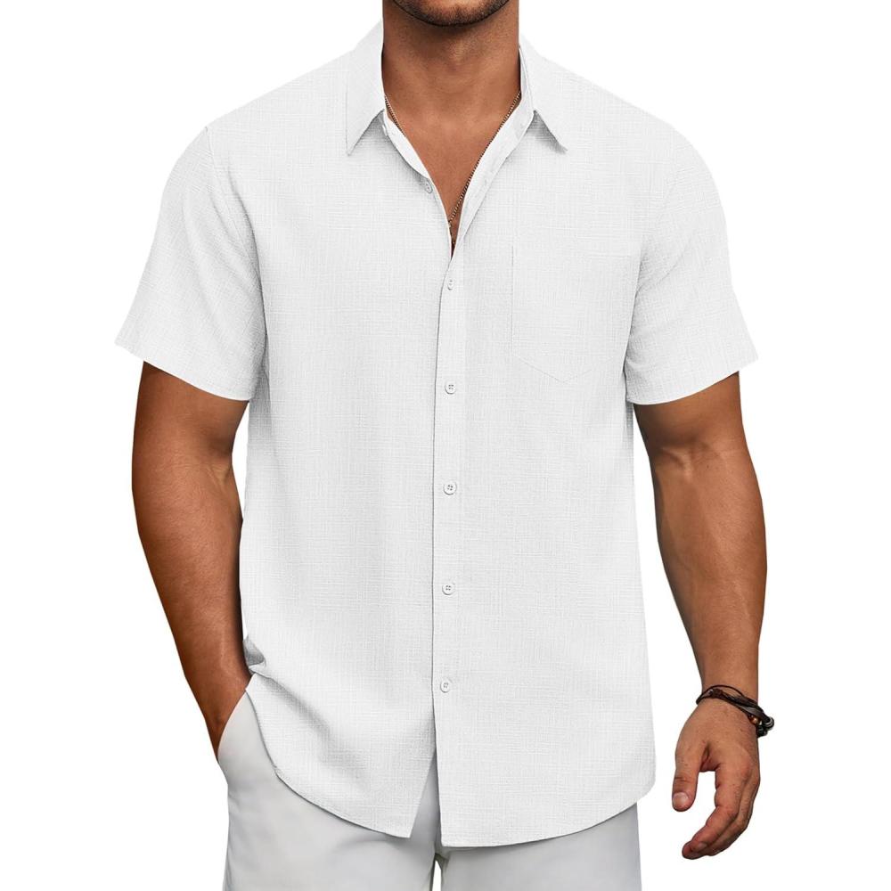 Get the COOFANDY Men’s Short Sleeve Button Down Shirts Summer Casual Textured Shirt Vacation Beach Wedding Shirts with Pocket(White) you’ve been eyeing at a discounted price during our seasonal sale event.