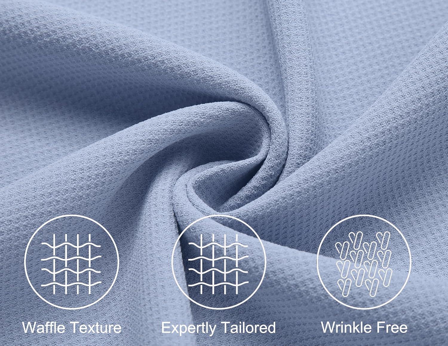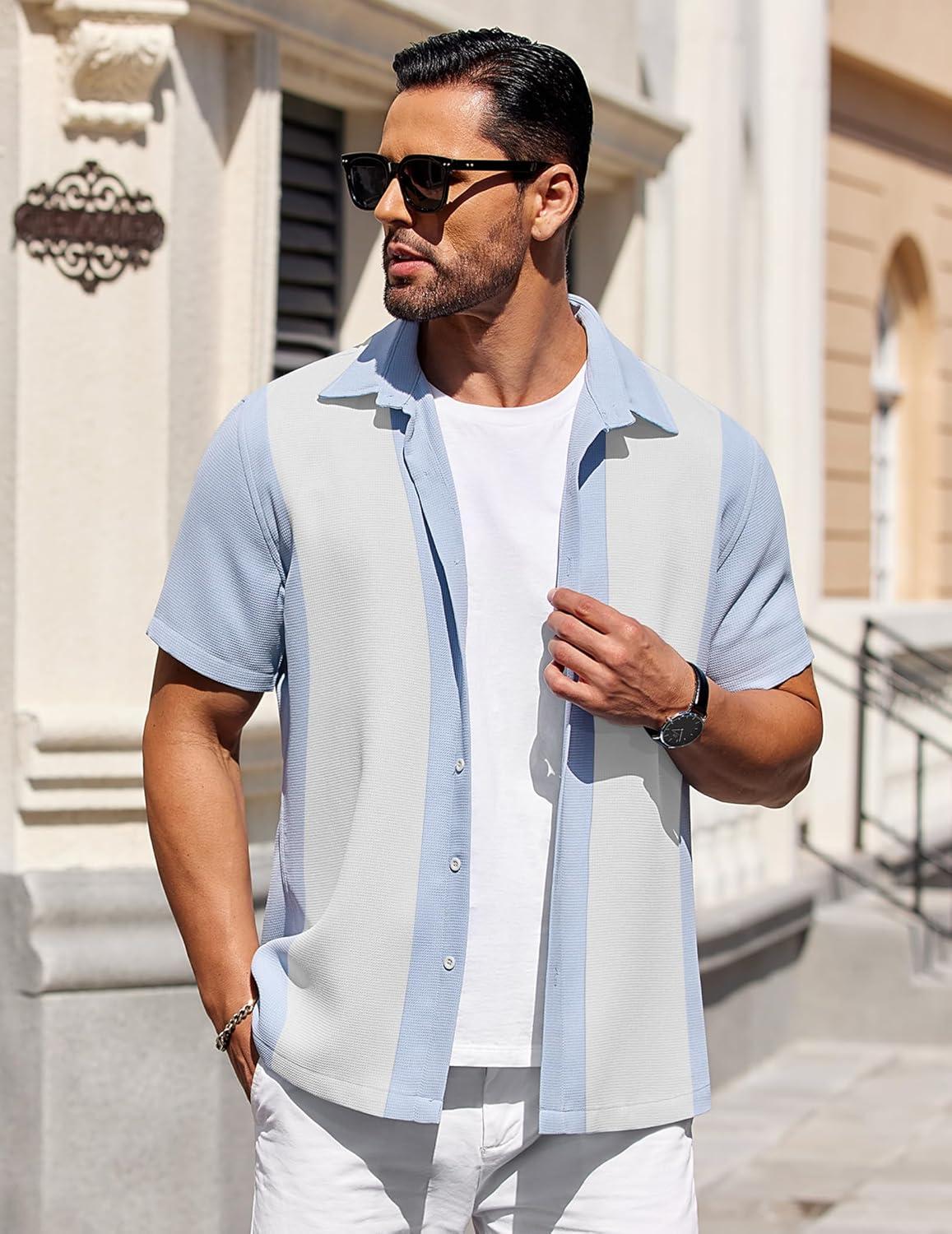 COOFANDY Mens Short Sleeve Button Down Shirts Waffle Shirt Casual Beach Summer Shirts Wrinkle Free Vacation Shirts(Blue White)