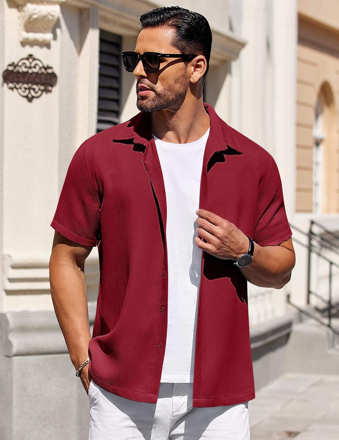 Get the COOFANDY Mens Short Sleeve Button Down Shirts Waffle Shirt Casual Beach Summer Shirts Wrinkle Free Vacation Shirts(Wine Red) you’ve been eyeing at a discounted price during our seasonal sale event.
