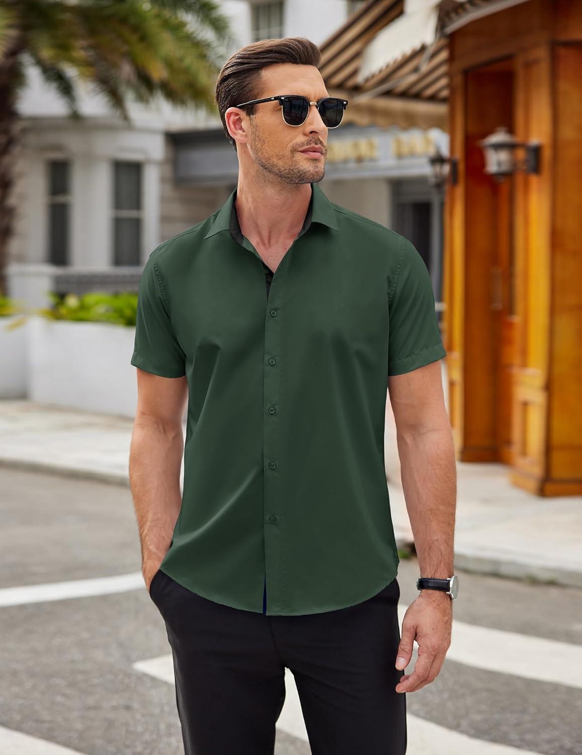 imageCOOFANDY Mens Short Sleeve Button Down Shirts Wrinkle Free Casual Summer Shirts Business Dress ShirtsBright Green