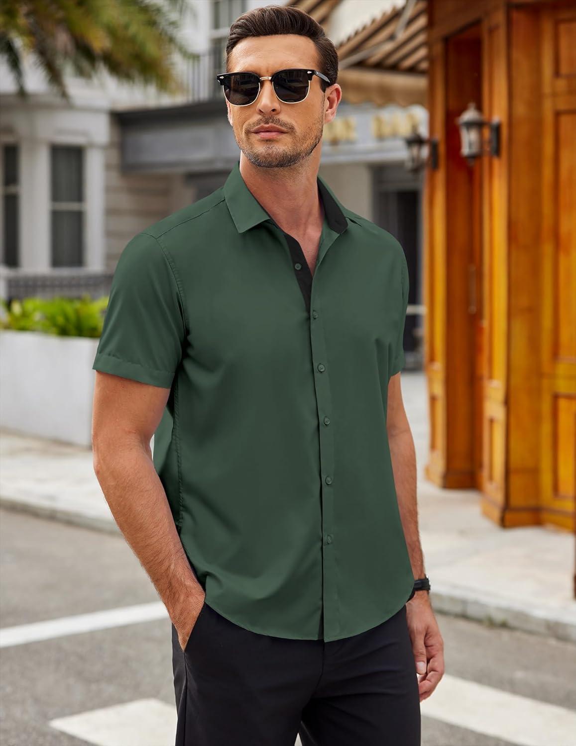 COOFANDY Men’s Short Sleeve Button Down Shirts Wrinkle Free Casual Summer Shirts Business Dress Shirts(Black)