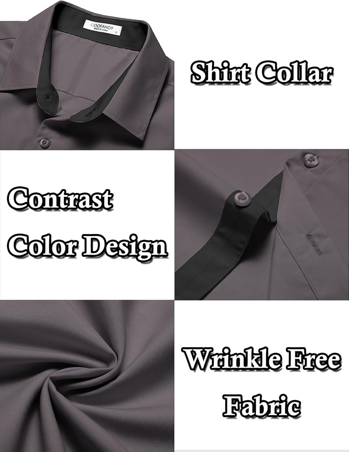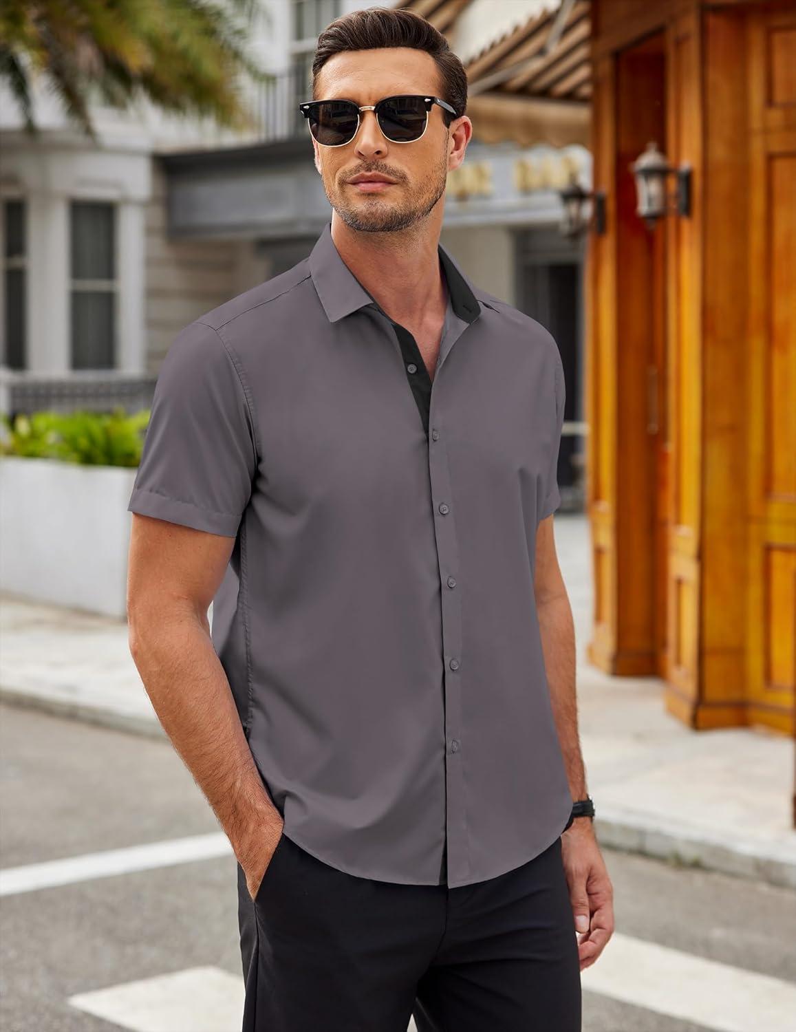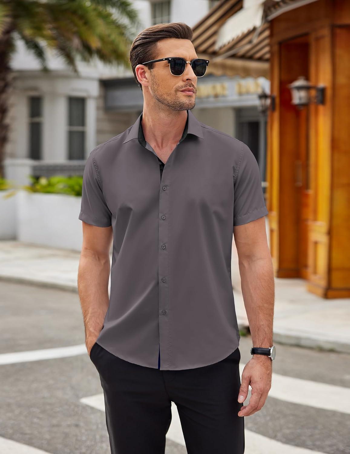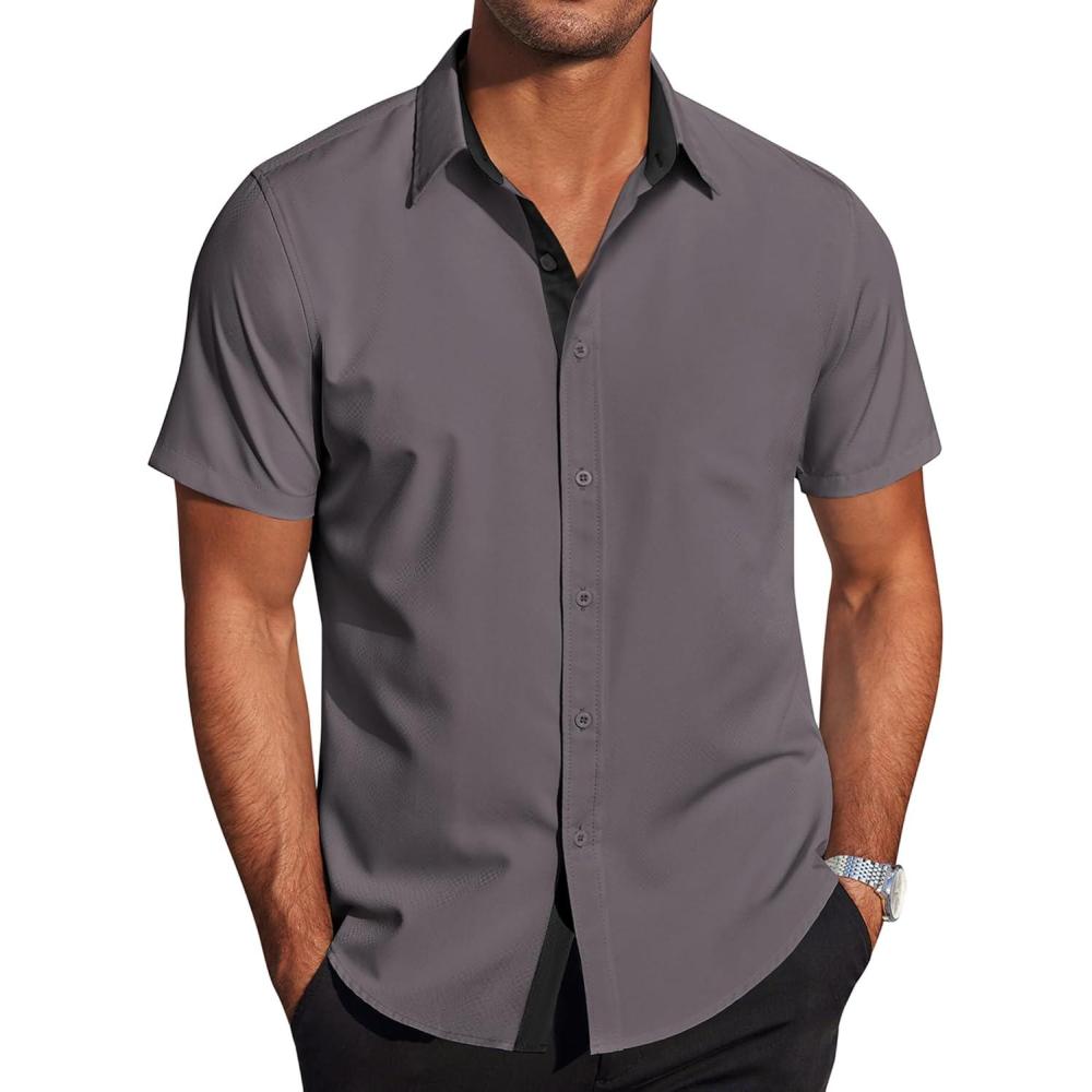 COOFANDY Men's Short Sleeve Button Down Shirts Wrinkle Free Casual Summer Shirts Business Dress Shirts(Dark Grey)