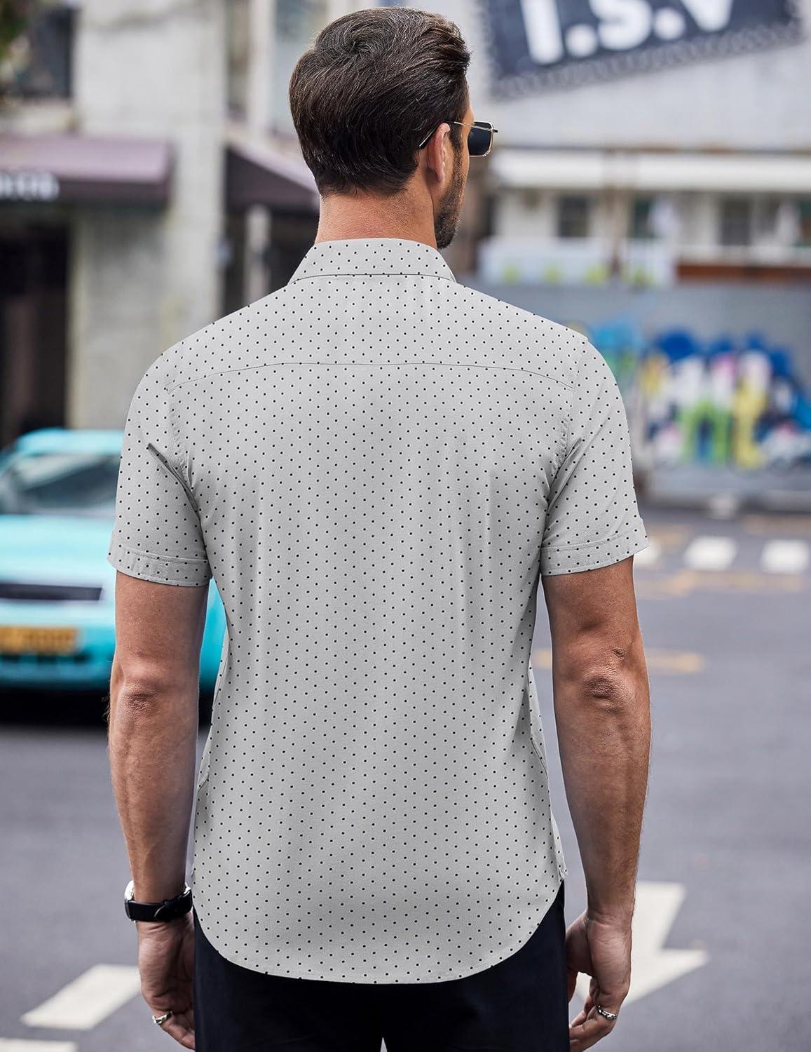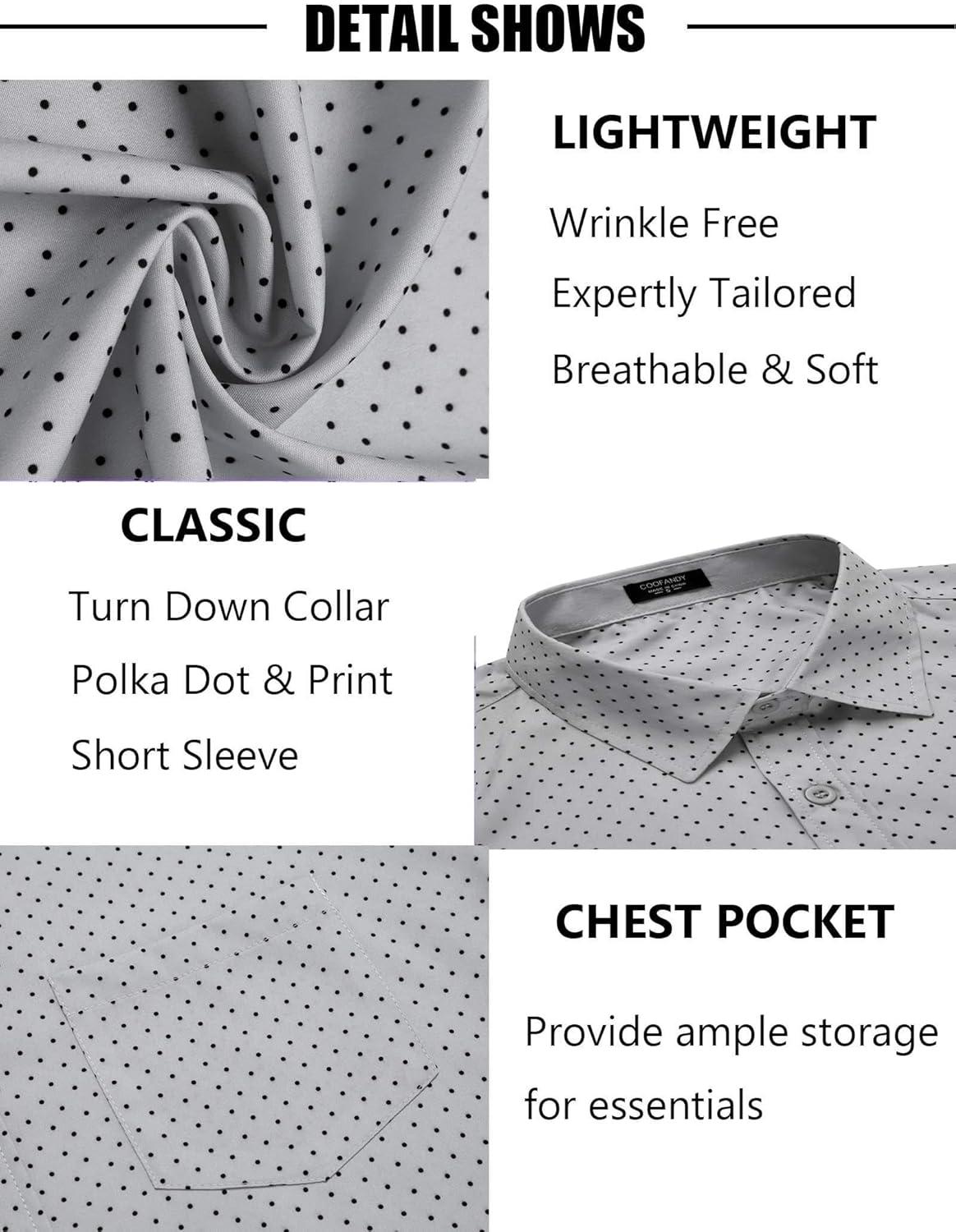 COOFANDY Mens Short Sleeve Button Down Shirts Wrinkle Free Dress Shirts Casual Polka Dot Print Shirt with Pocket(Grey)