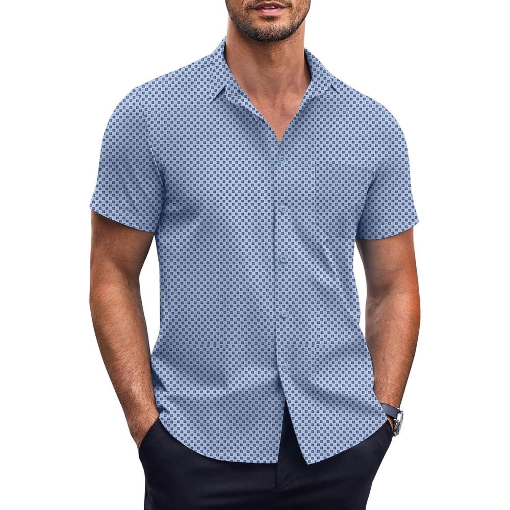 Be the first to review “COOFANDY Mens Short Sleeve Button Down Shirts Wrinkle Free Dress Shirts Casual Polka Dot Print Shirt with Pocket(Light Blue(windmill))”