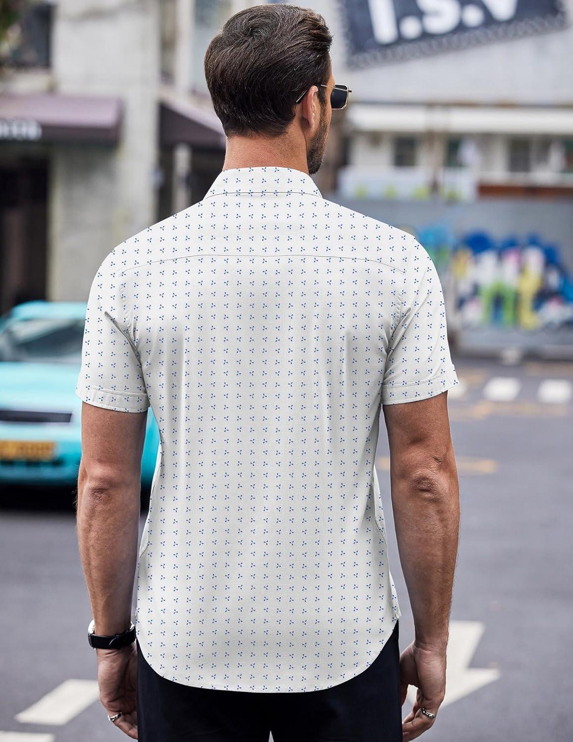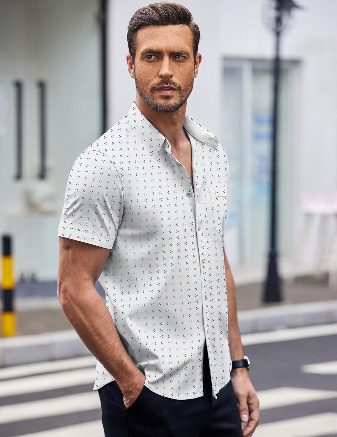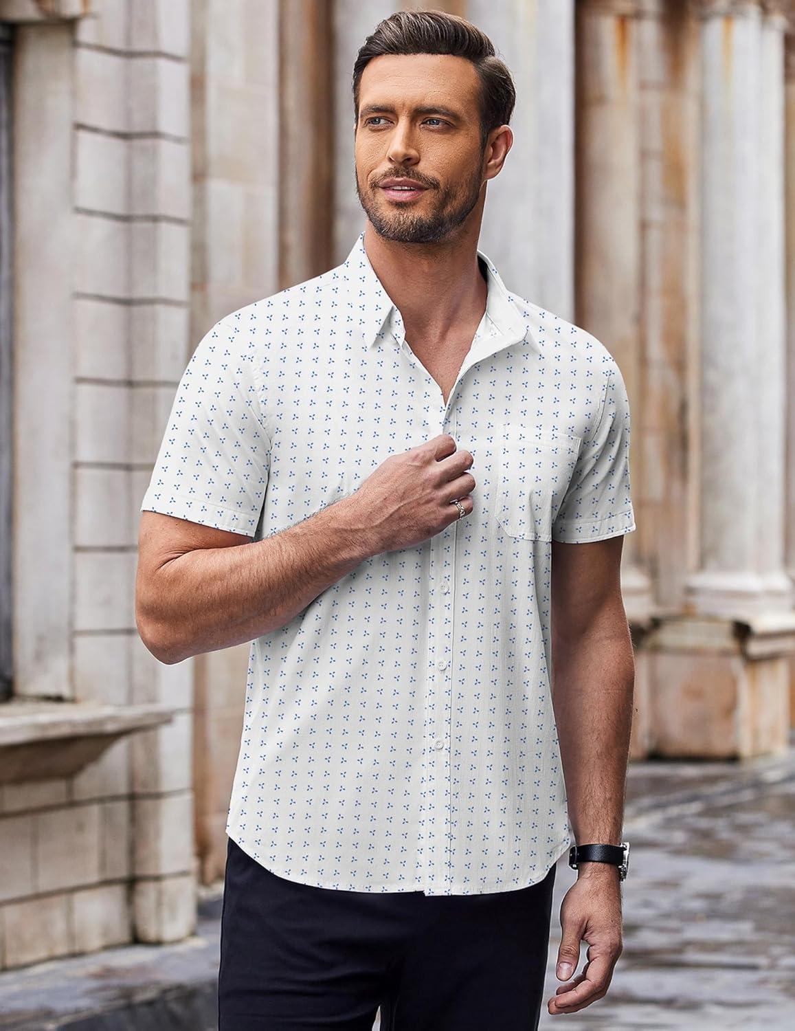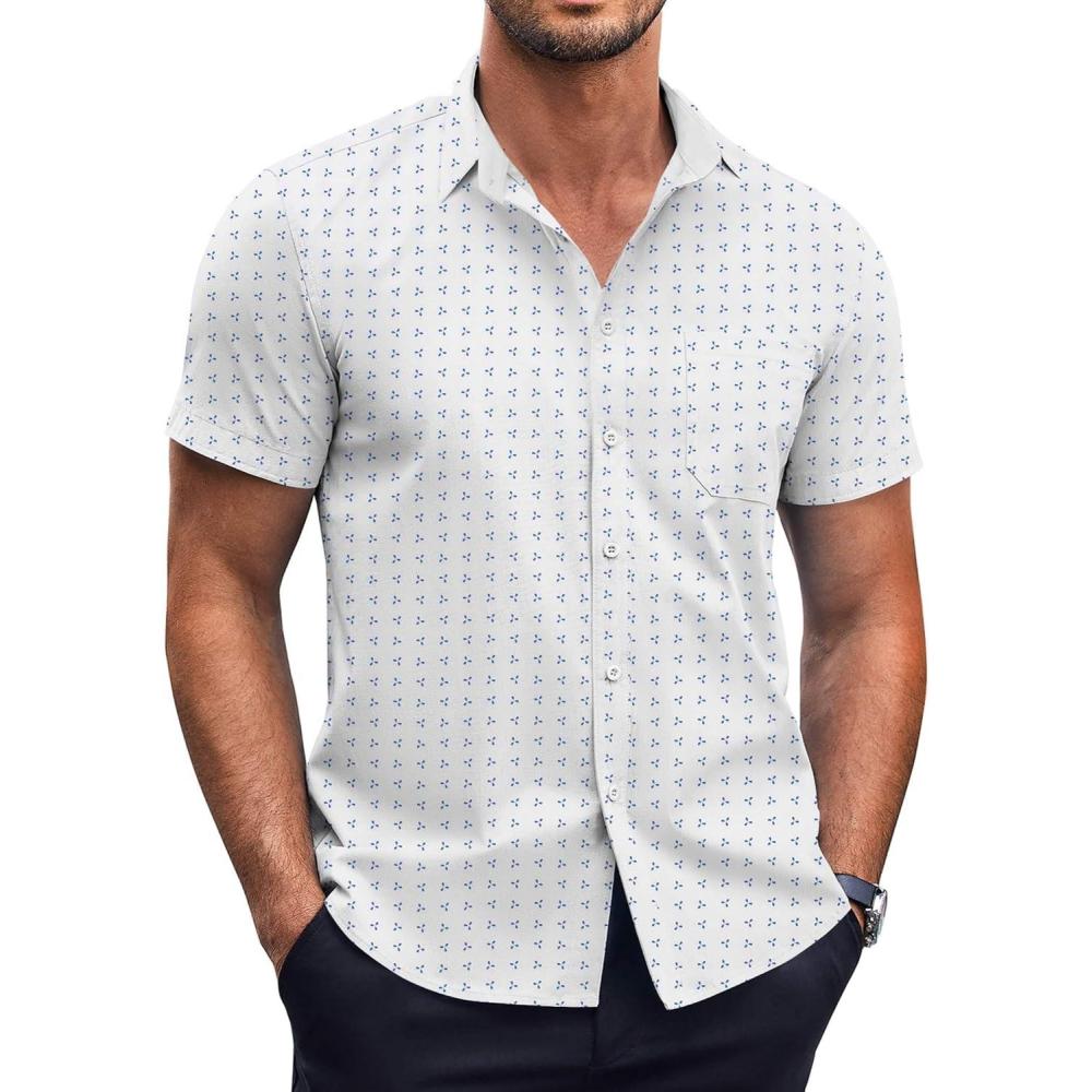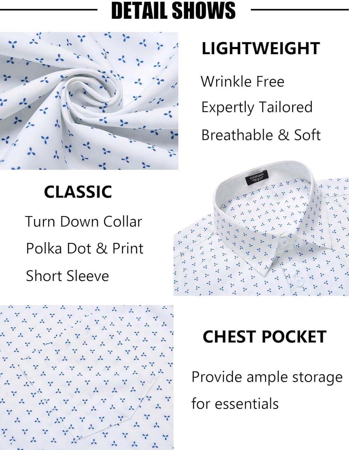 COOFANDY Mens Short Sleeve Button Down Shirts Wrinkle Free Dress Shirts Casual Polka Dot Print Shirt with Pocket(White(clover))