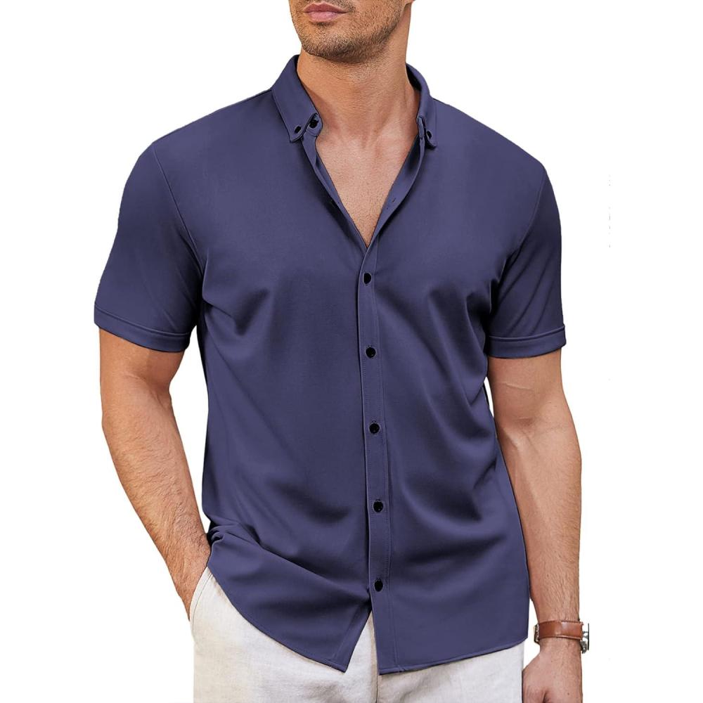 COOFANDY Men's Short Sleeve Casual Button Down Shark Shirts Wrinkle Free Untucked Shirt Summer Stretch Dress Shirts(Blueviolet)