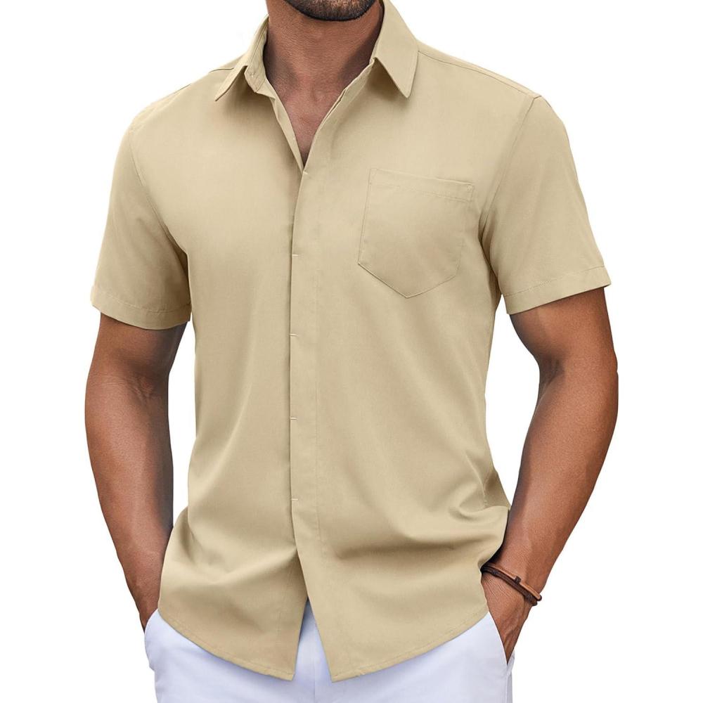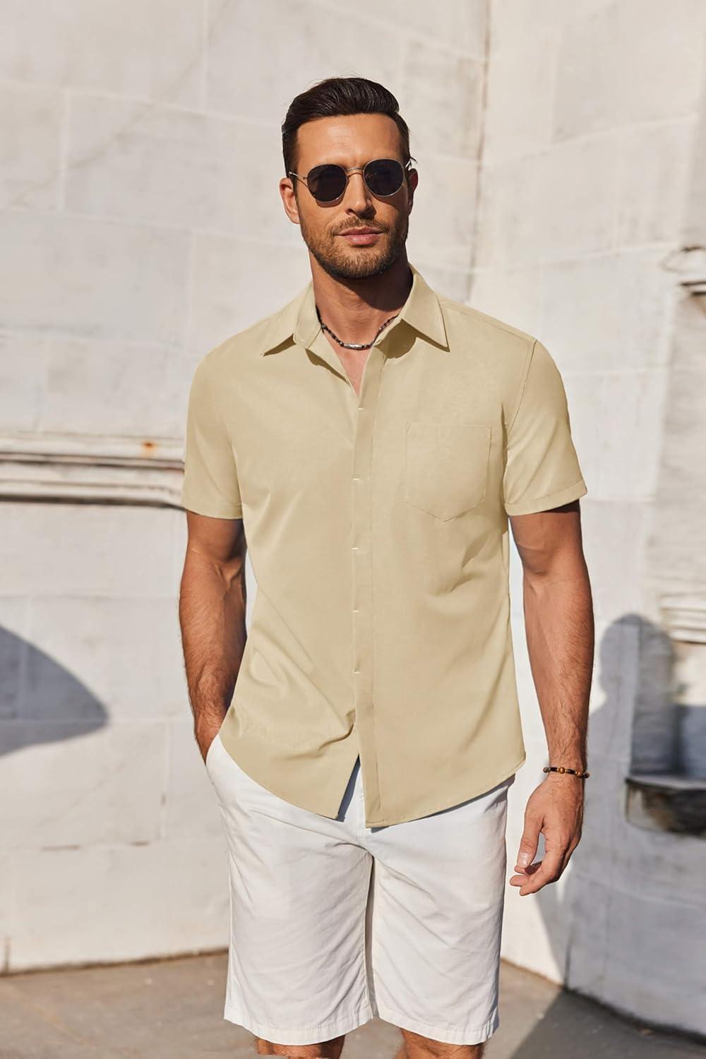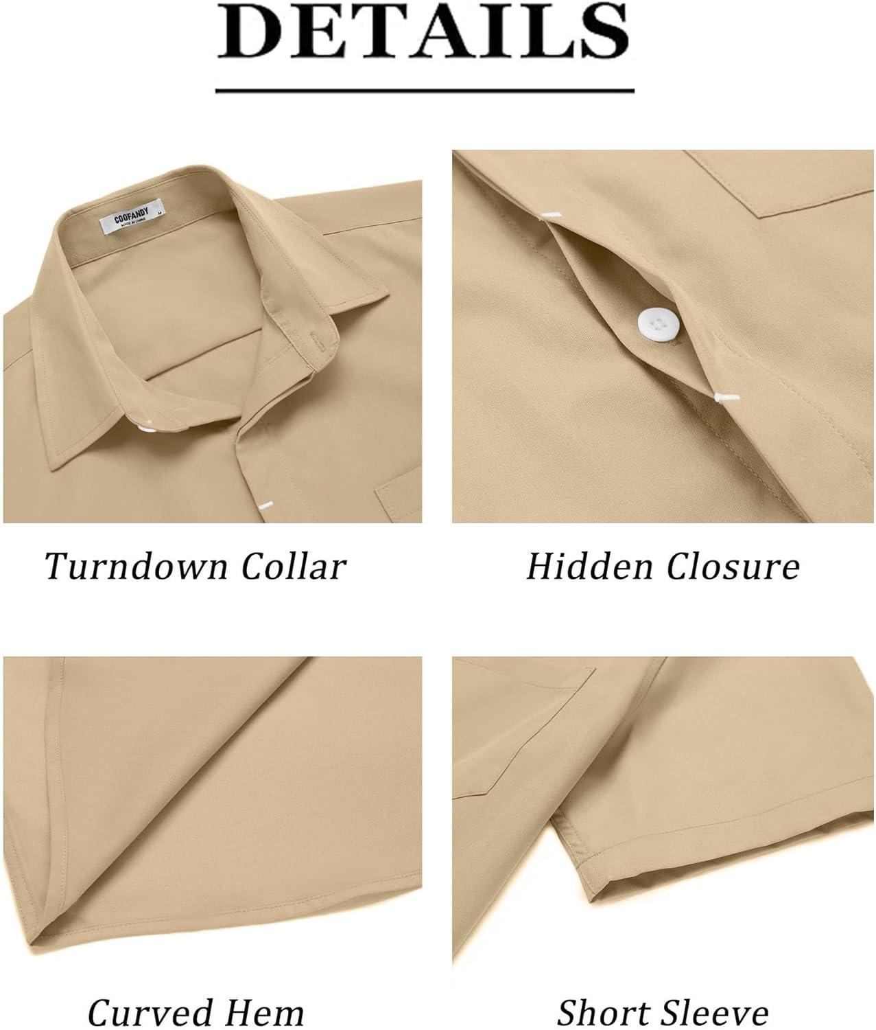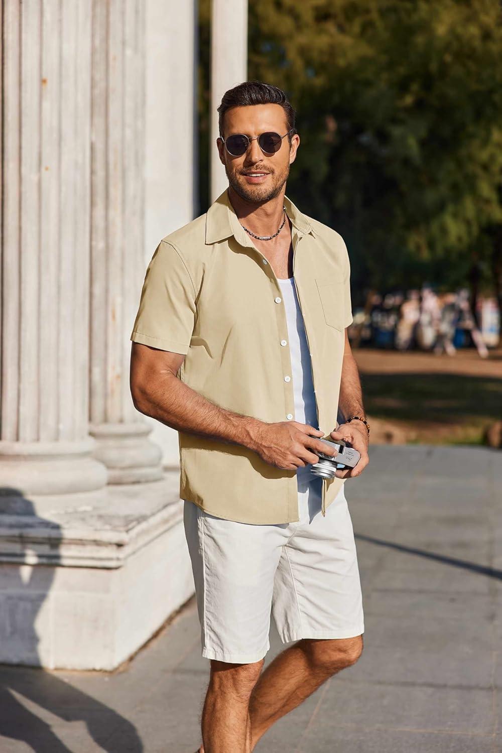 COOFANDY Mens Short Sleeve Casual Button Down Shirts Summer Untucked Beach Shirts with Pocket Light Brown
