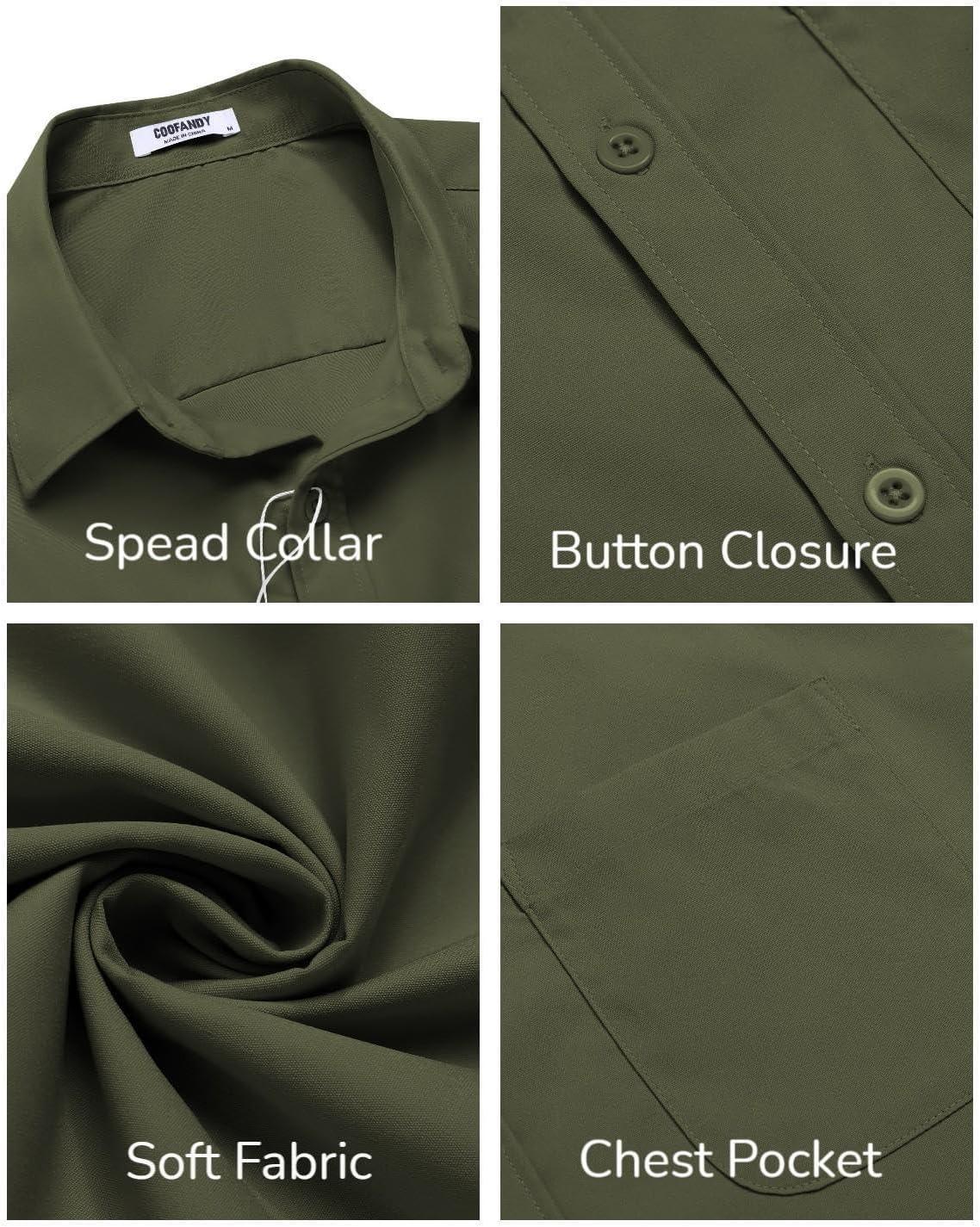 COOFANDY Mens Short Sleeve Casual Button Down Shirts Summer Untucked Dress Shirts with Pocket(Army Green)