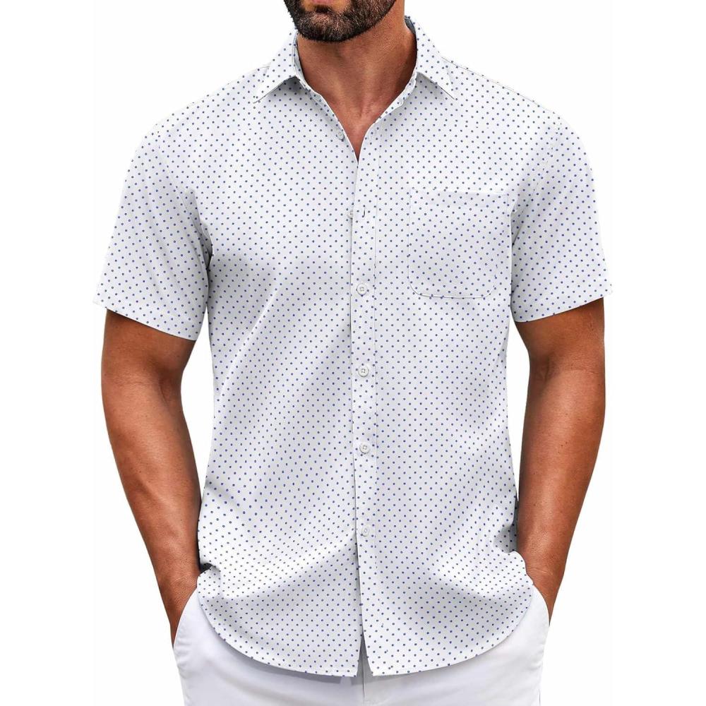 COOFANDY Mens Short Sleeve Casual Button Down Shirts Summer Untucked Dress Shirts with Pocket(Blue Dot-white)