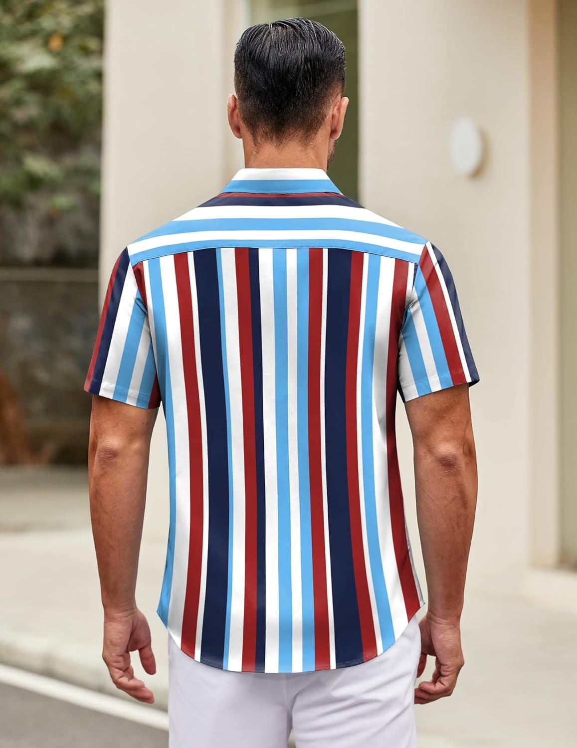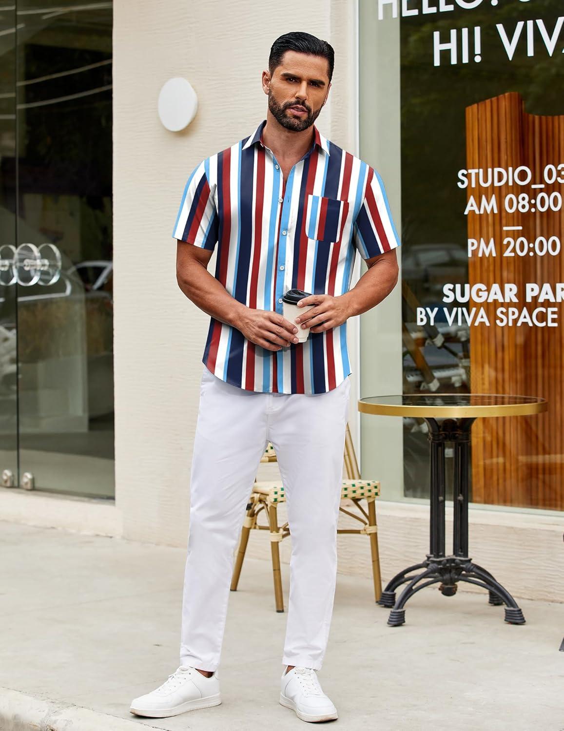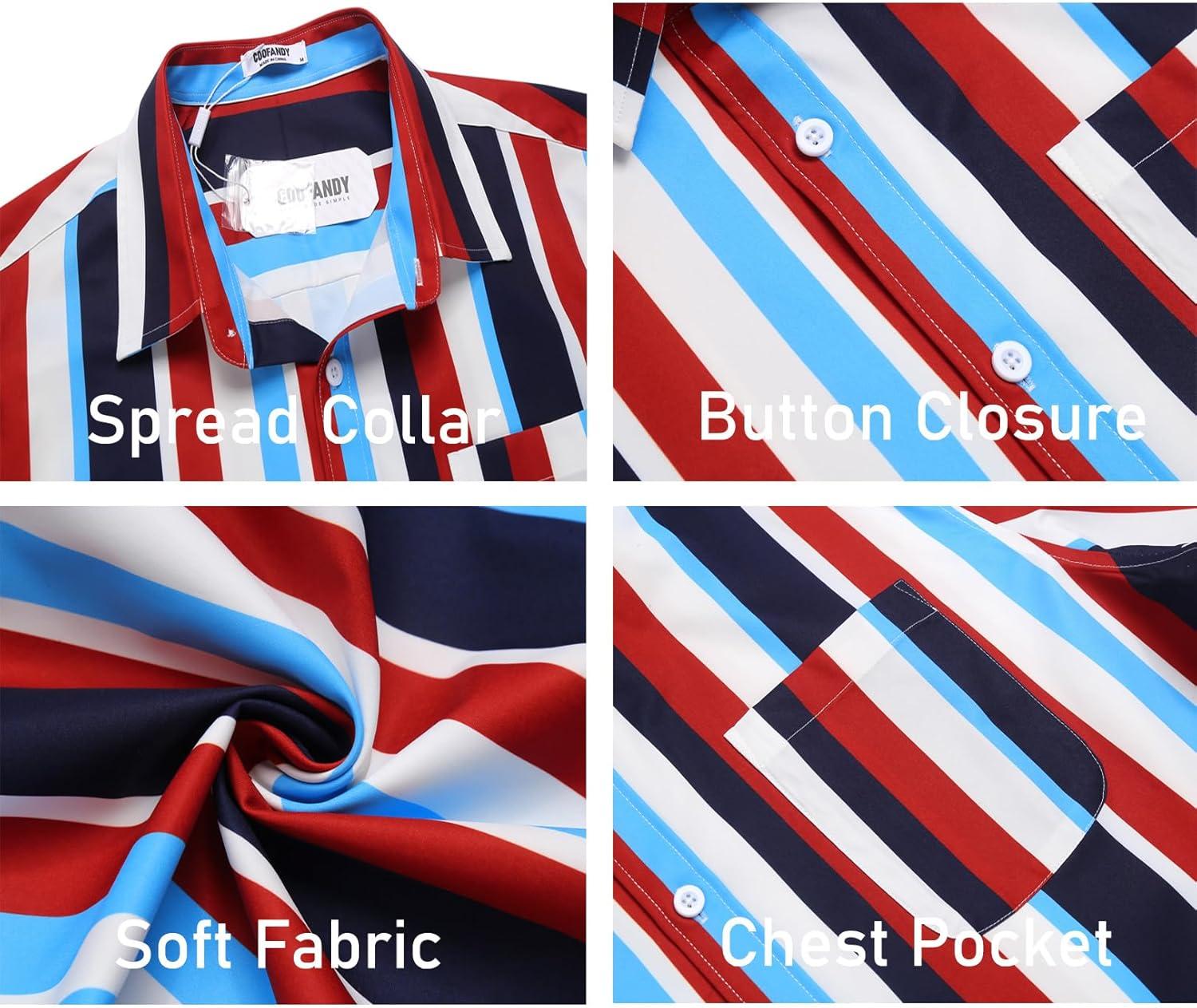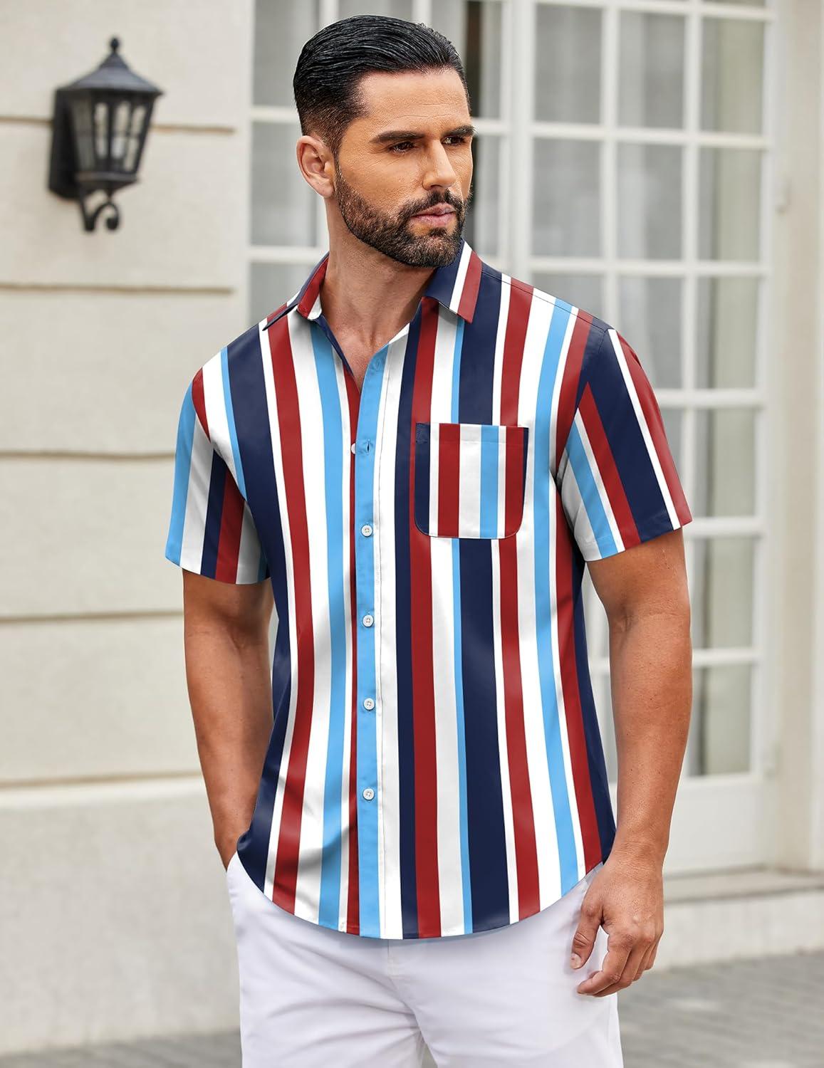 COOFANDY Mens Short Sleeve Casual Button Down Shirts Summer Untucked Dress Shirts with Pocket(Colorful Stripe)