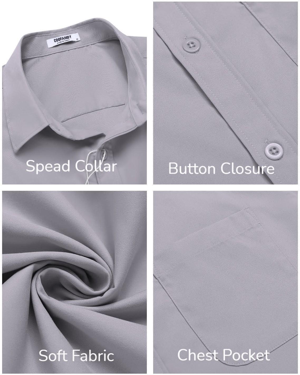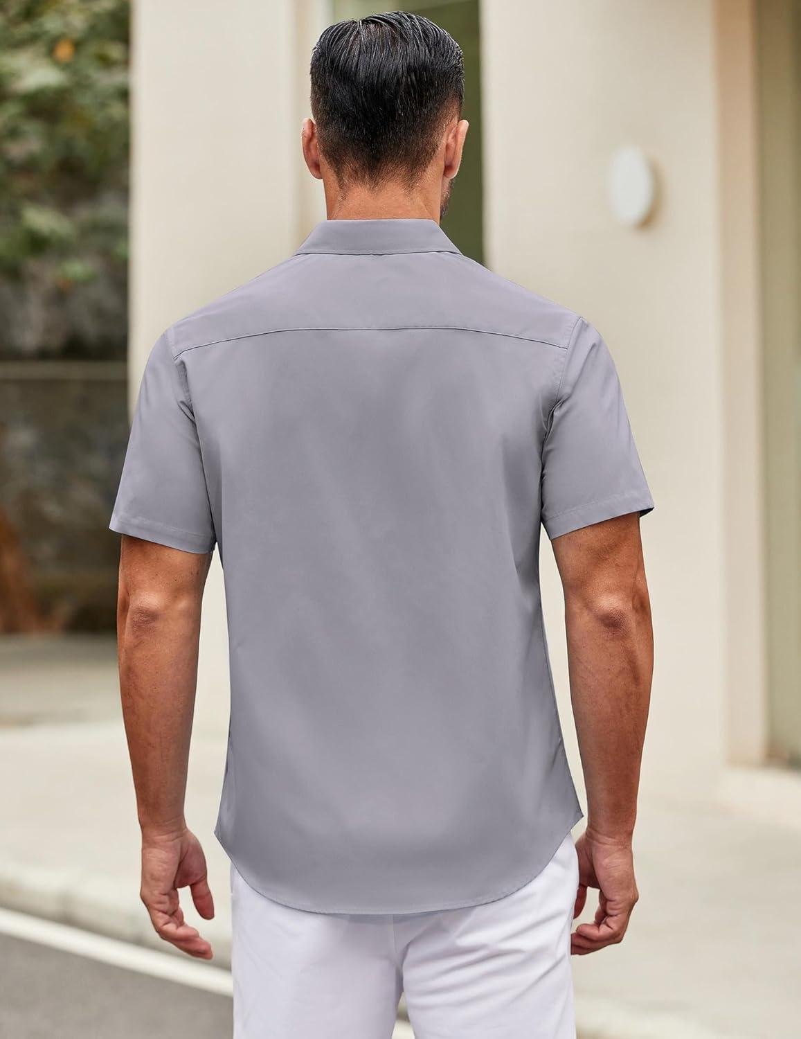 COOFANDY Mens Short Sleeve Casual Button Down Shirts Summer Untucked Dress Shirts with Pocket(Grey)