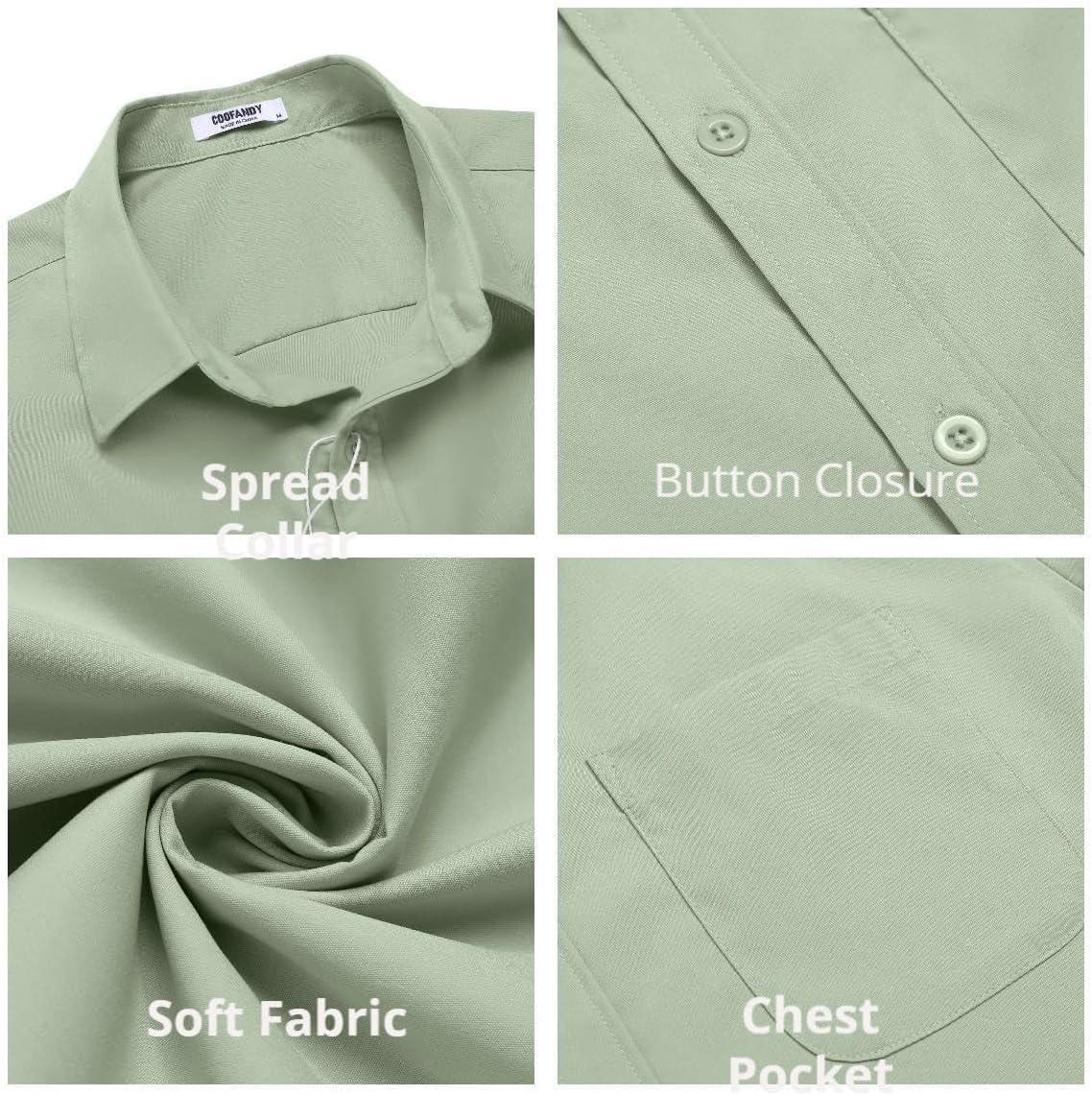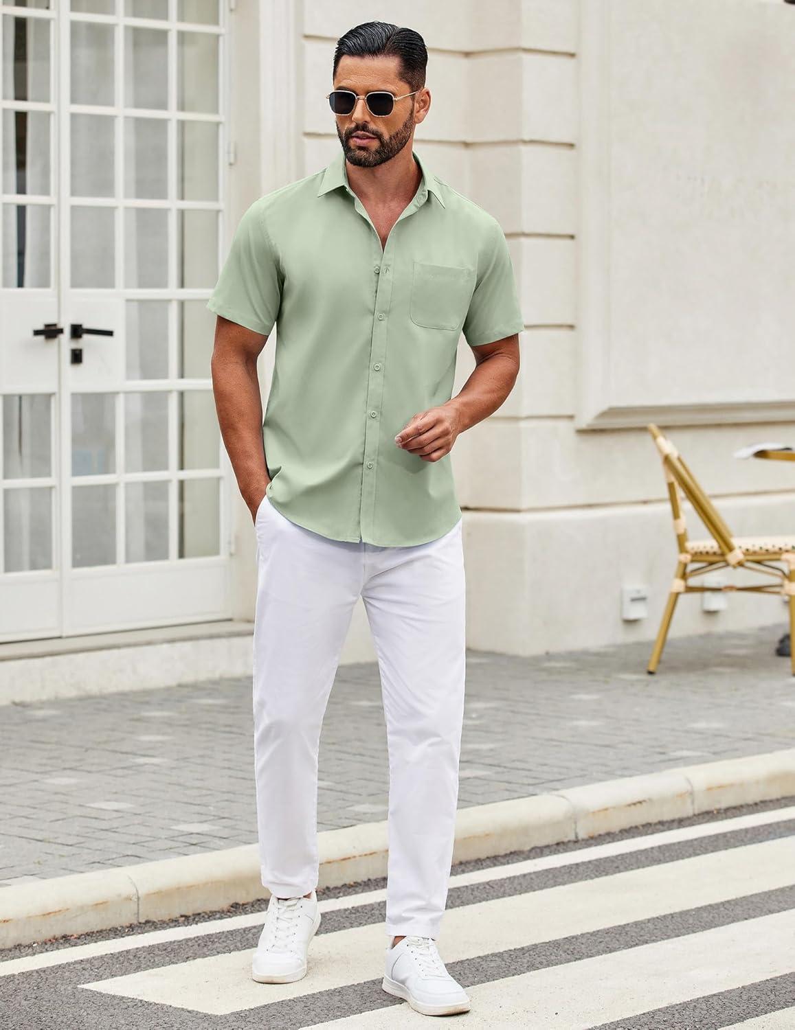 COOFANDY Mens Short Sleeve Casual Button Down Shirts Summer Untucked Dress Shirts with Pocket(Light Green)