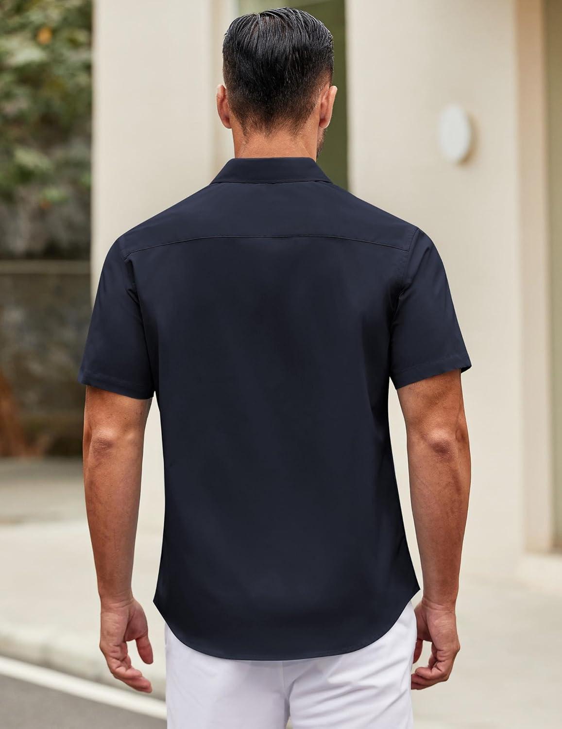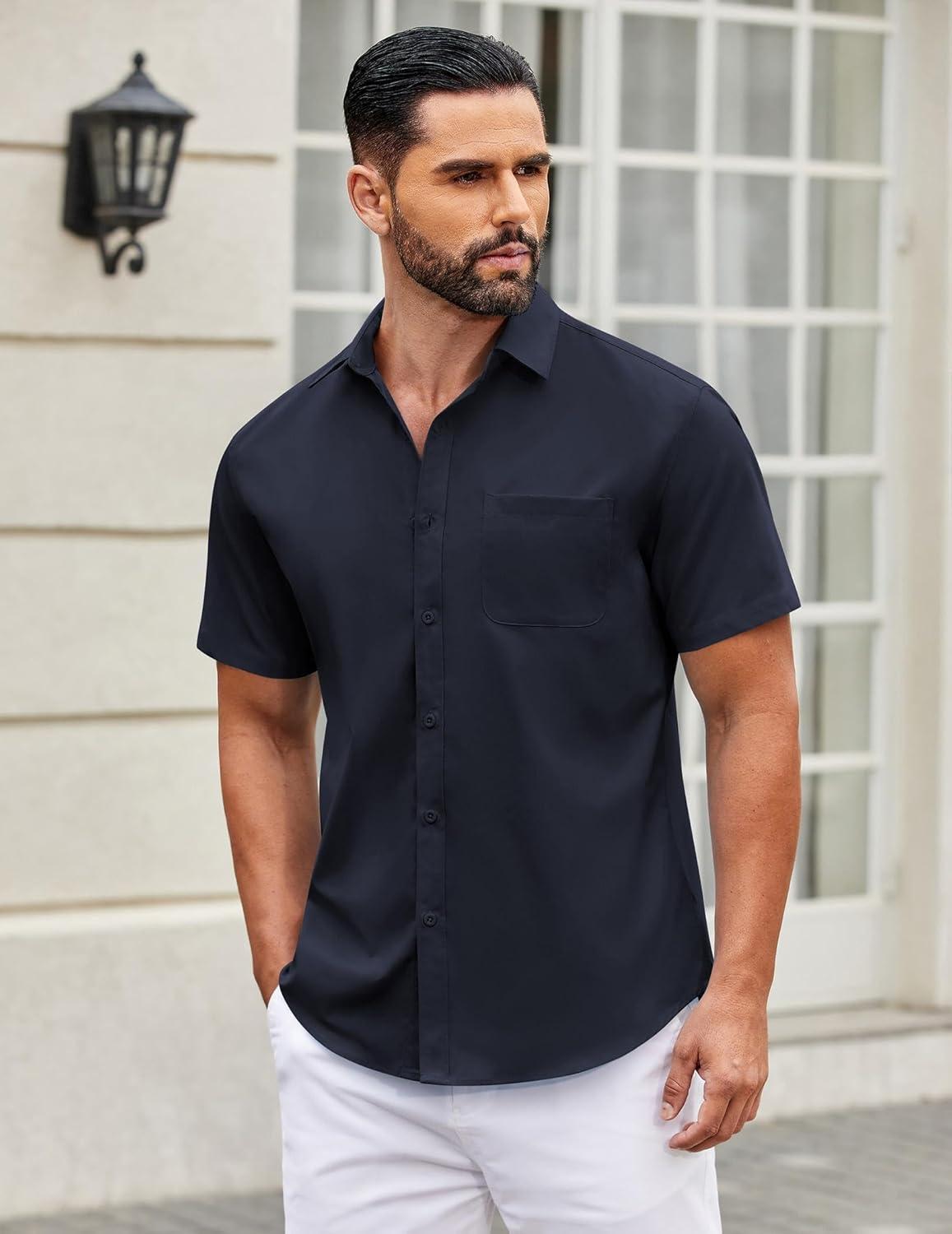 COOFANDY Mens Short Sleeve Casual Button Down Shirts Summer Untucked Dress Shirts with Pocket(Navy Blue)