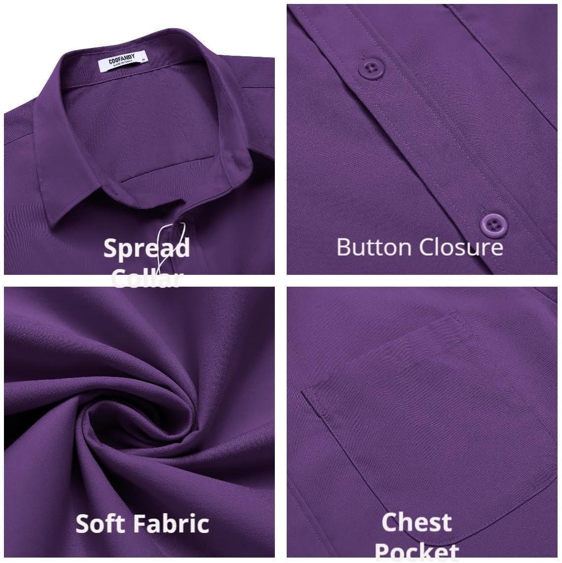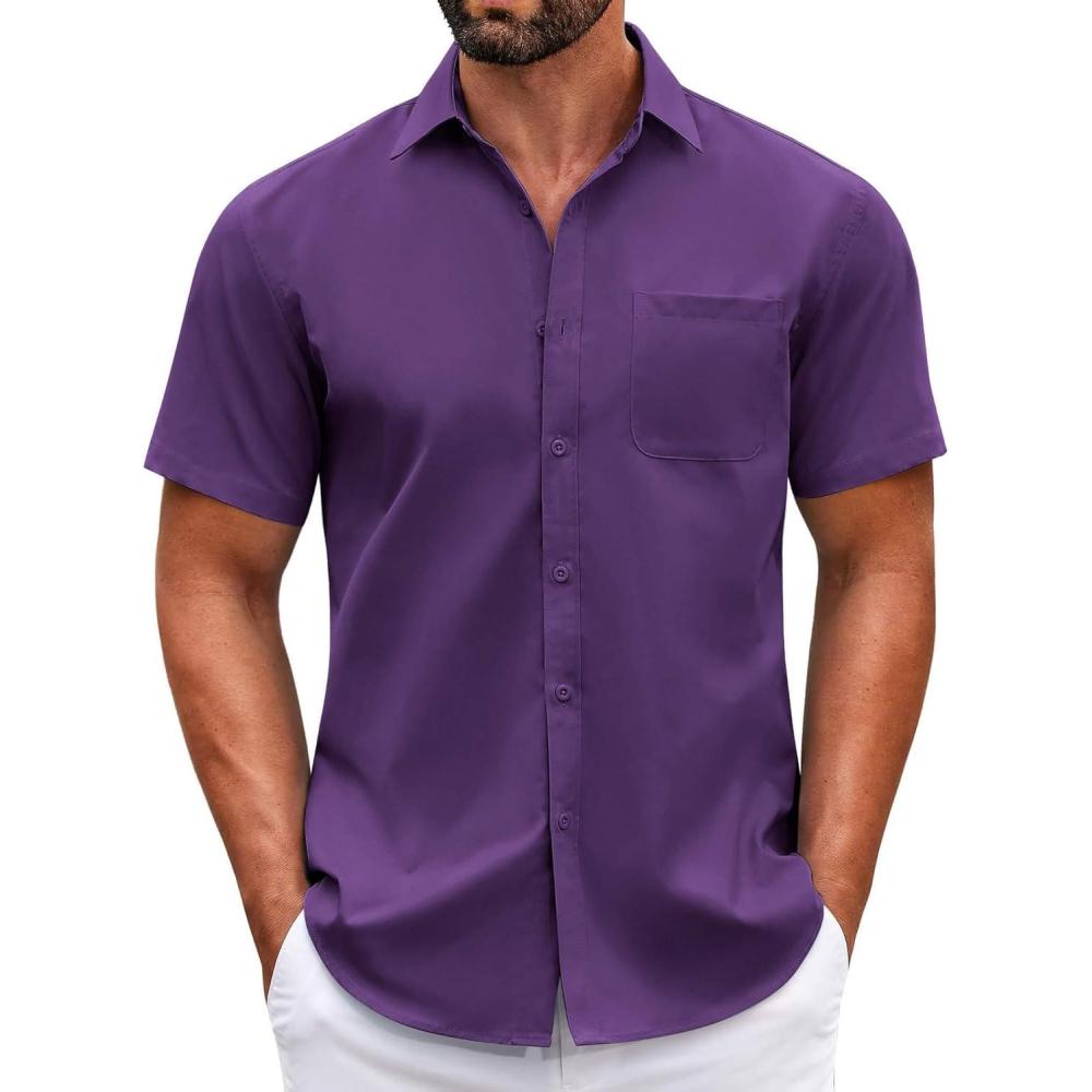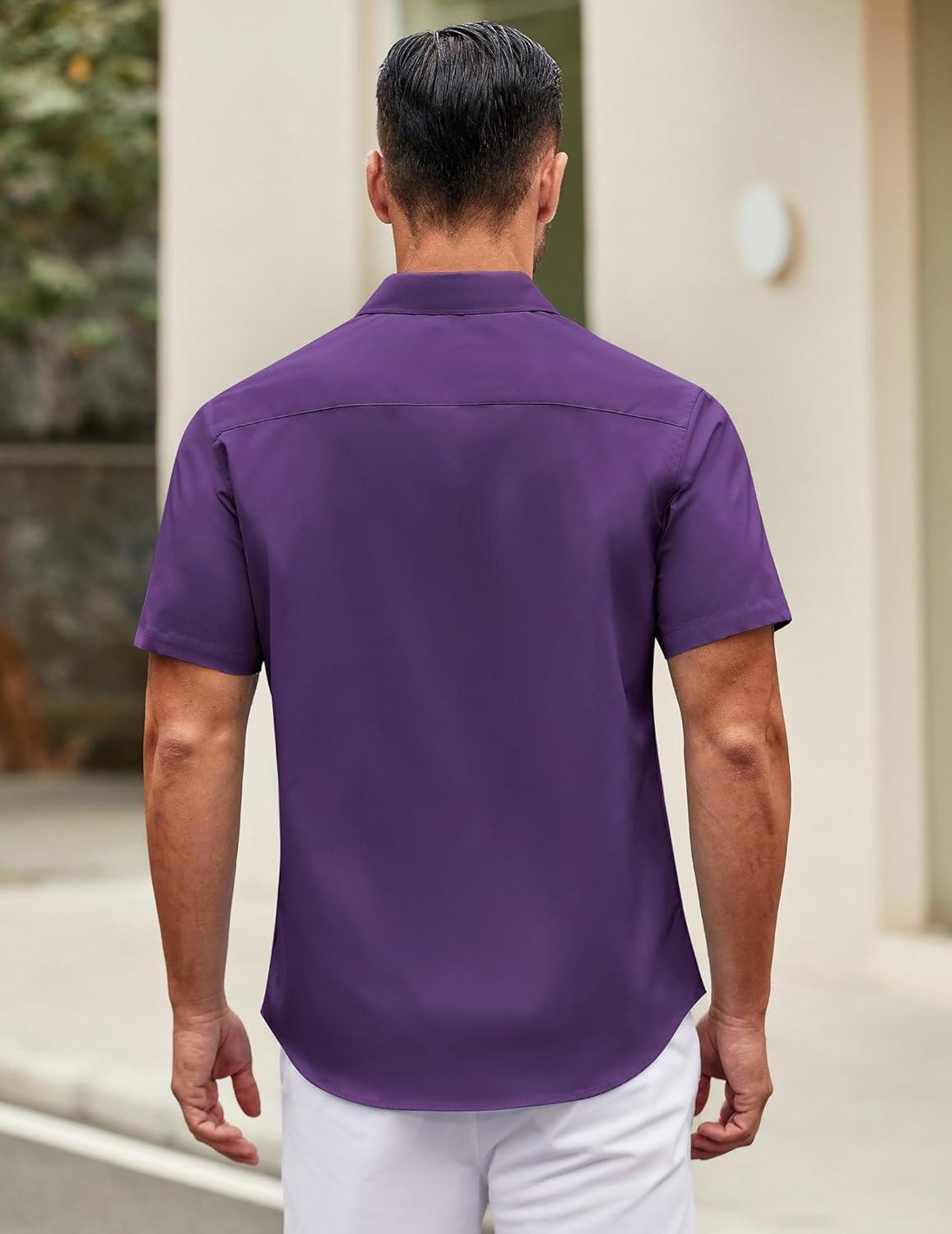 COOFANDY Mens Short Sleeve Casual Button Down Shirts Summer Untucked Dress Shirts with Pocket(Purple)