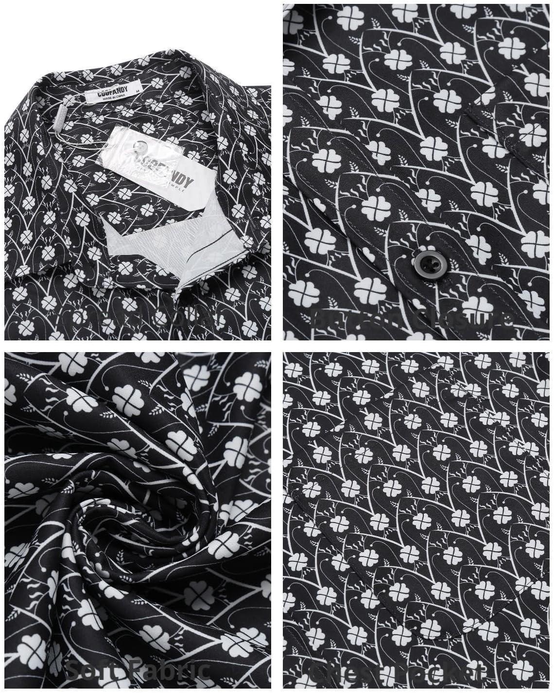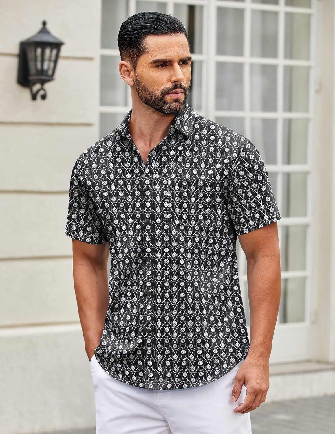COOFANDY Mens Short Sleeve Casual Button Down Shirts Summer Untucked Dress Shirts with Pocket(White Floral-black)
