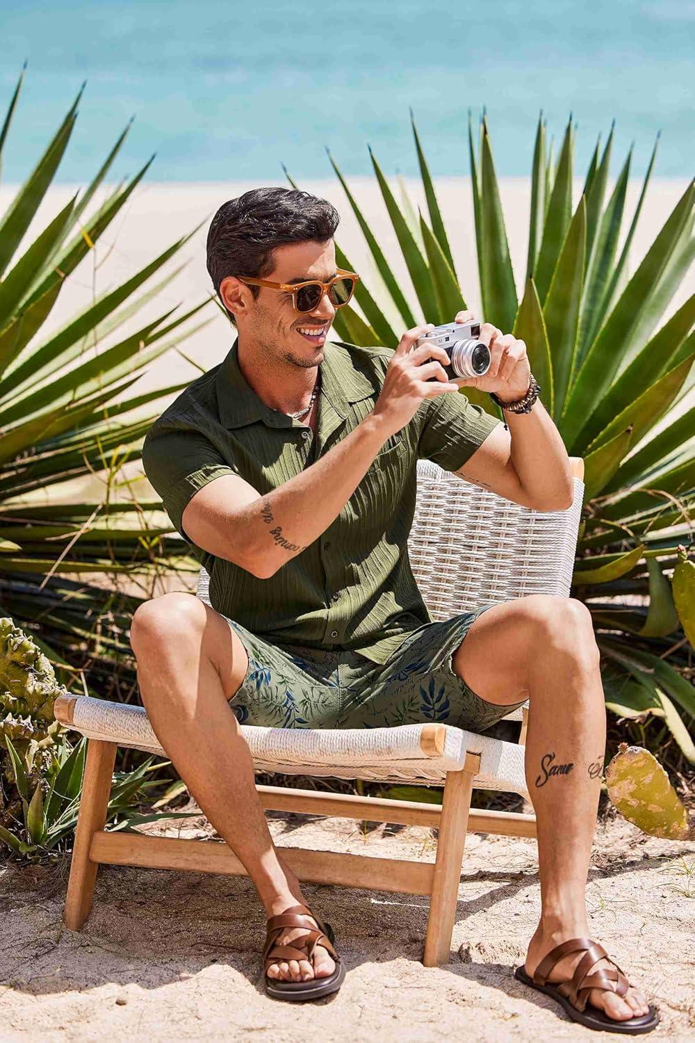 Save big on COOFANDY Men’s Short Sleeve Casual Button Down Shirts Textured Summer Beach Shirt with Pocket(Olive Green) during our summer blowout sale. Limited quantities available.