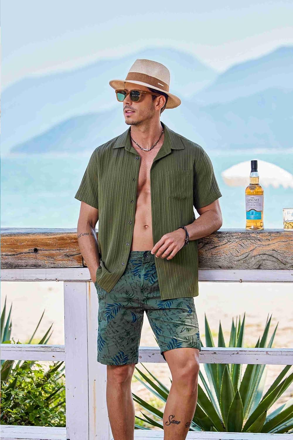 COOFANDY Men's Short Sleeve Casual Button Down Shirts Textured Summer Beach Shirt with Pocket(Olive Green)