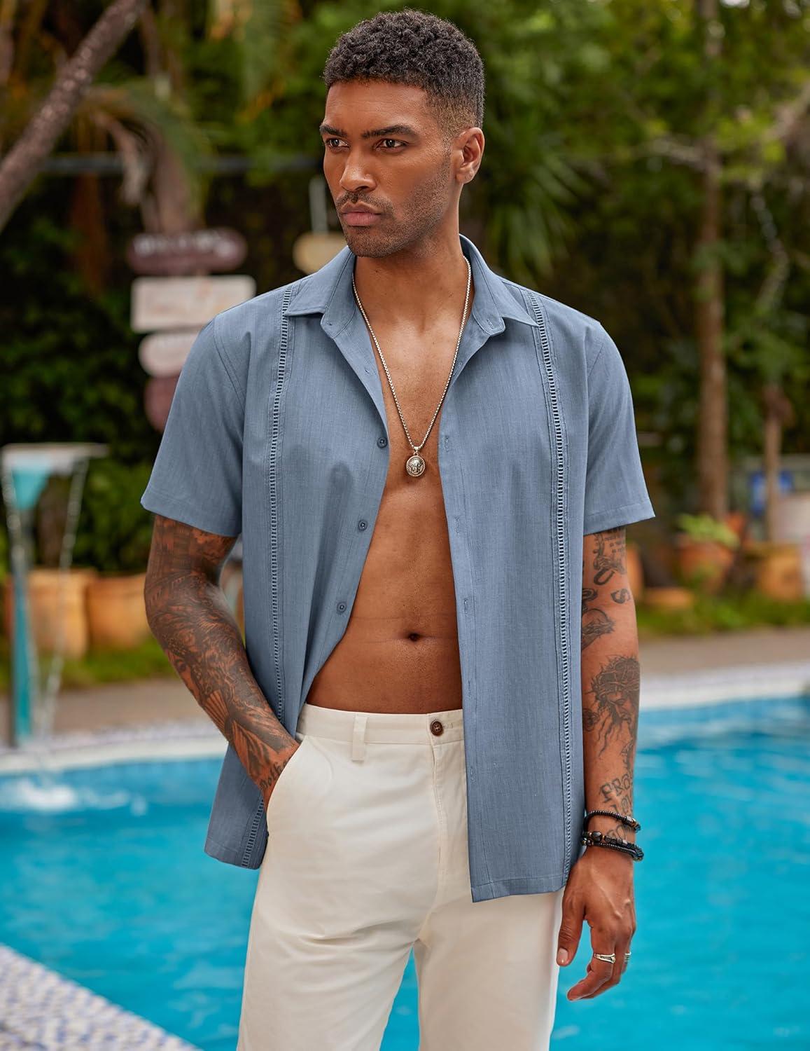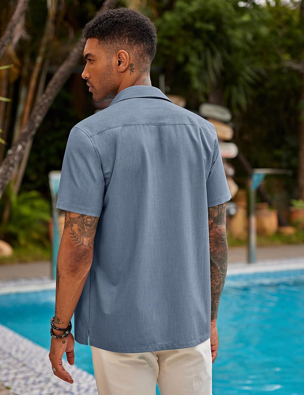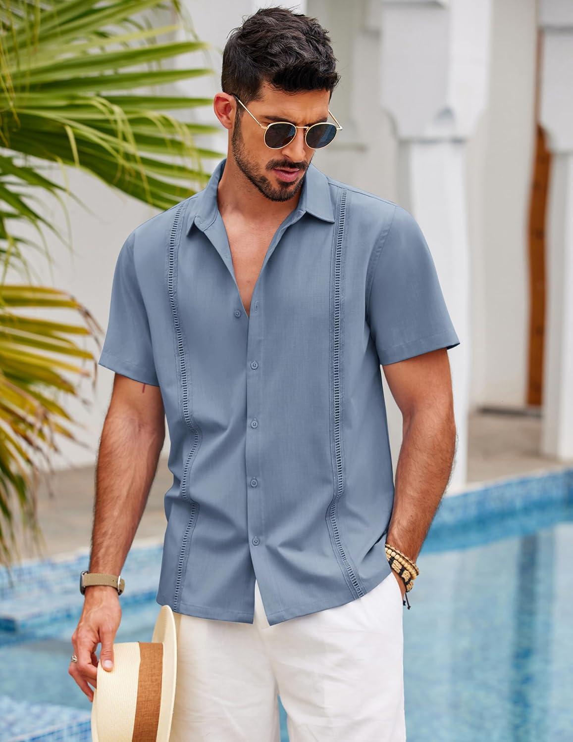 COOFANDY Mens Short Sleeve Cuban Guayabera Shirt Casual Summer Beach Button Down Shirts(A-blue)