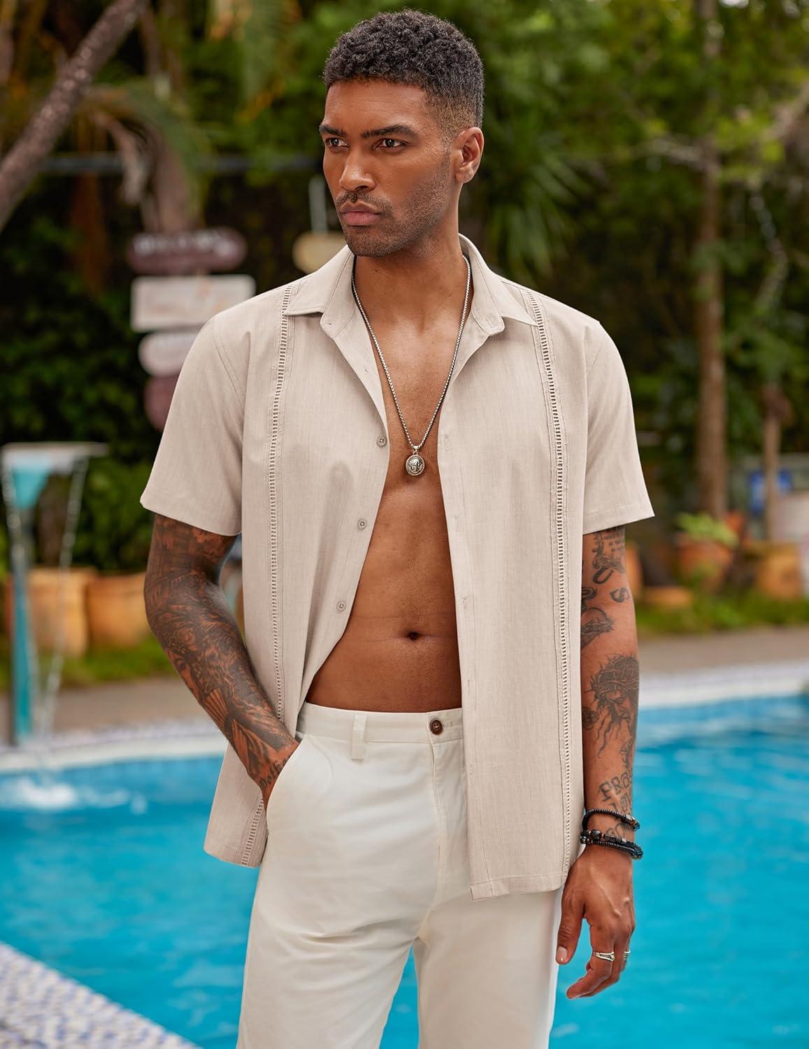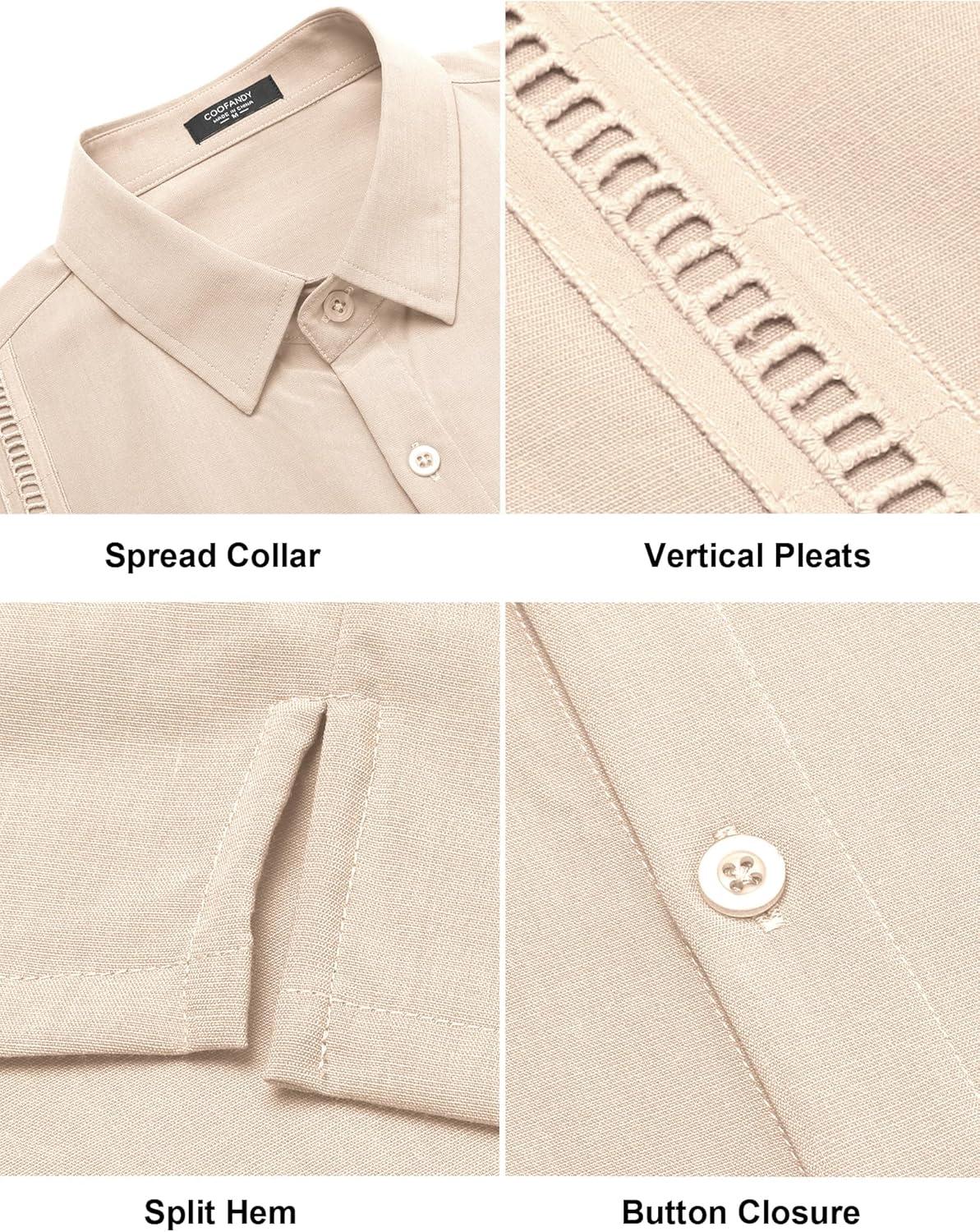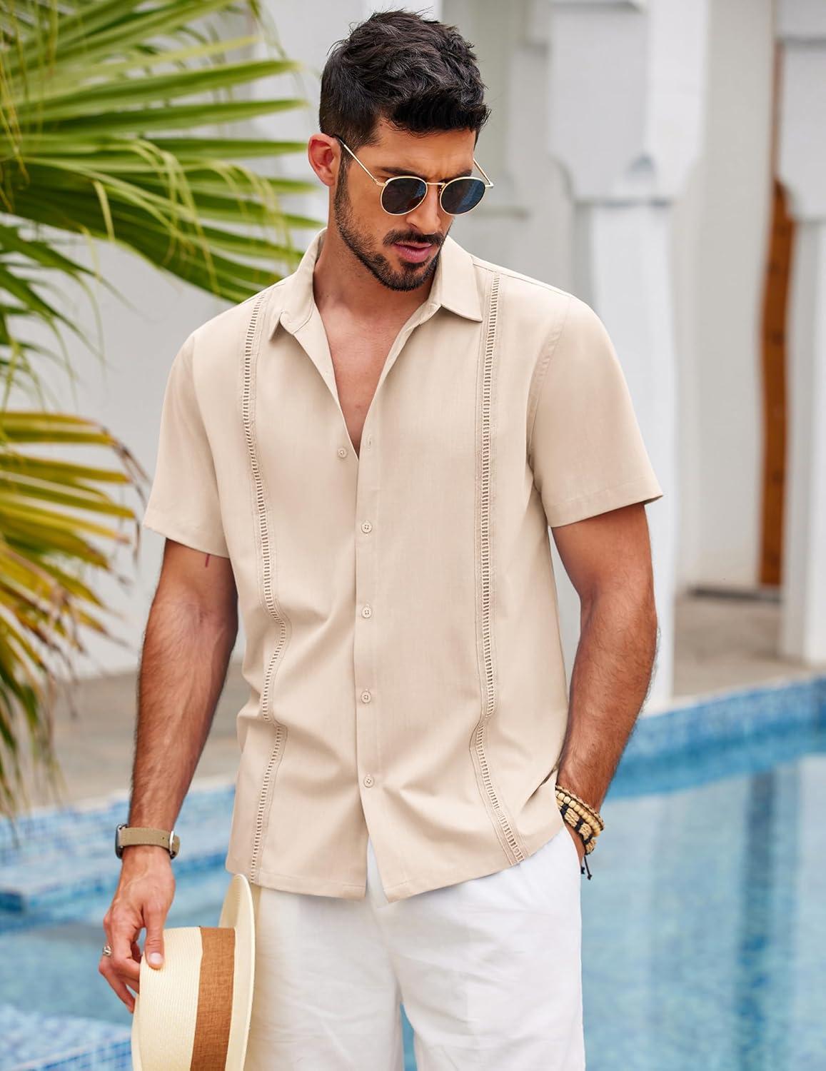COOFANDY Mens Short Sleeve Cuban Guayabera Shirt Casual Summer Beach Button Down Shirts(A-champagne)
