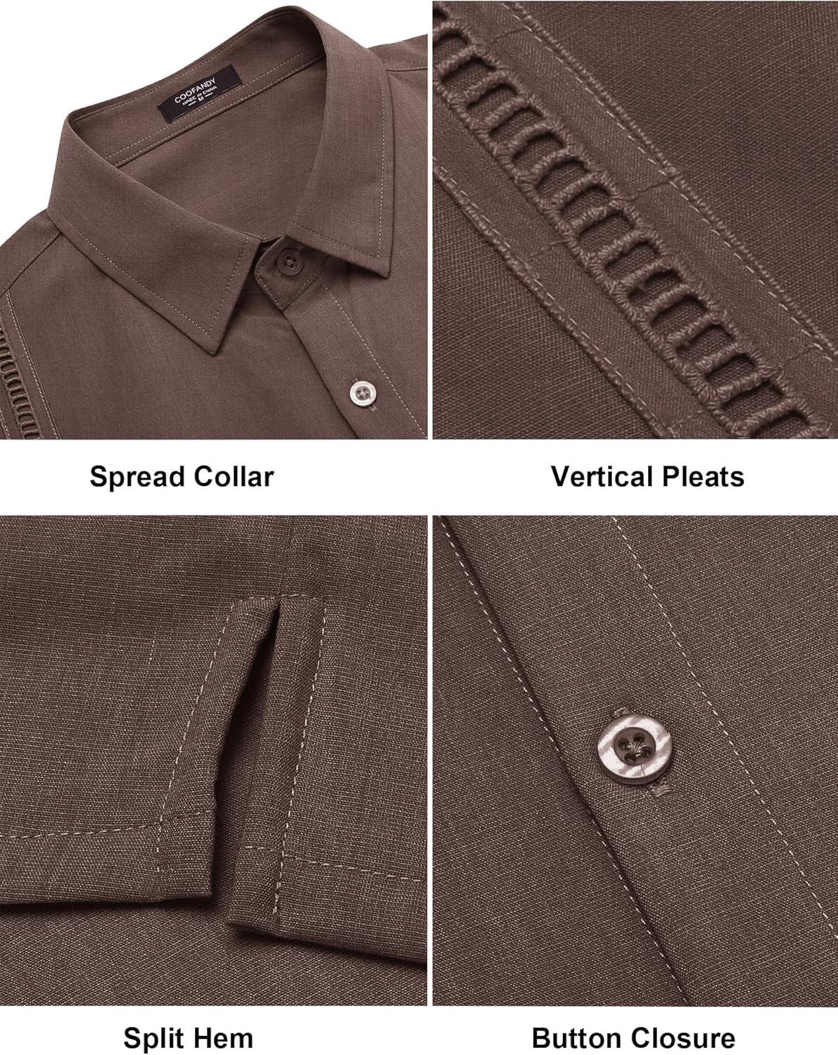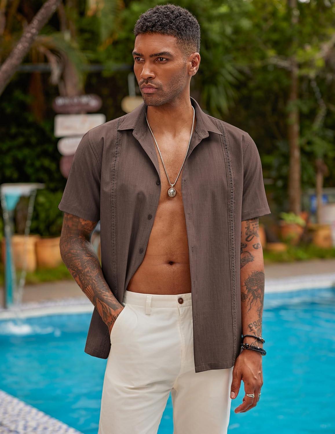COOFANDY Mens Short Sleeve Cuban Guayabera Shirt Casual Summer Beach Button Down Shirts(Brown)