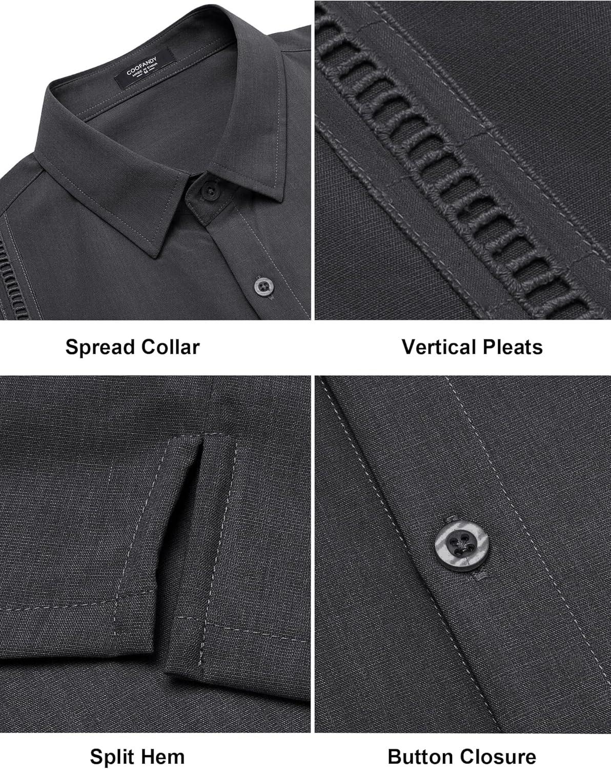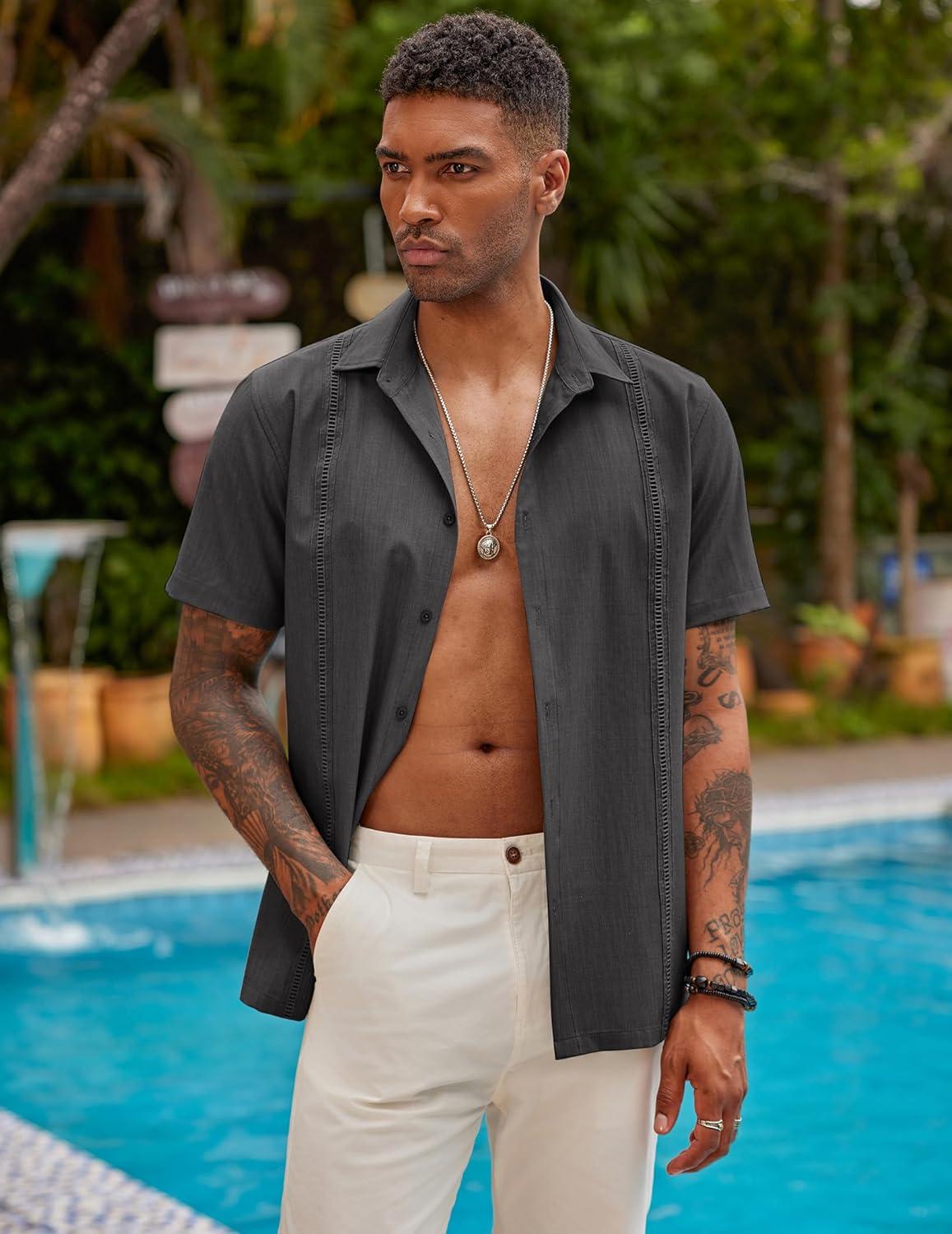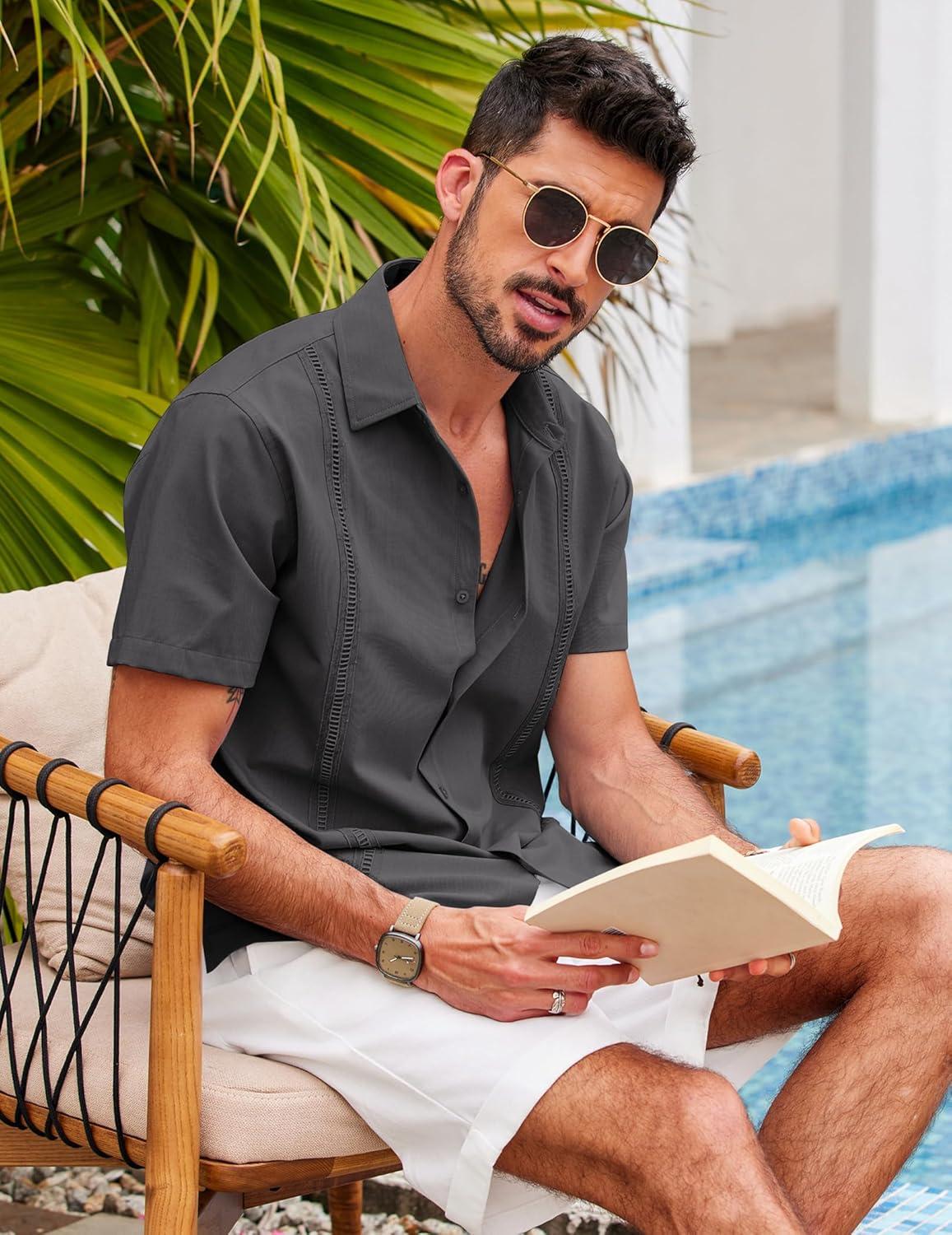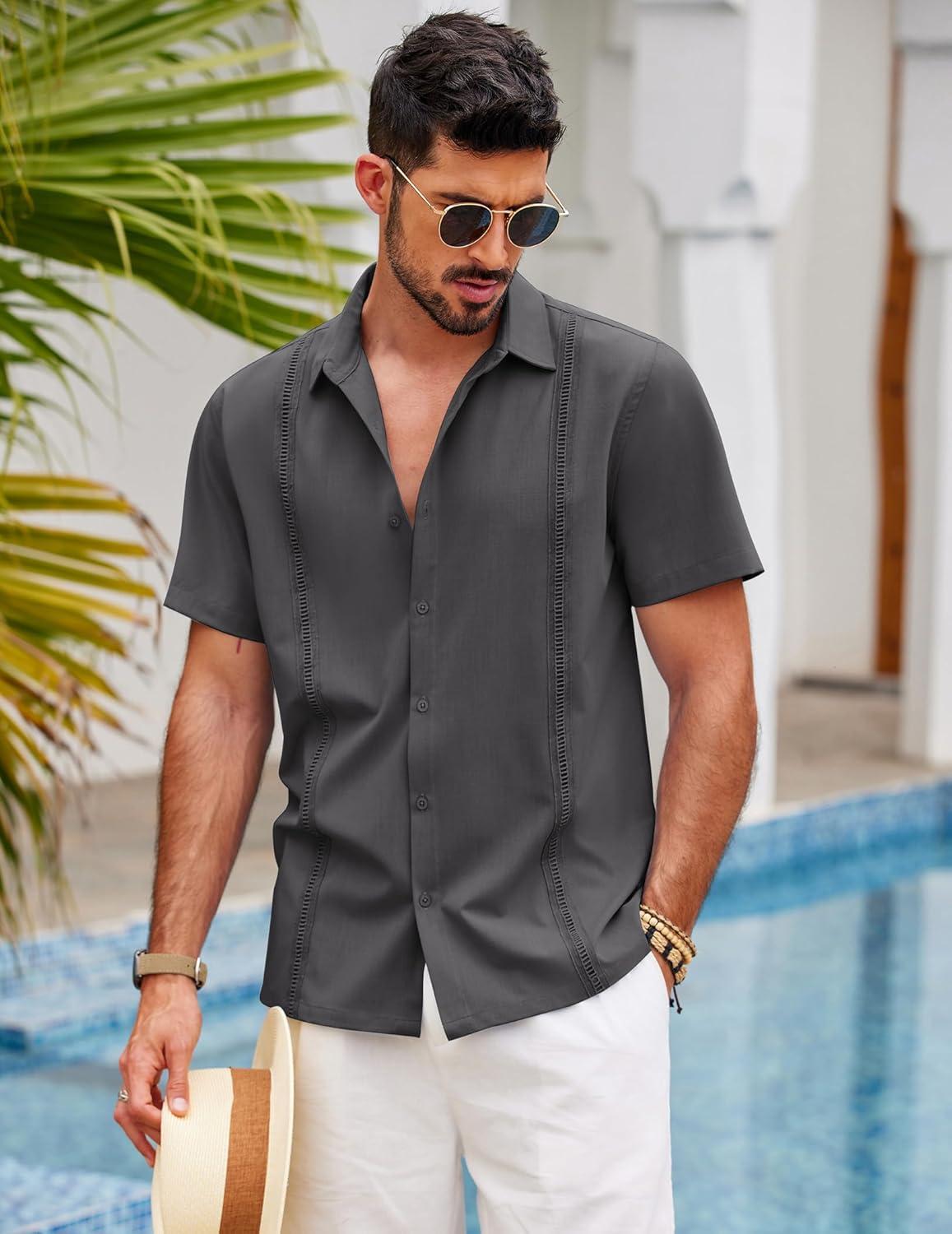 COOFANDY Mens Short Sleeve Cuban Guayabera Shirt Casual Summer Beach Button Down Shirts(Deep Grey)