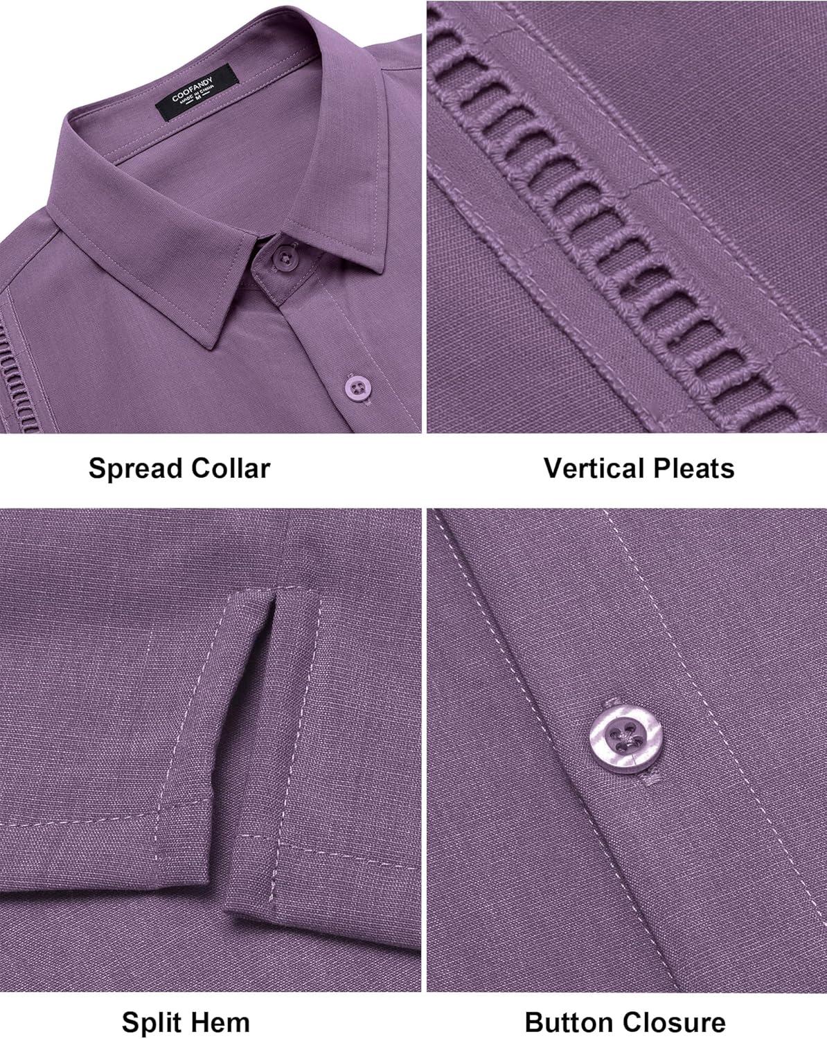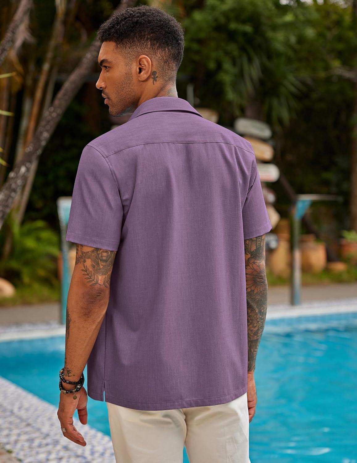 COOFANDY Mens Short Sleeve Cuban Guayabera Shirt Casual Summer Beach Button Down Shirts(Deep Purple)