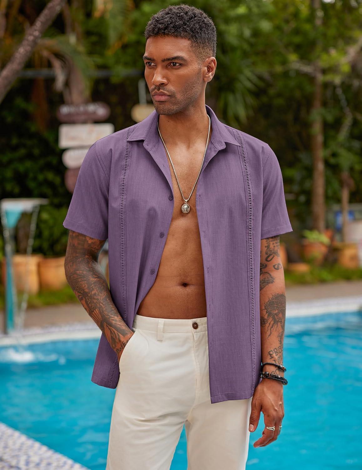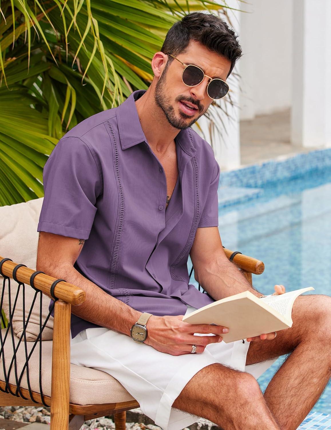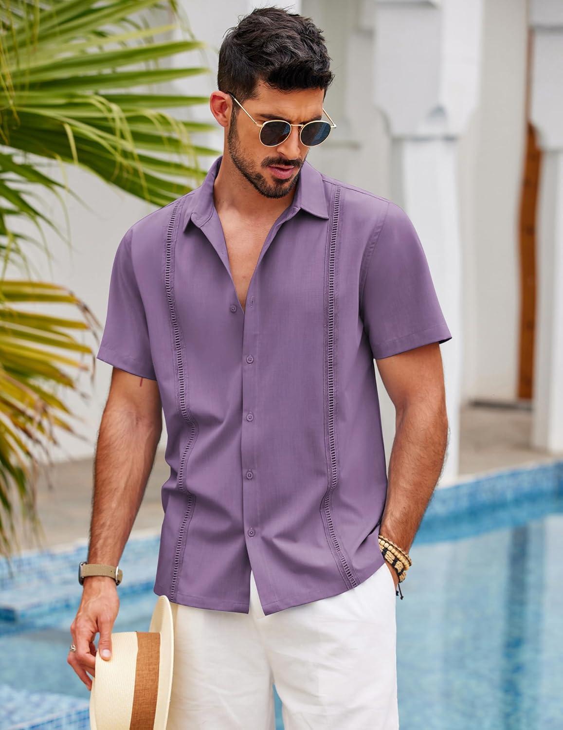COOFANDY Mens Short Sleeve Cuban Guayabera Shirt Casual Summer Beach Button Down Shirts(Blue Violet)